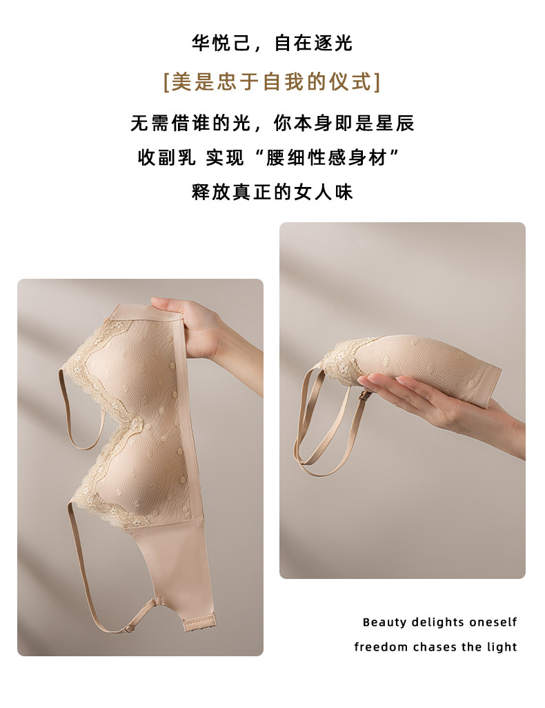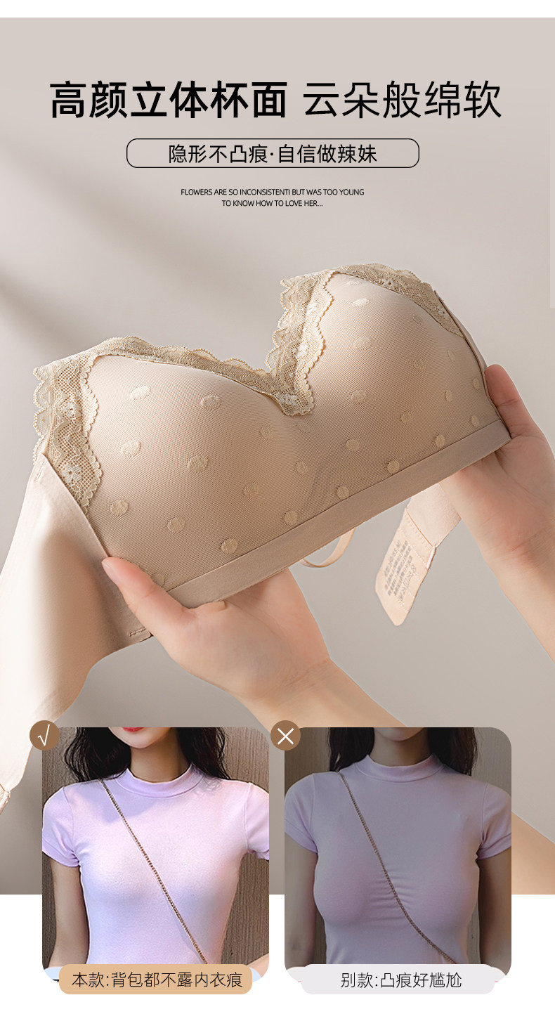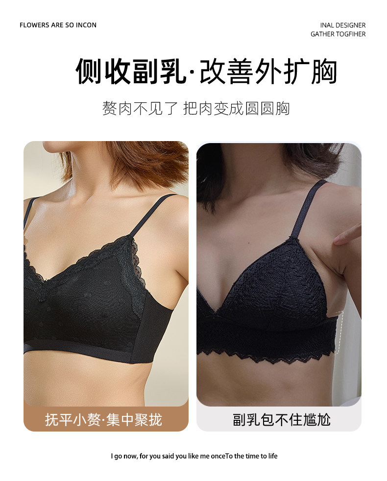 無痕內衣女聚攏小胸舒適無鋼圈上托防下垂收副乳法式蕾絲邊文胸罩