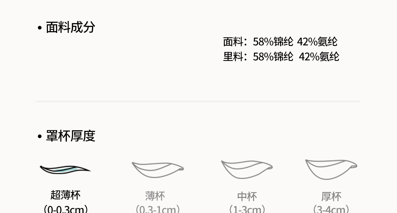| 罩杯裡料成分含量 | 41%(含)-60%(含) |