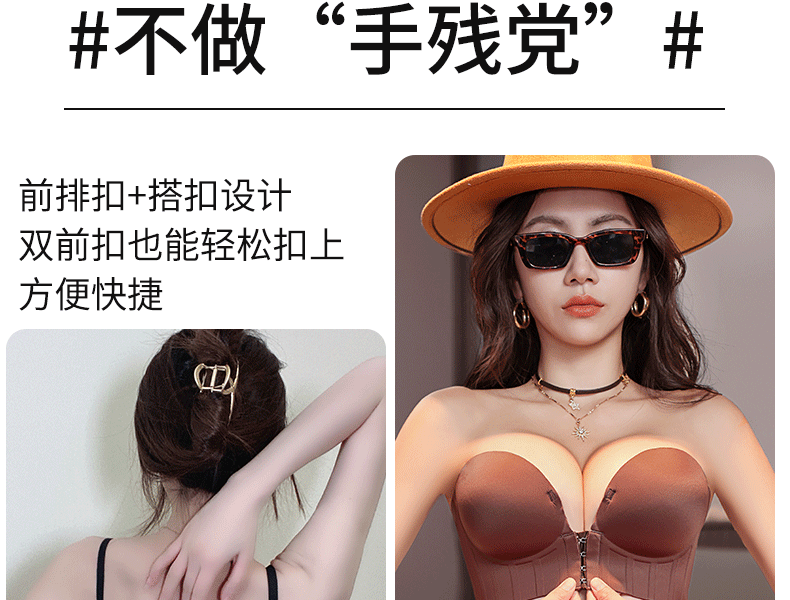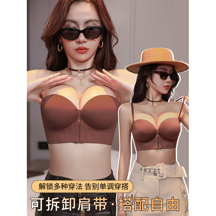 前釦8cm加厚無肩帶小胸聚攏防滑內衣顯大無鋼圈平胸專用抹胸文胸