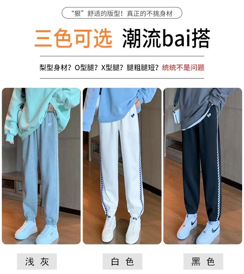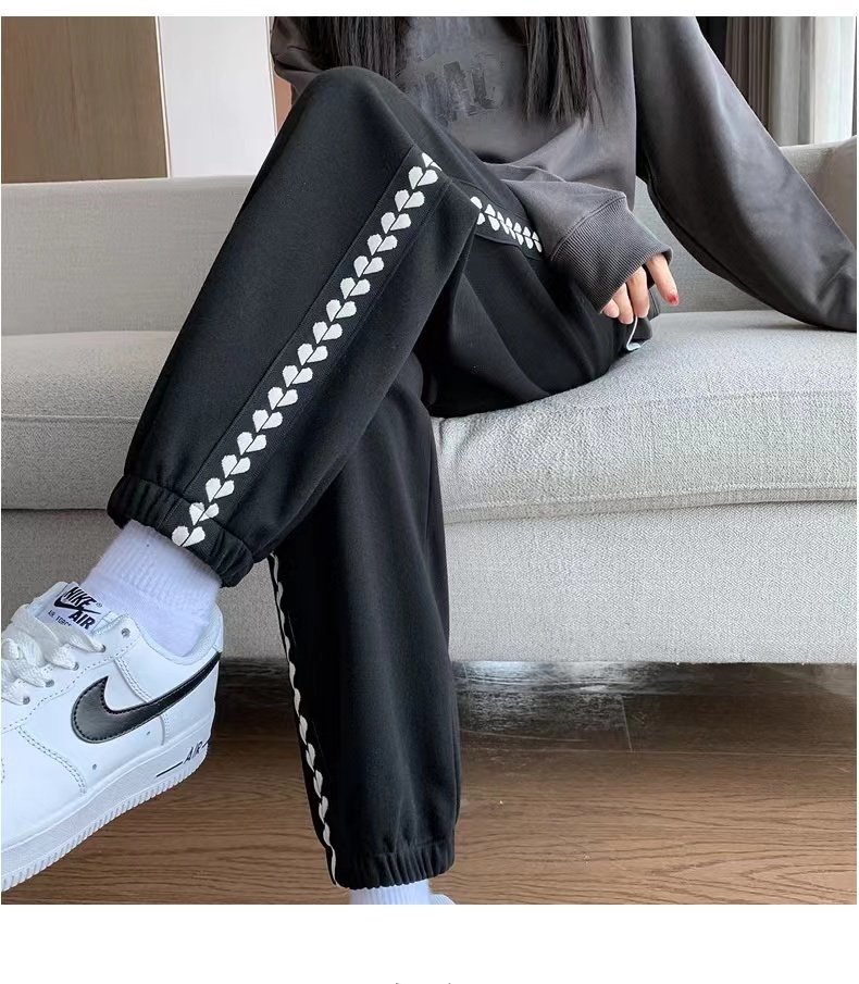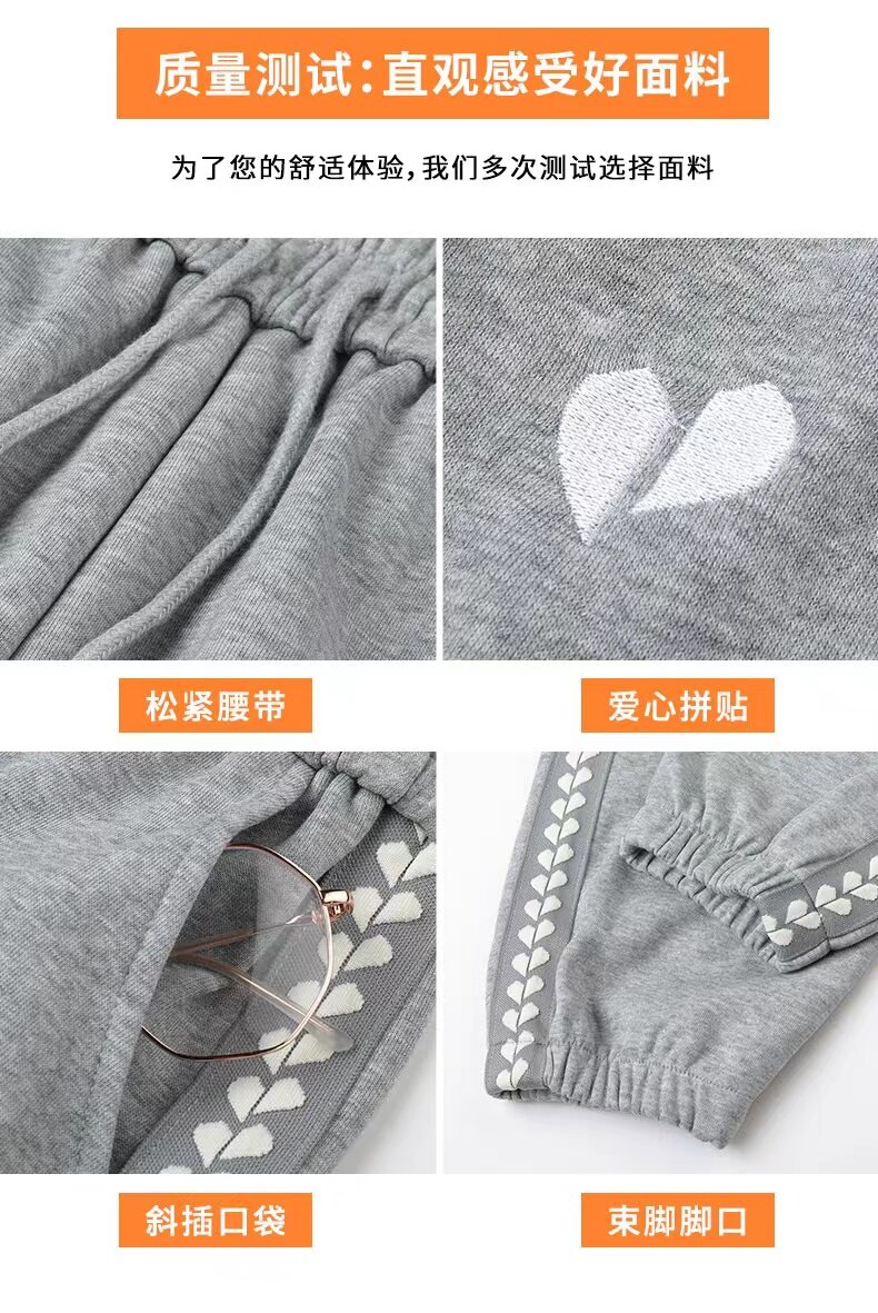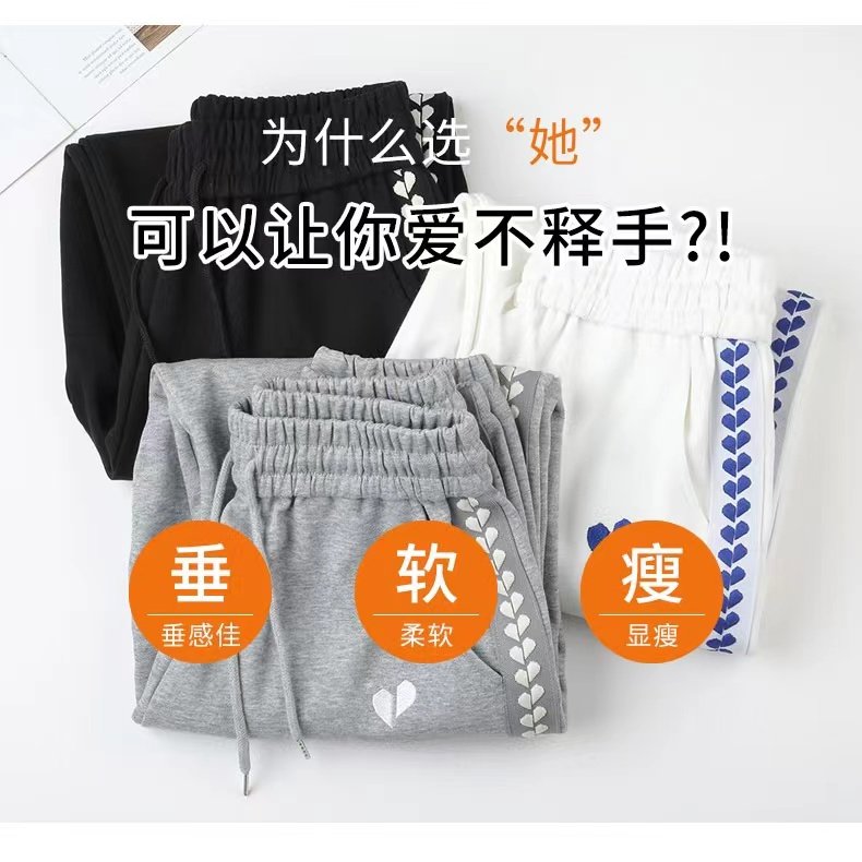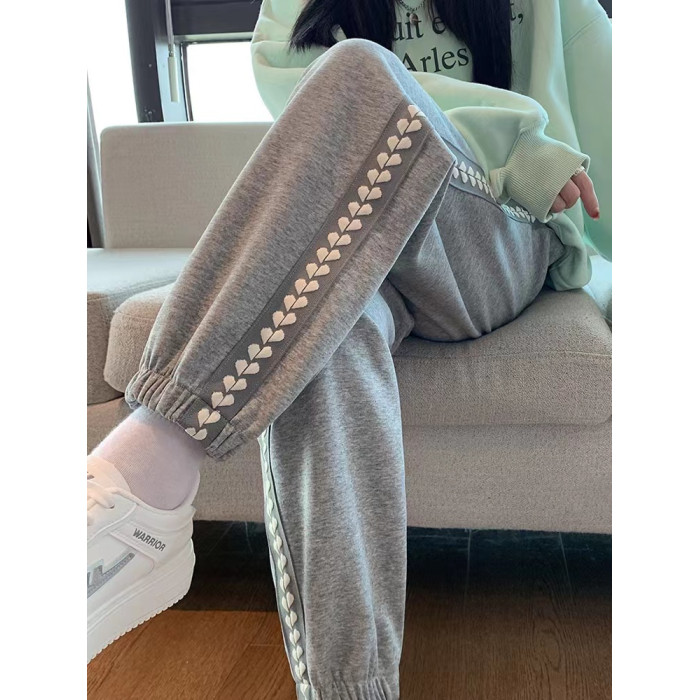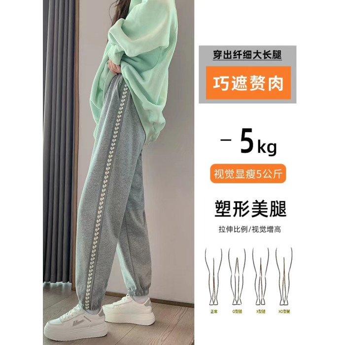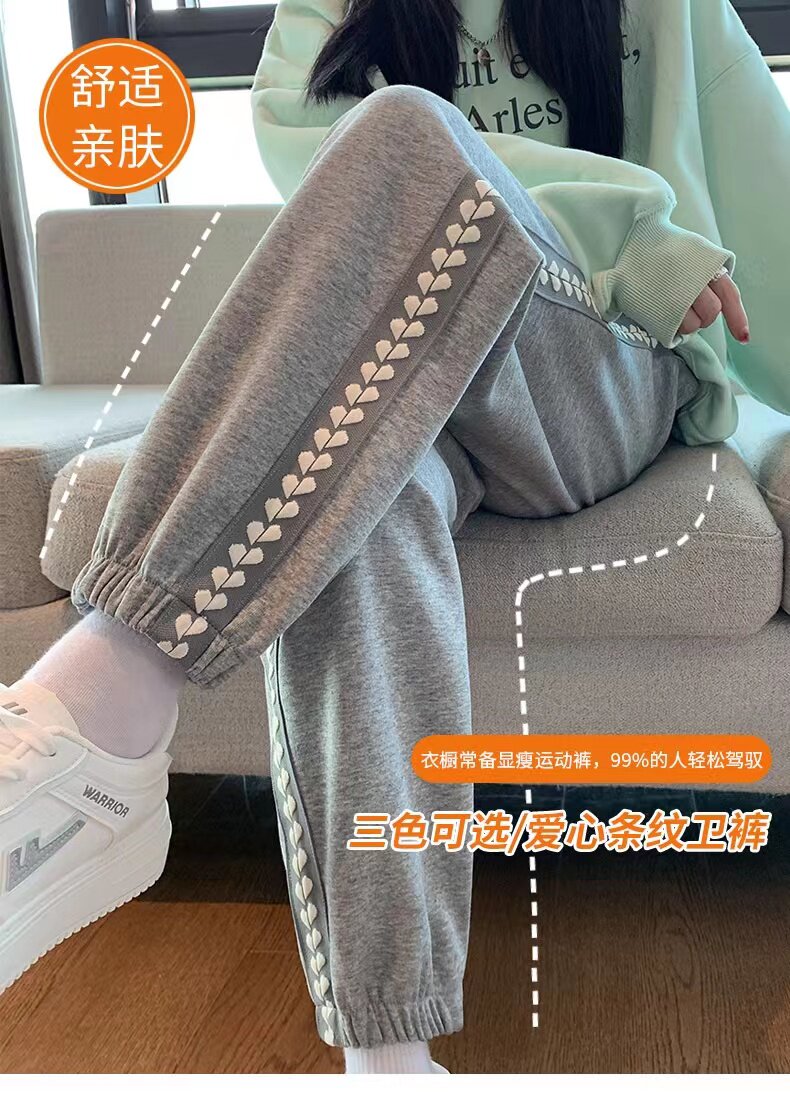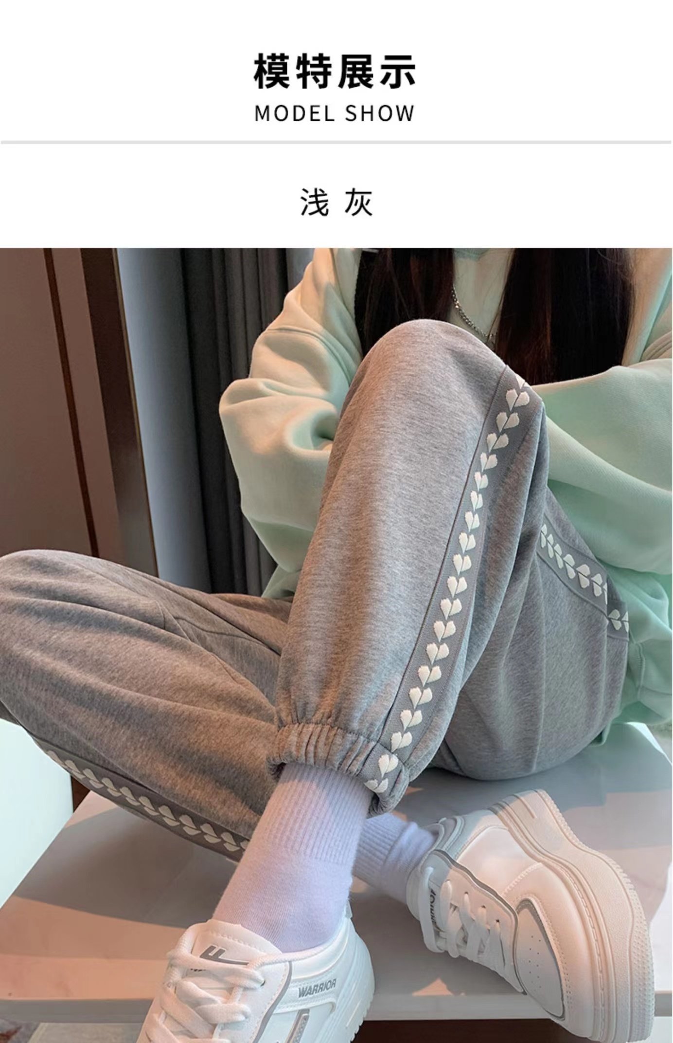 大碼灰色束腳加絨運動褲女2025新款秋冬胖mm顯瘦休閒褲子愛心衛褲