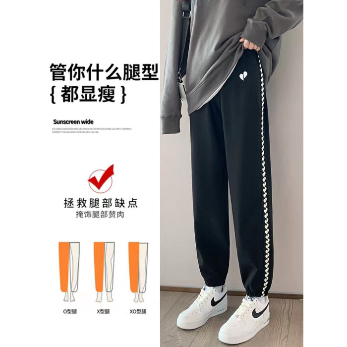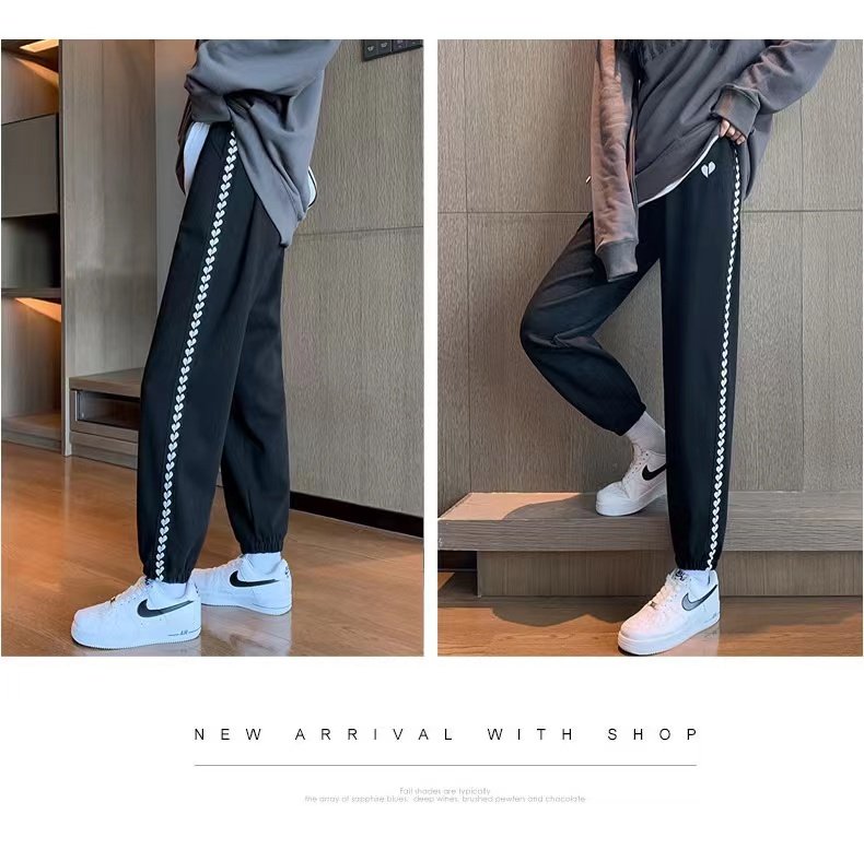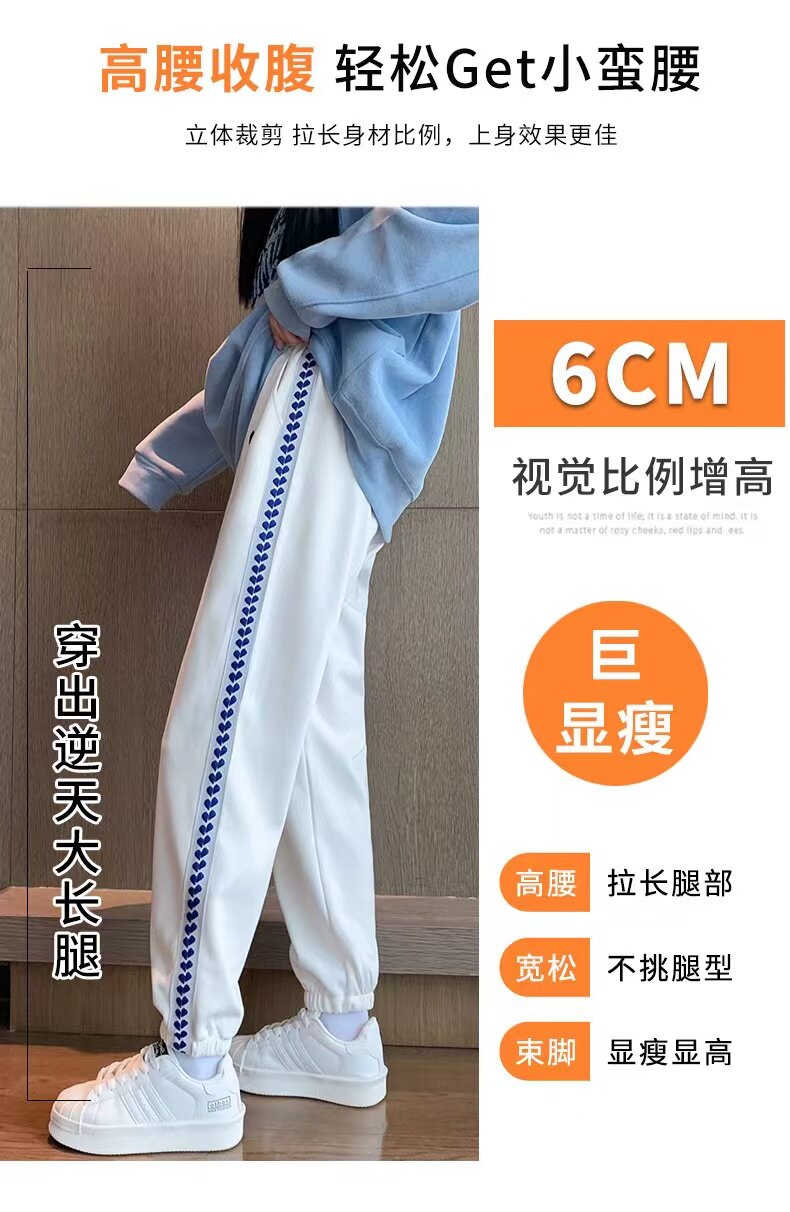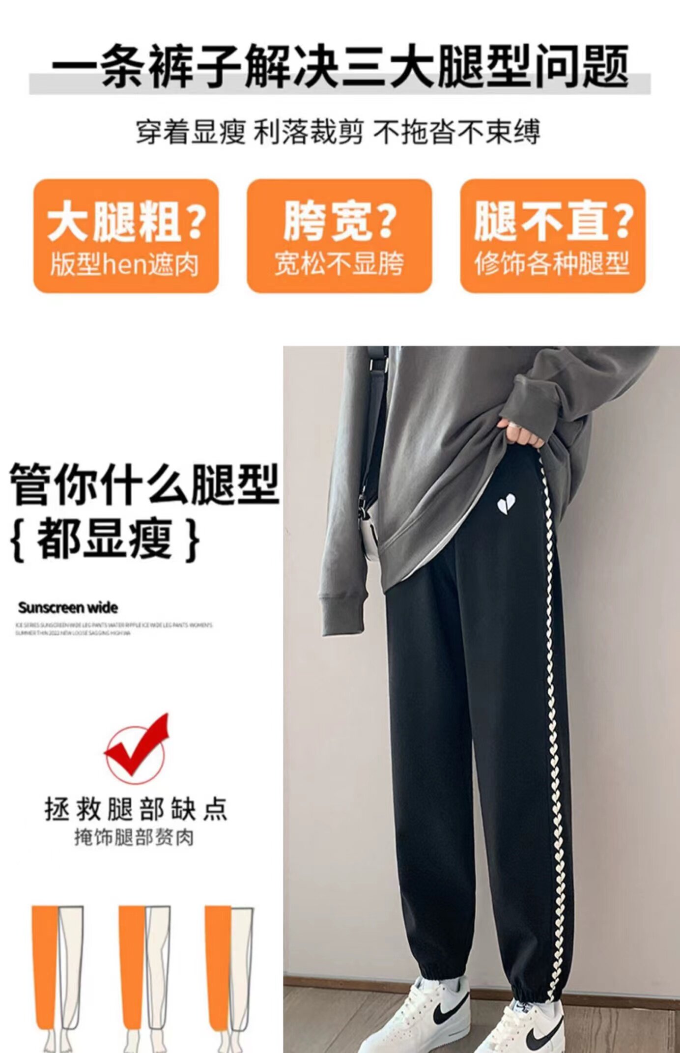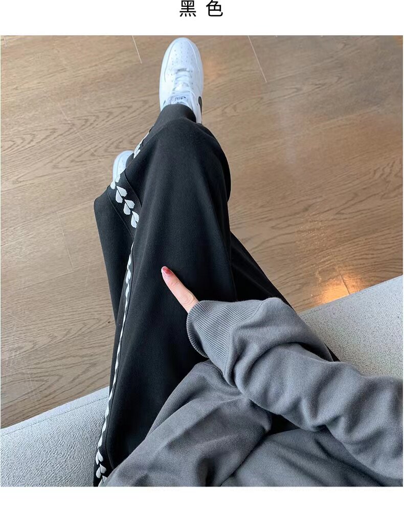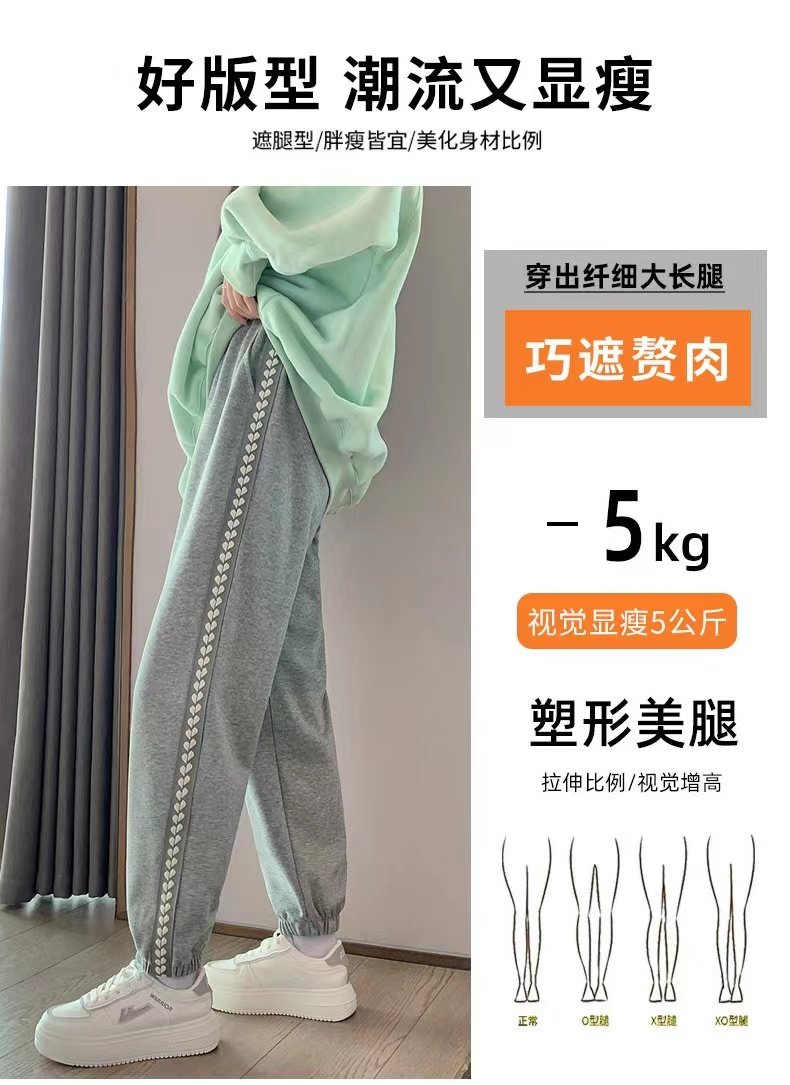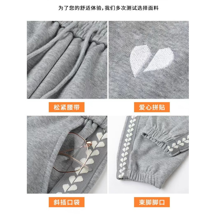大碼灰色束腳加絨運動褲女2025新款秋冬胖mm顯瘦休閒褲子愛心衛褲
