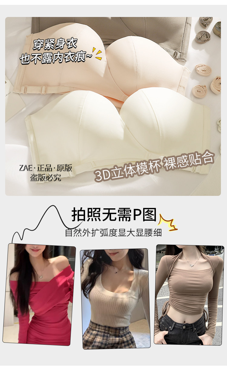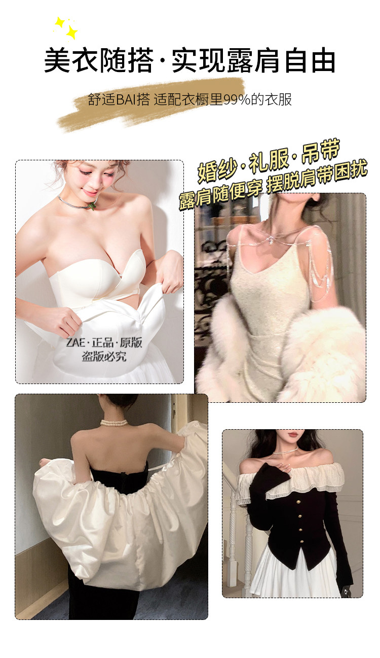無肩帶一字肩隱形裹抹胸貼婚紗穿禮服專用的內衣小胸聚攏防滑摸胸