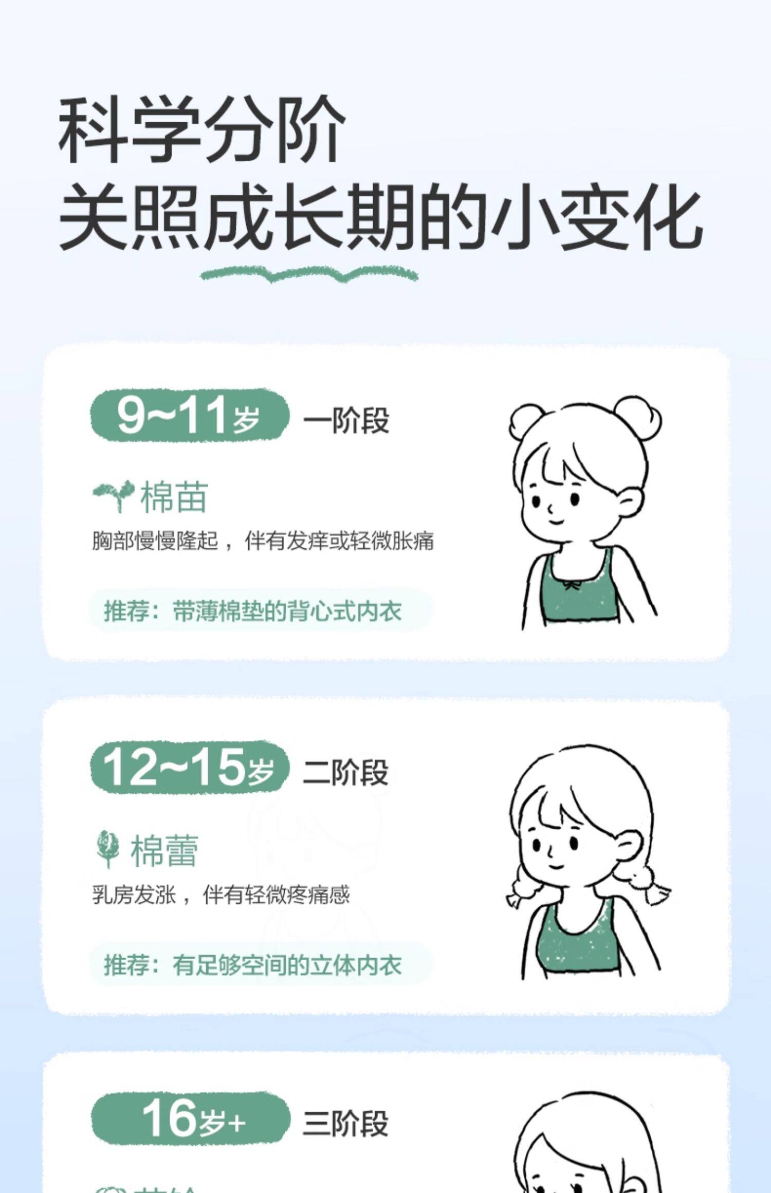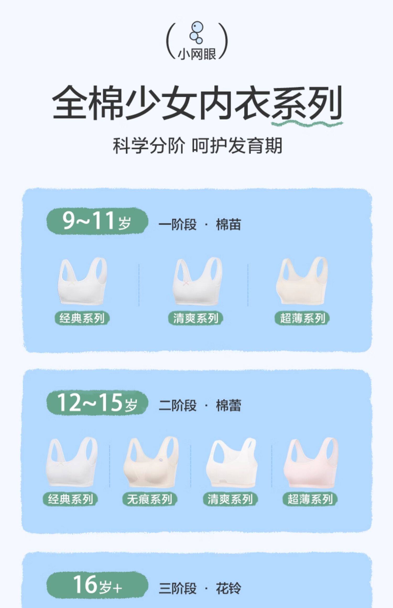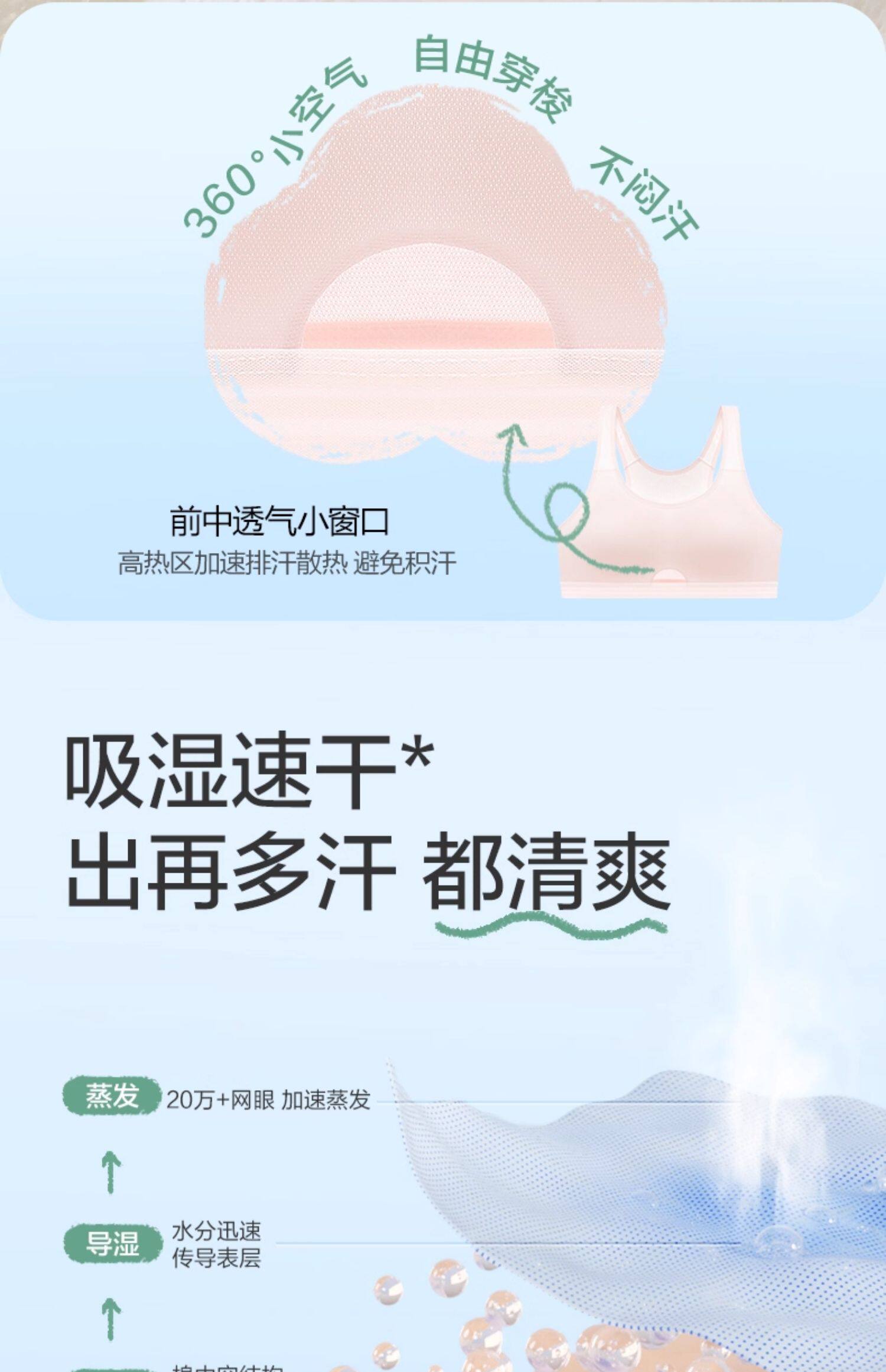 【運動速乾】全棉時代少女文胸透氣學生背心運動內衣純棉
