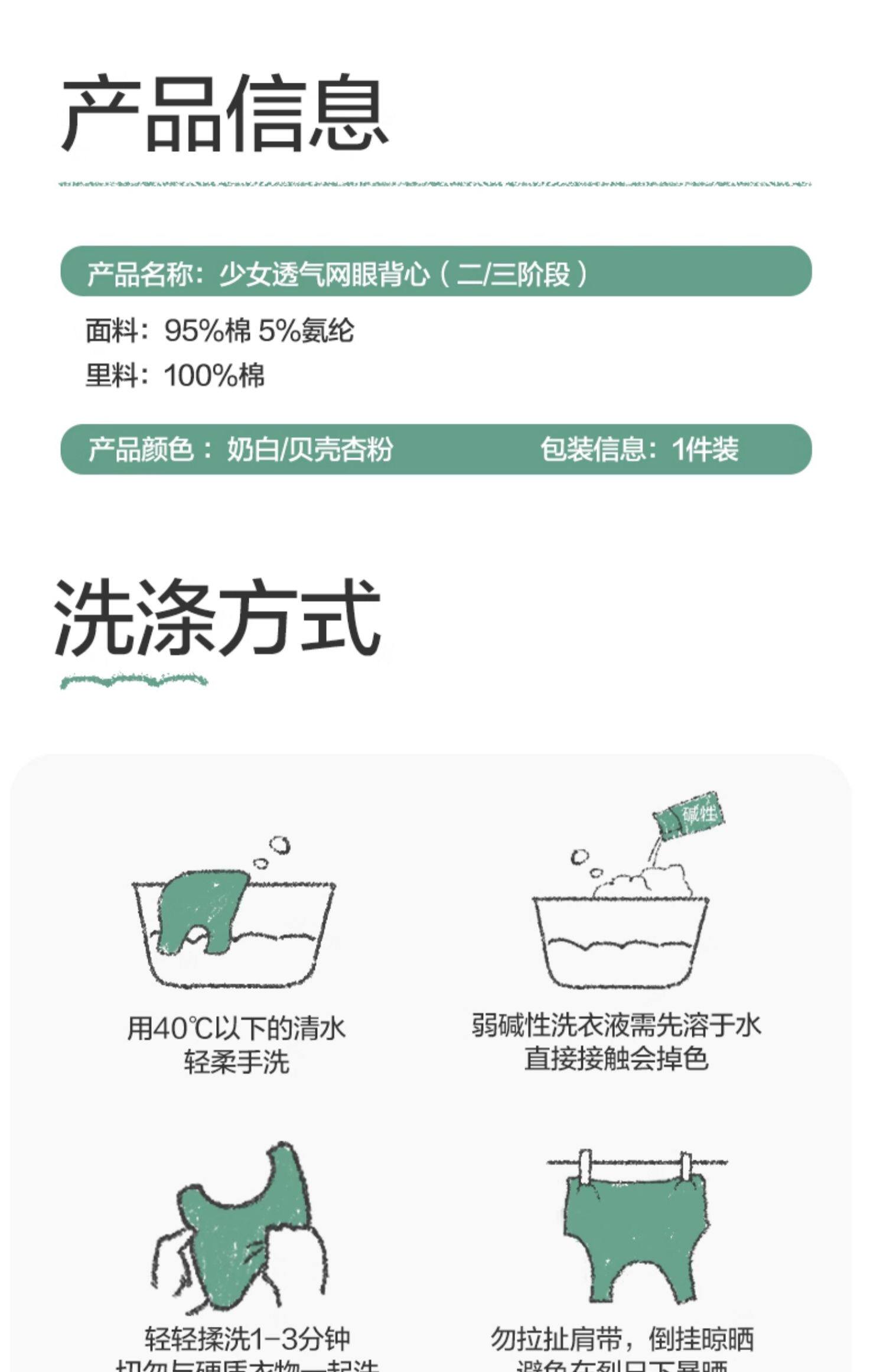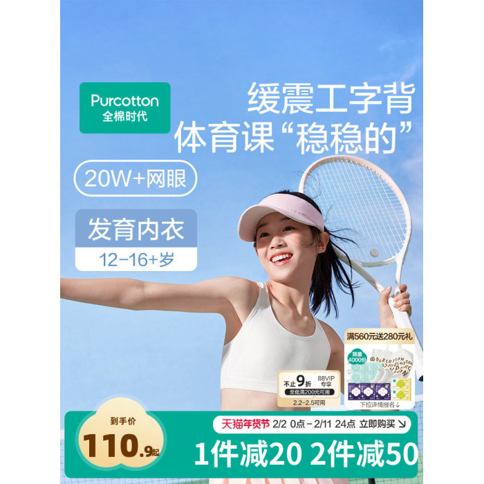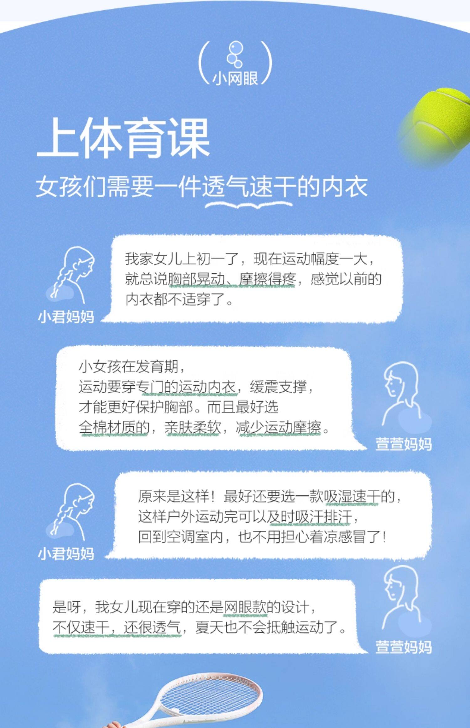 【運動速乾】全棉時代少女文胸透氣學生背心運動內衣純棉