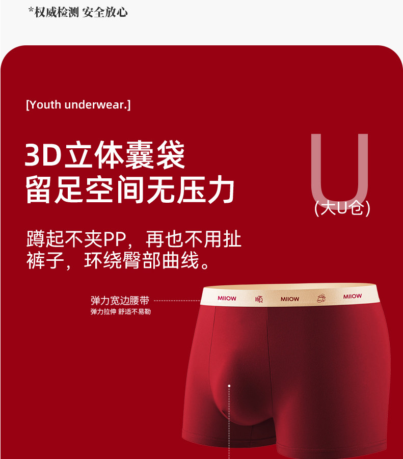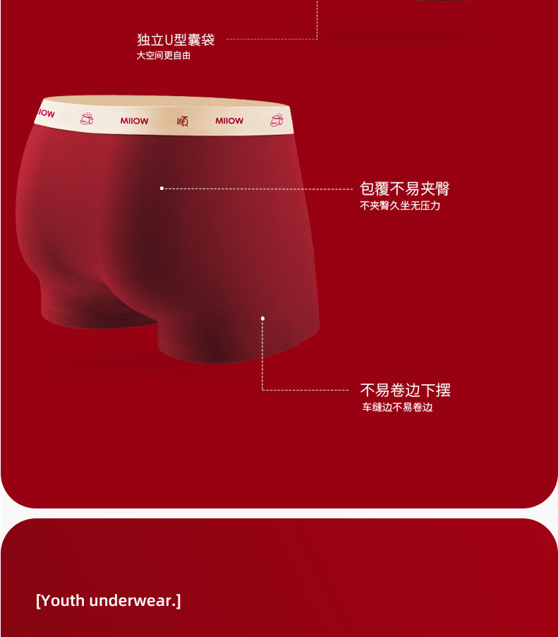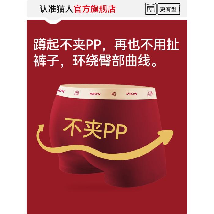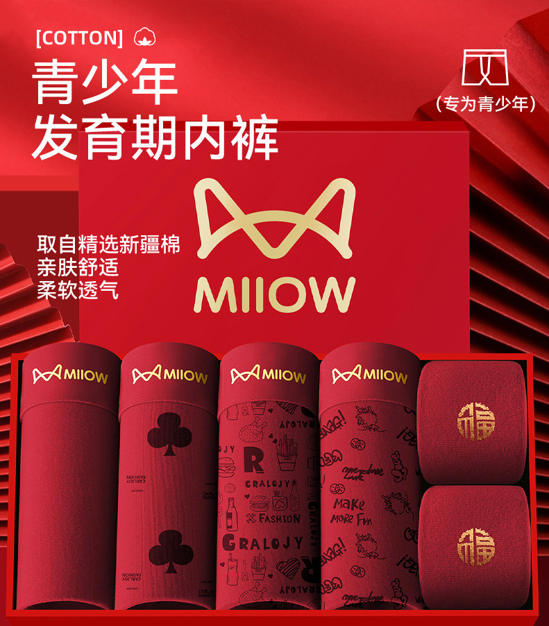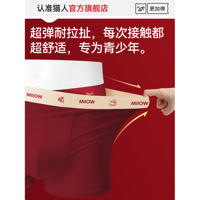 貓人青少年內褲男生本命年紅色純棉初高中生發育期大童男孩平角褲
