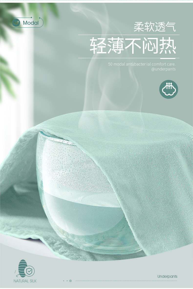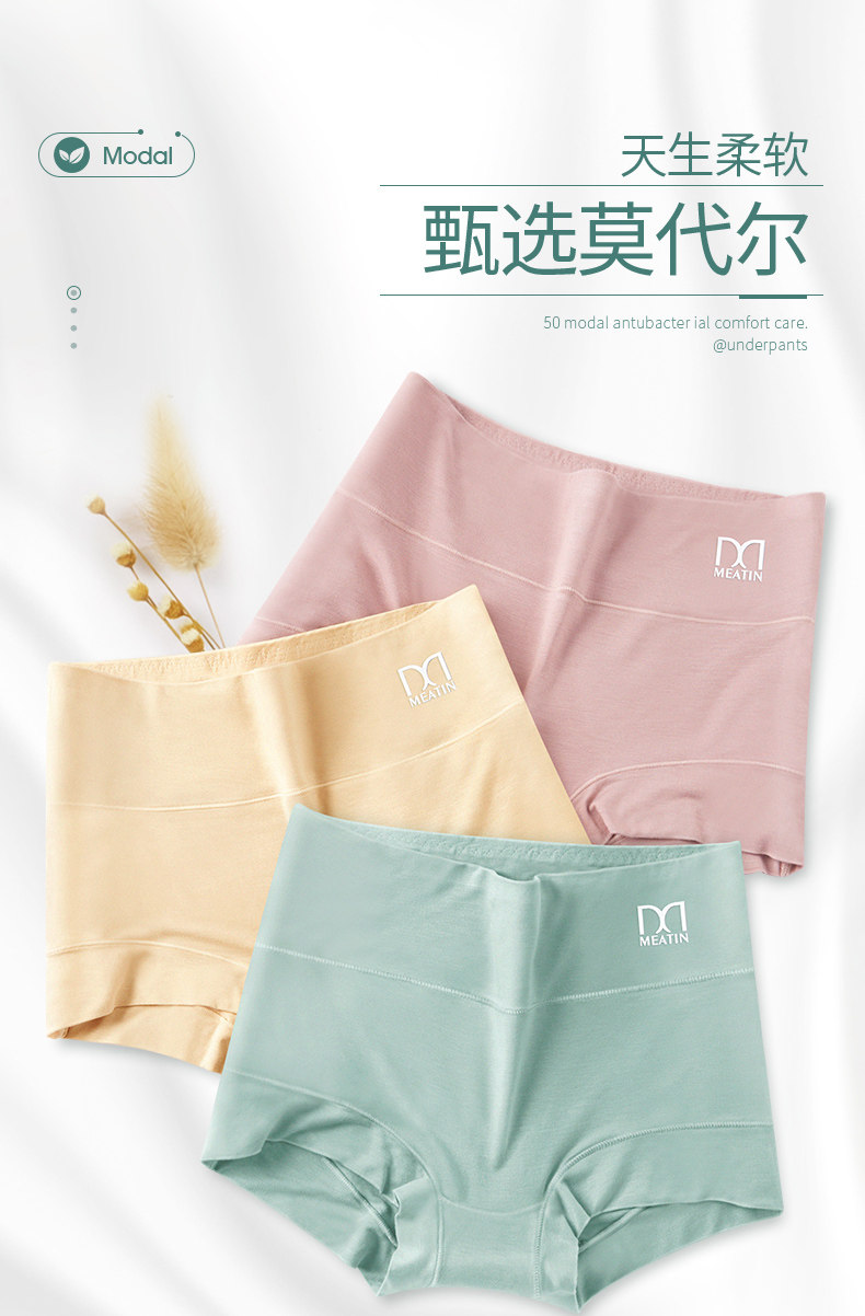 莫代爾女士平角內褲純棉全棉襠抗菌高腰收腹提臀四角防走光安全褲