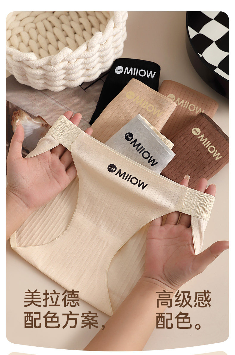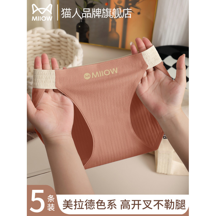 貓人純棉內褲女美拉德色系高開叉不勒腿親膚中腰無痕女純棉三角褲