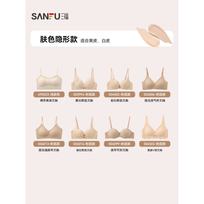 【穿白T不尲尬】三福防透膚文胸女無痕隱形胸罩粉底液自然膚內衣