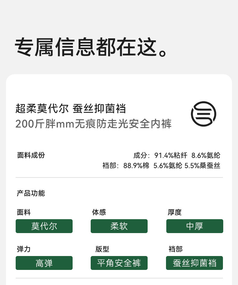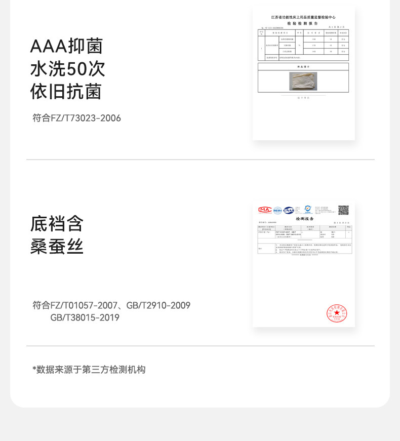 | 襠部材質成分 | 棉88.9% 聚氨酯彈性纖維(氨綸)5.6% 桑蠶絲5.5% |