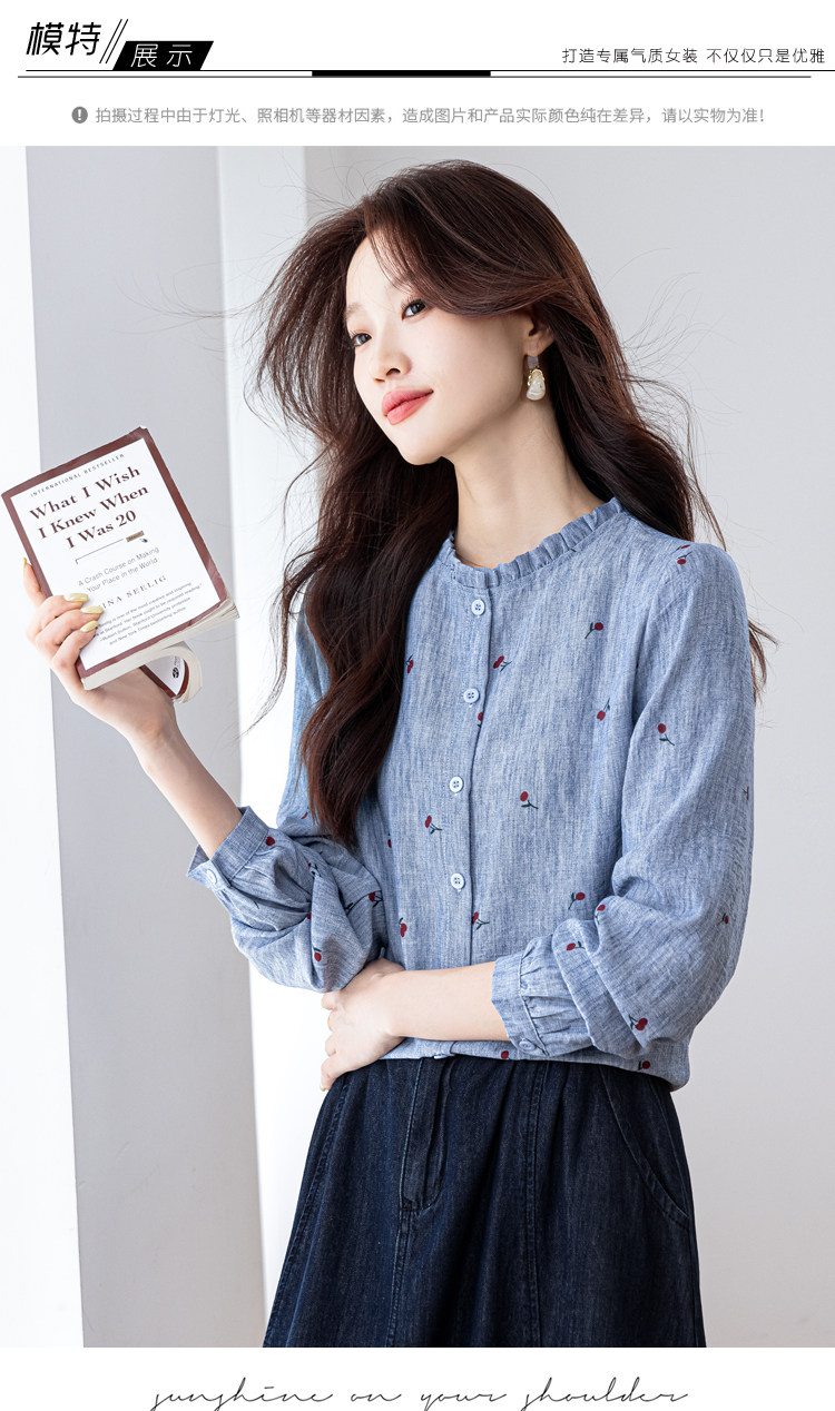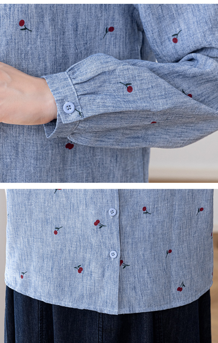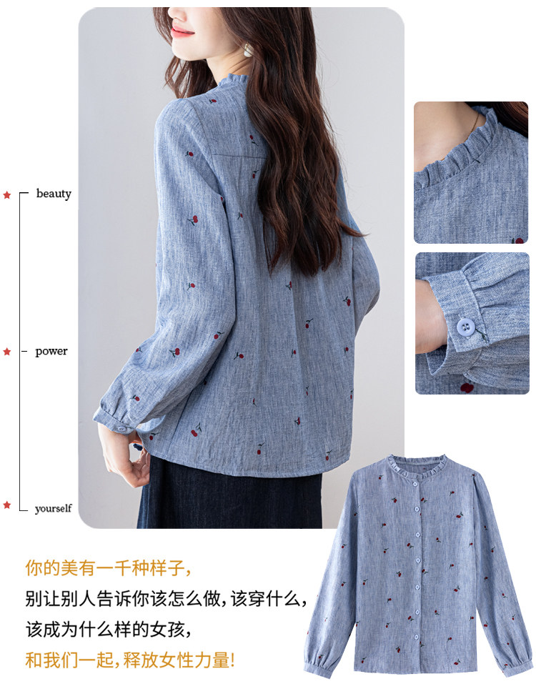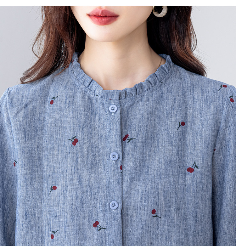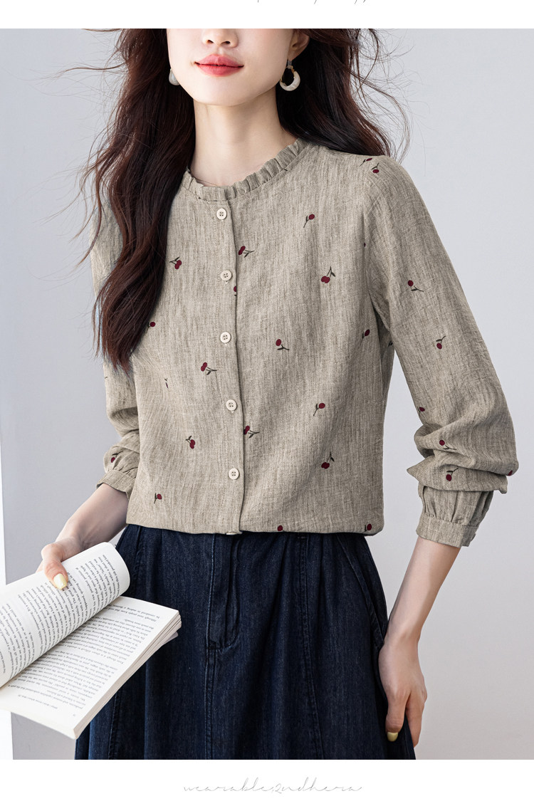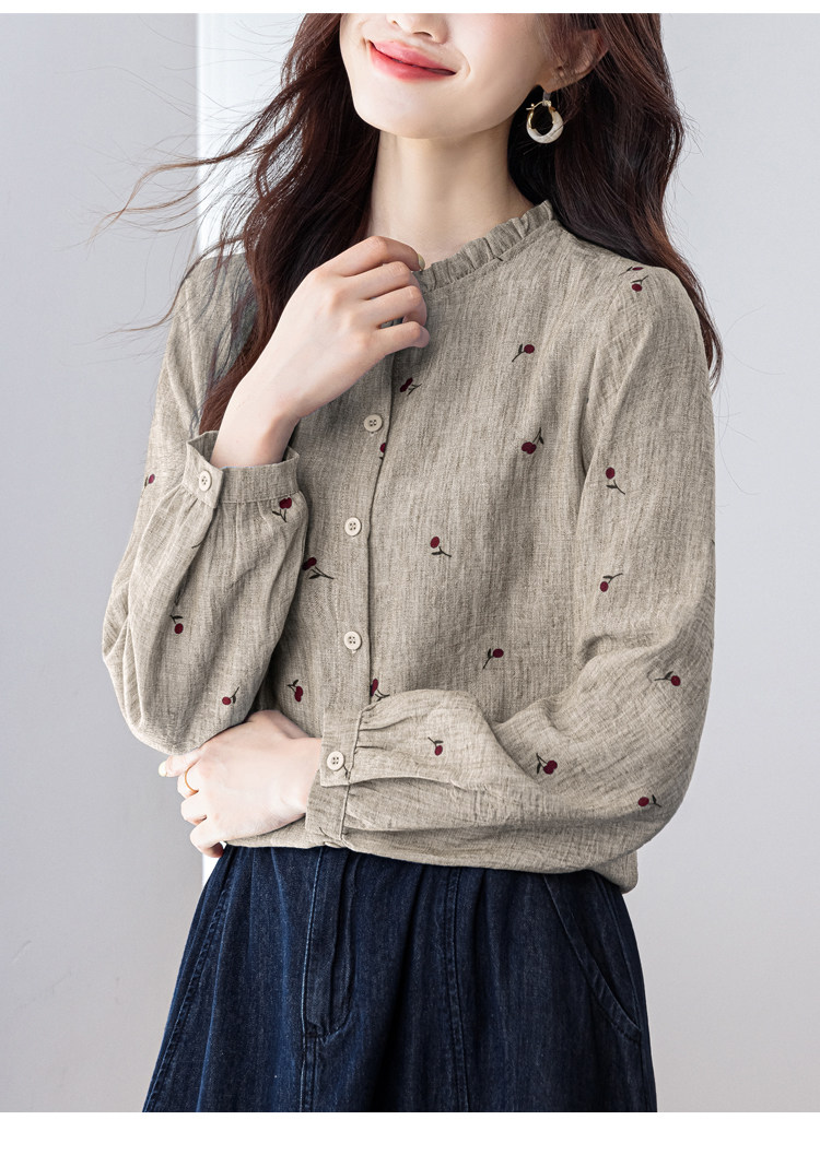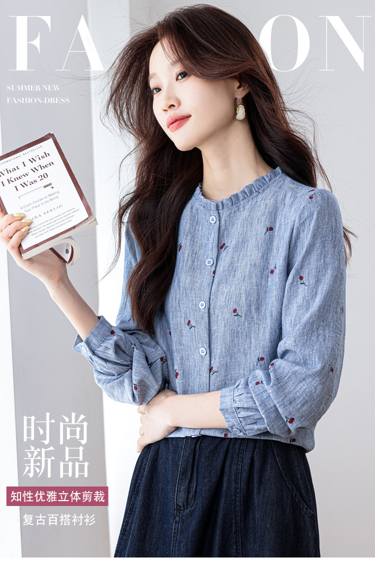 文藝印花長袖棉麻襯衫女士春裝新款氣質休閒小衫百搭洋氣顯瘦上衣