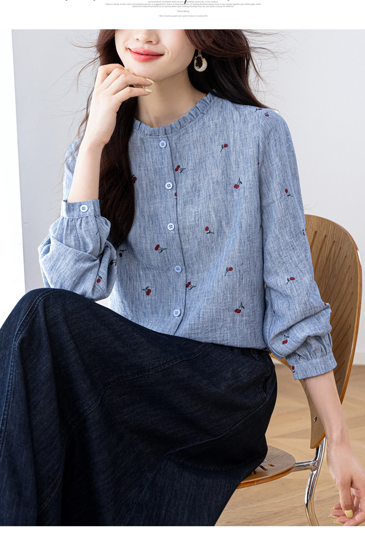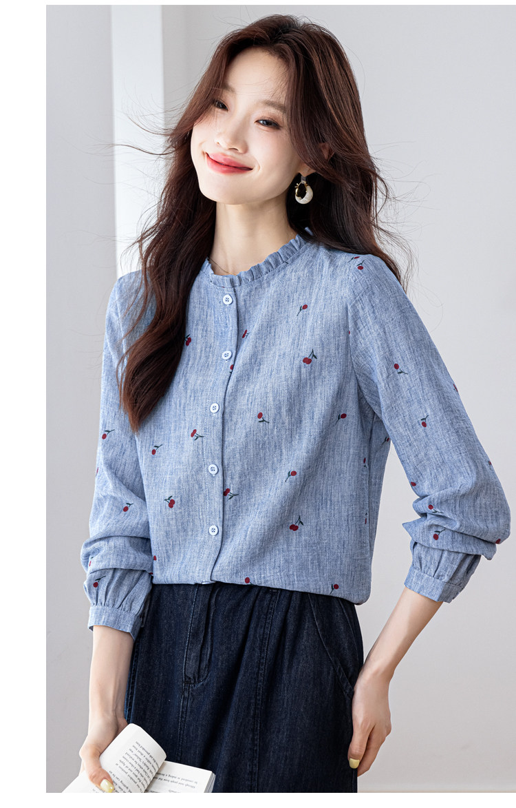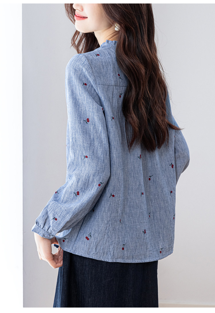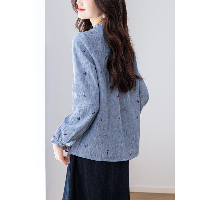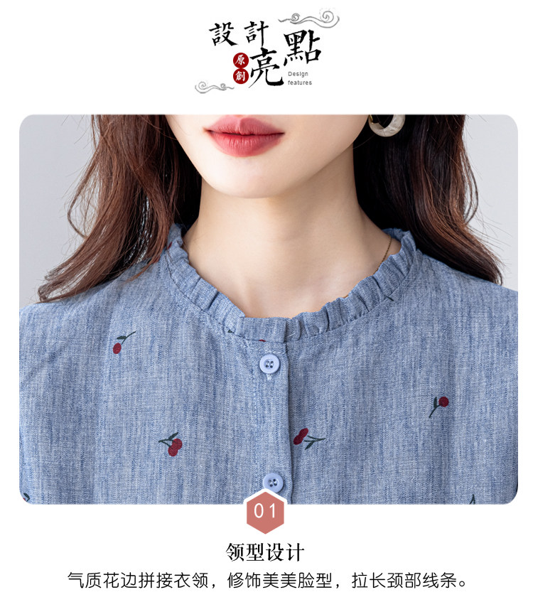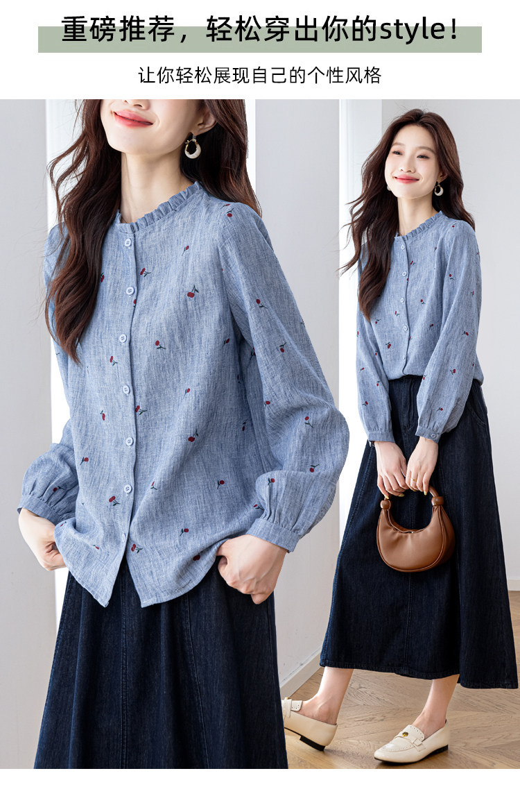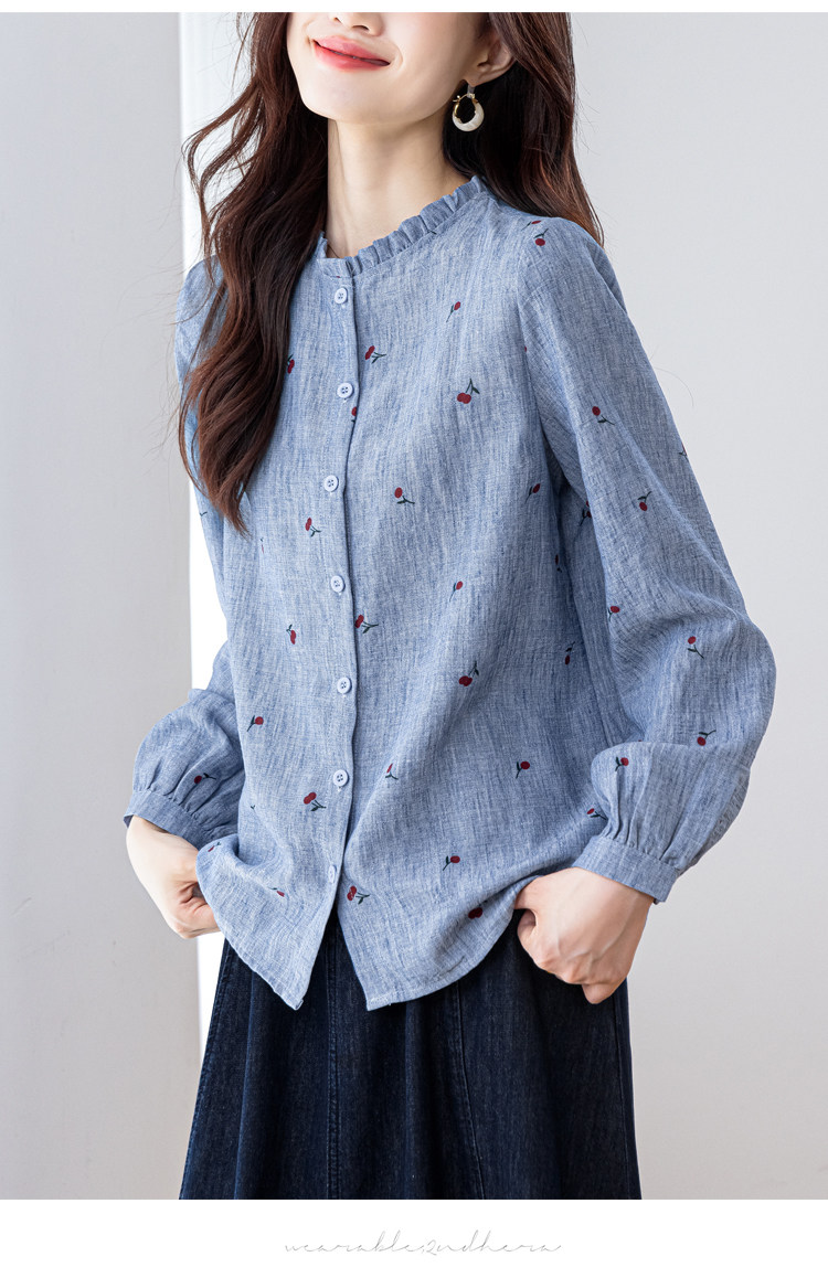 文藝印花長袖棉麻襯衫女士春裝新款氣質休閒小衫百搭洋氣顯瘦上衣