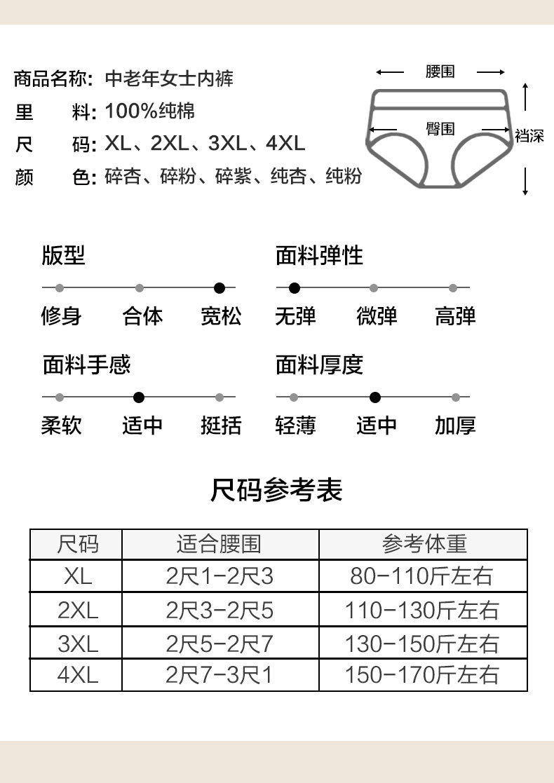 南極人媽媽內褲女士高腰純棉平角短褲中老年人大碼奶奶四角底褲衩