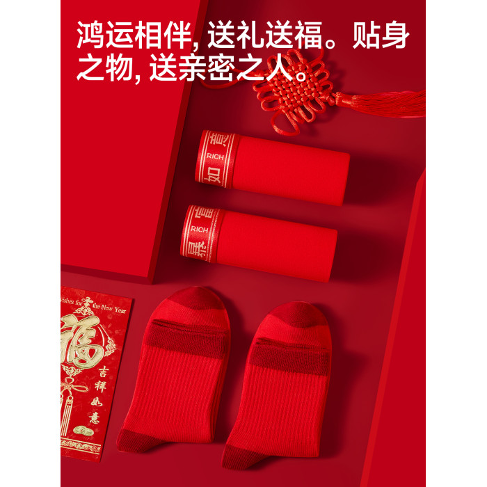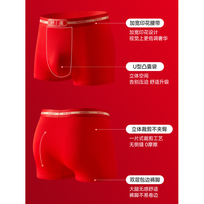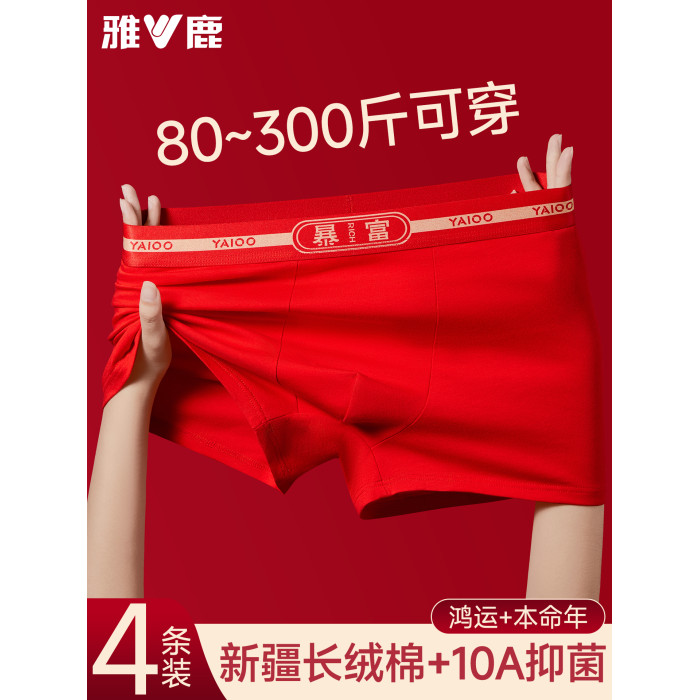 雅鹿本命年大紅色男士款內褲平角四角褲純棉加肥加大碼300斤馬年