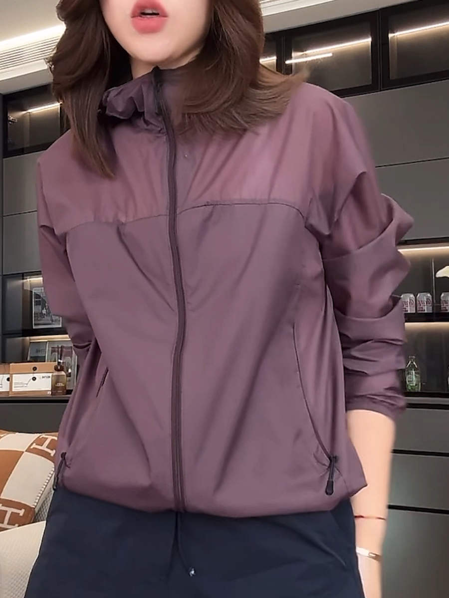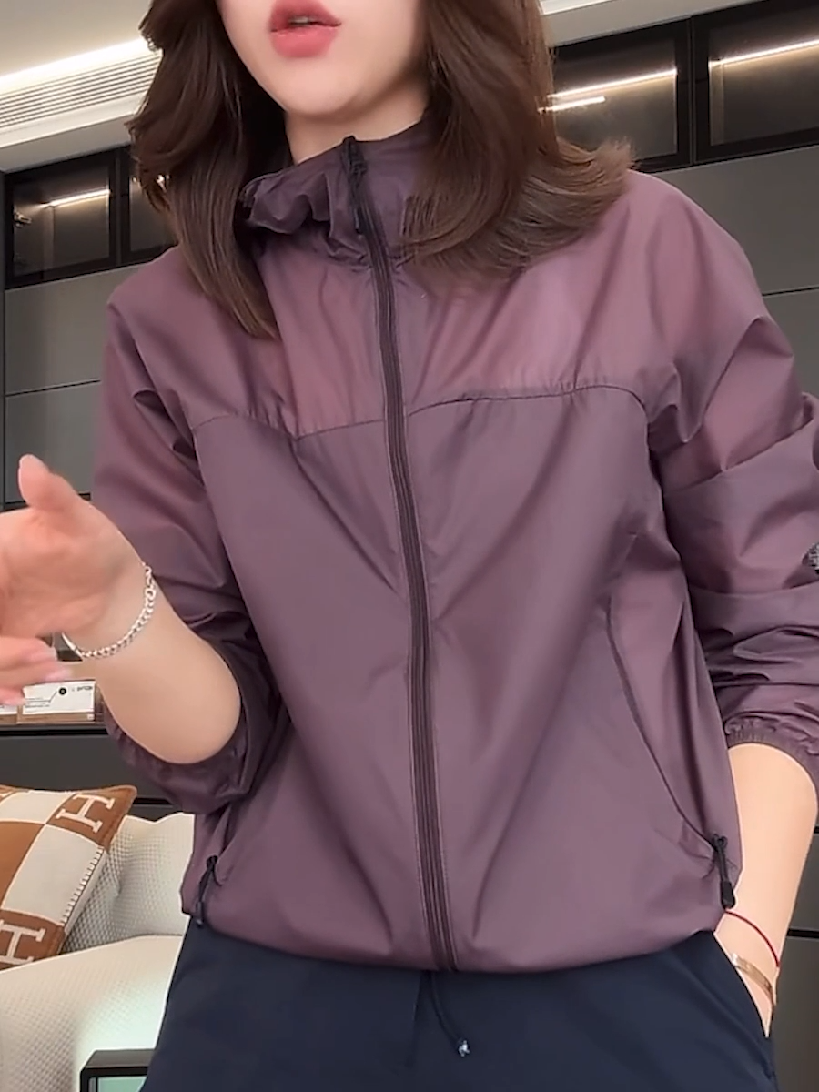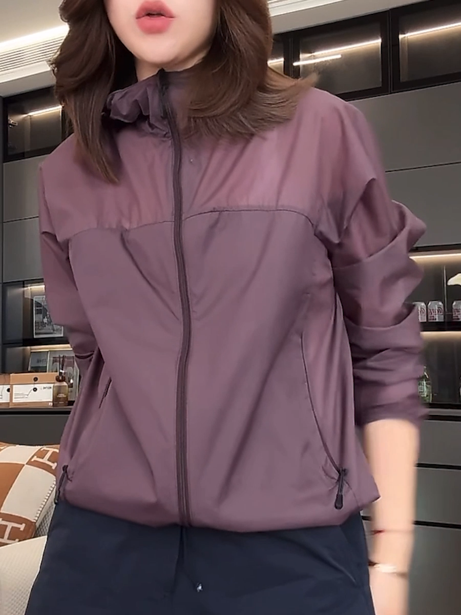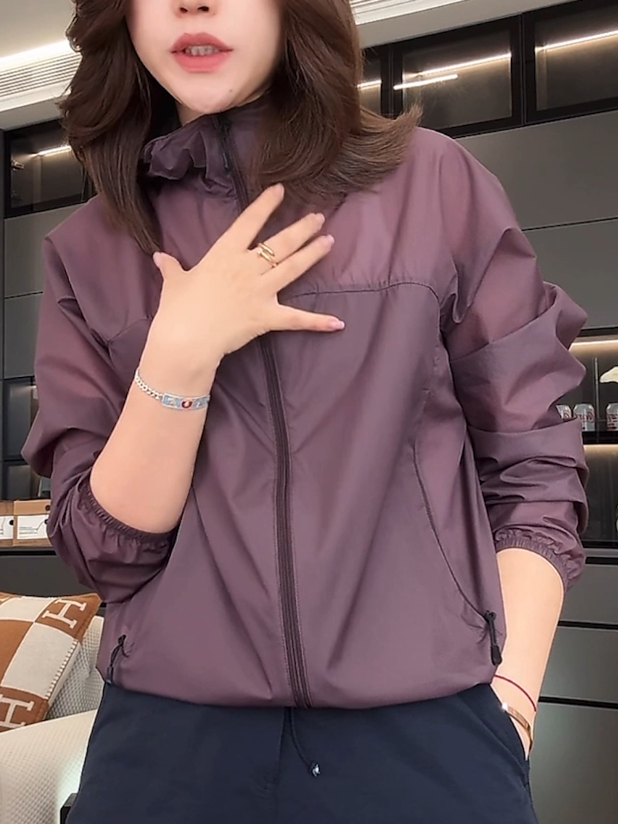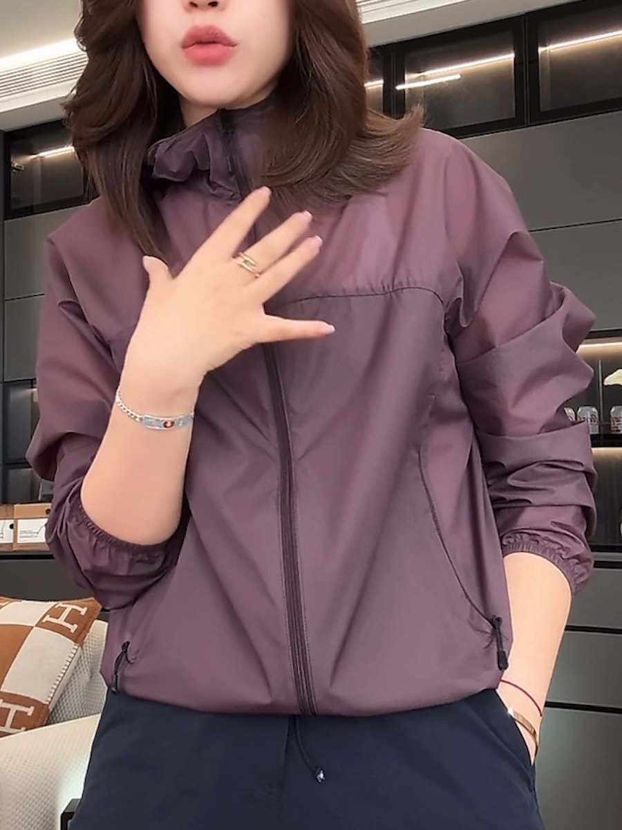 長袖防曬沖鋒衣外套女2025夏季新款韓版寬鬆洋氣拉鍊高領夾克上衣