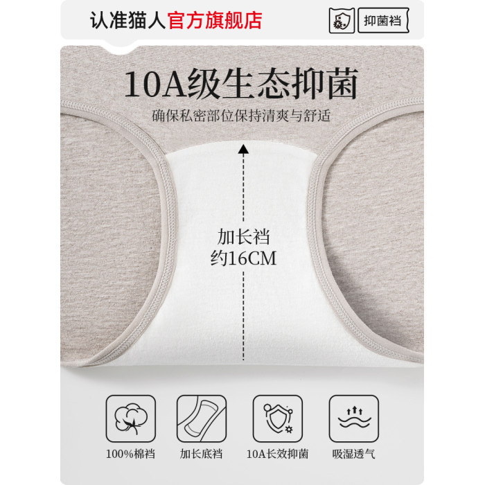 貓人醫用棉內褲女士純棉抗菌全棉加長襠2025新款高腰收腹女生底褲