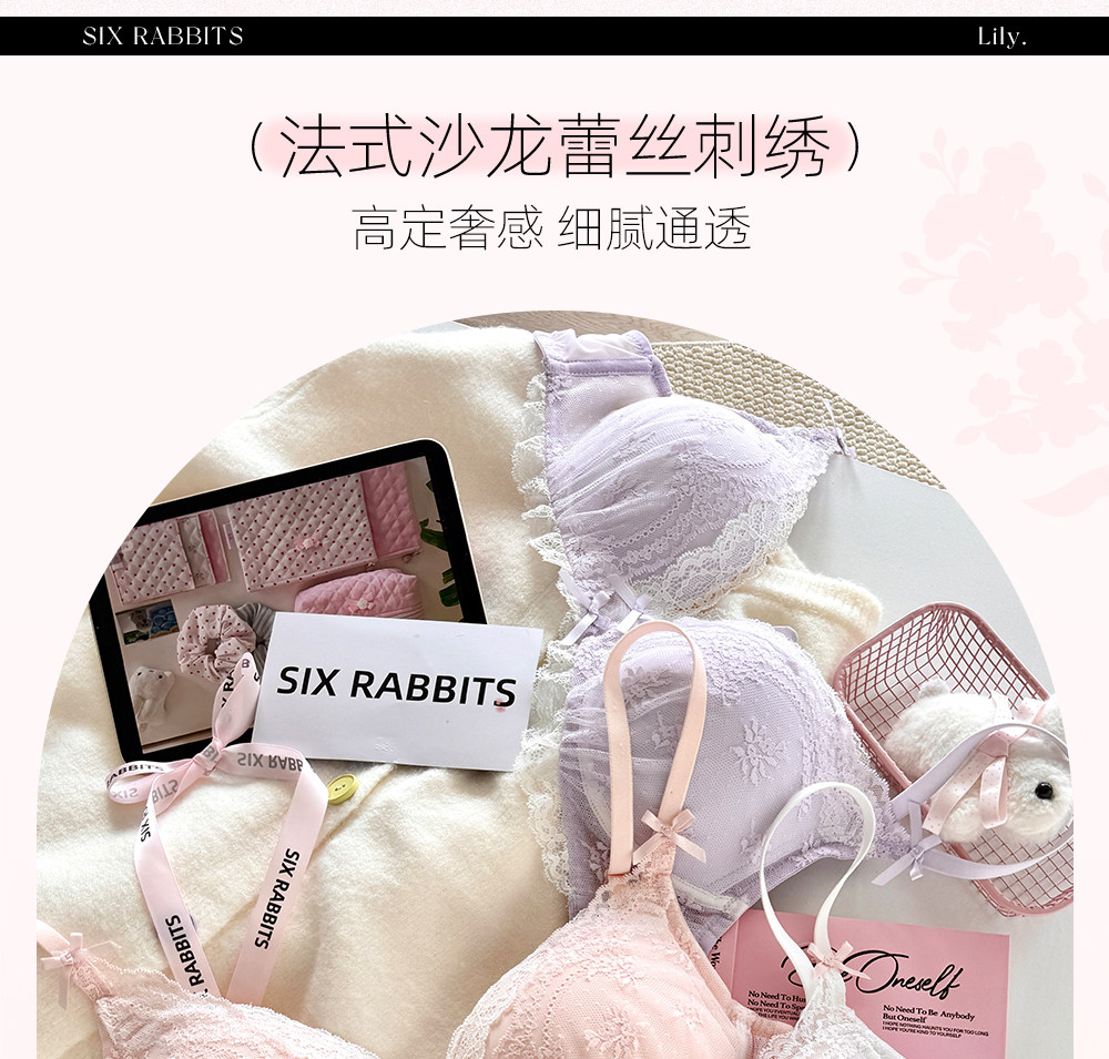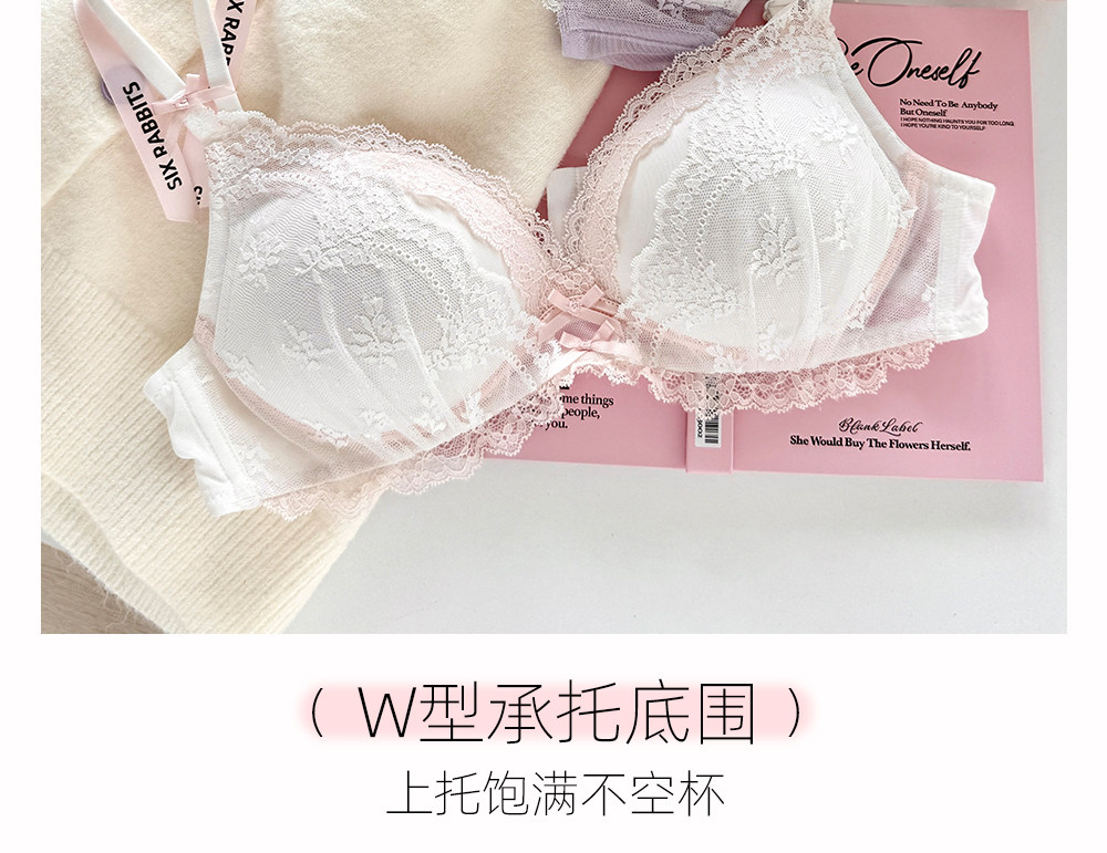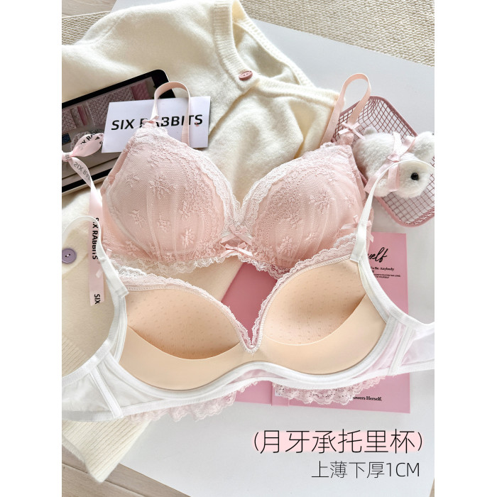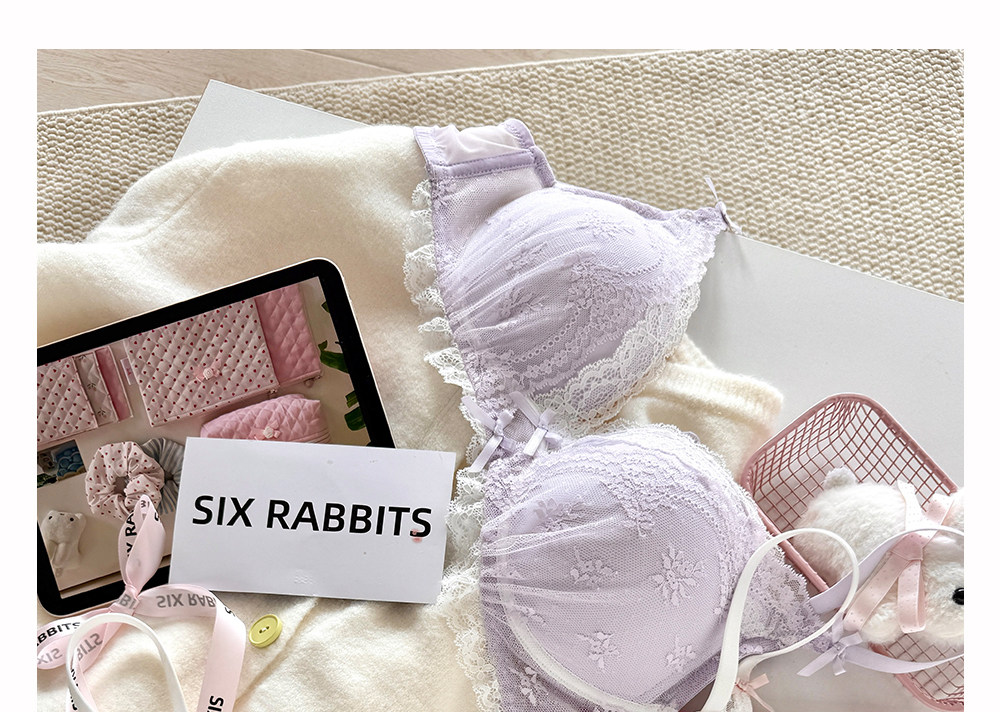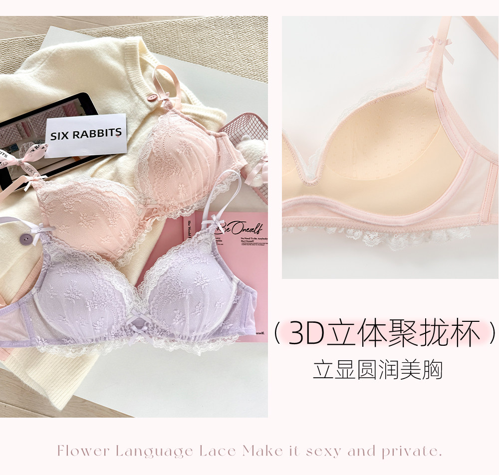 六隻兔子蕾絲內衣女小胸聚攏顯大胸罩無鋼圈收副乳防下垂甜美文胸
