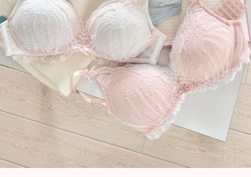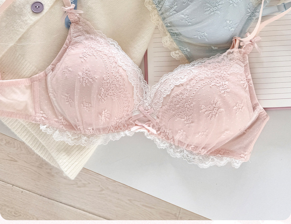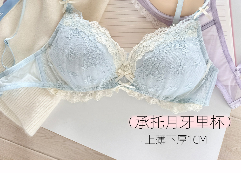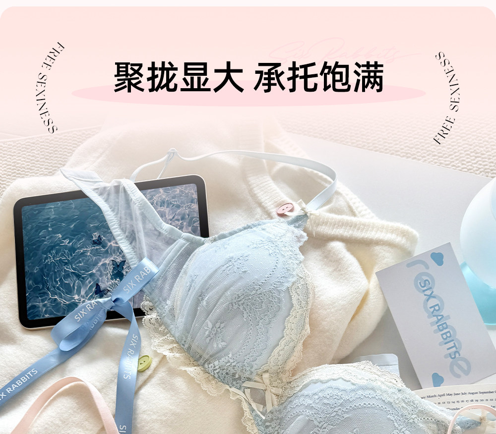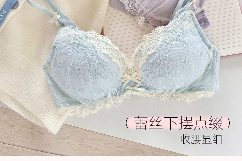 六隻兔子蕾絲內衣女小胸聚攏顯大胸罩無鋼圈收副乳防下垂甜美文胸