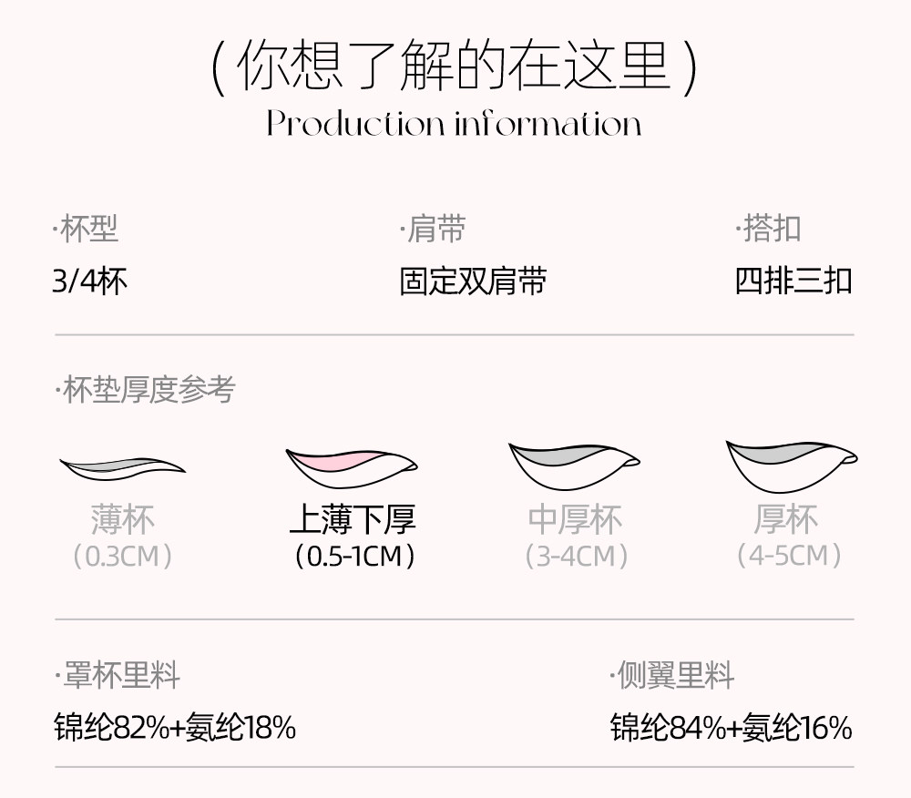 | 罩杯款式 | 3/4罩杯 |