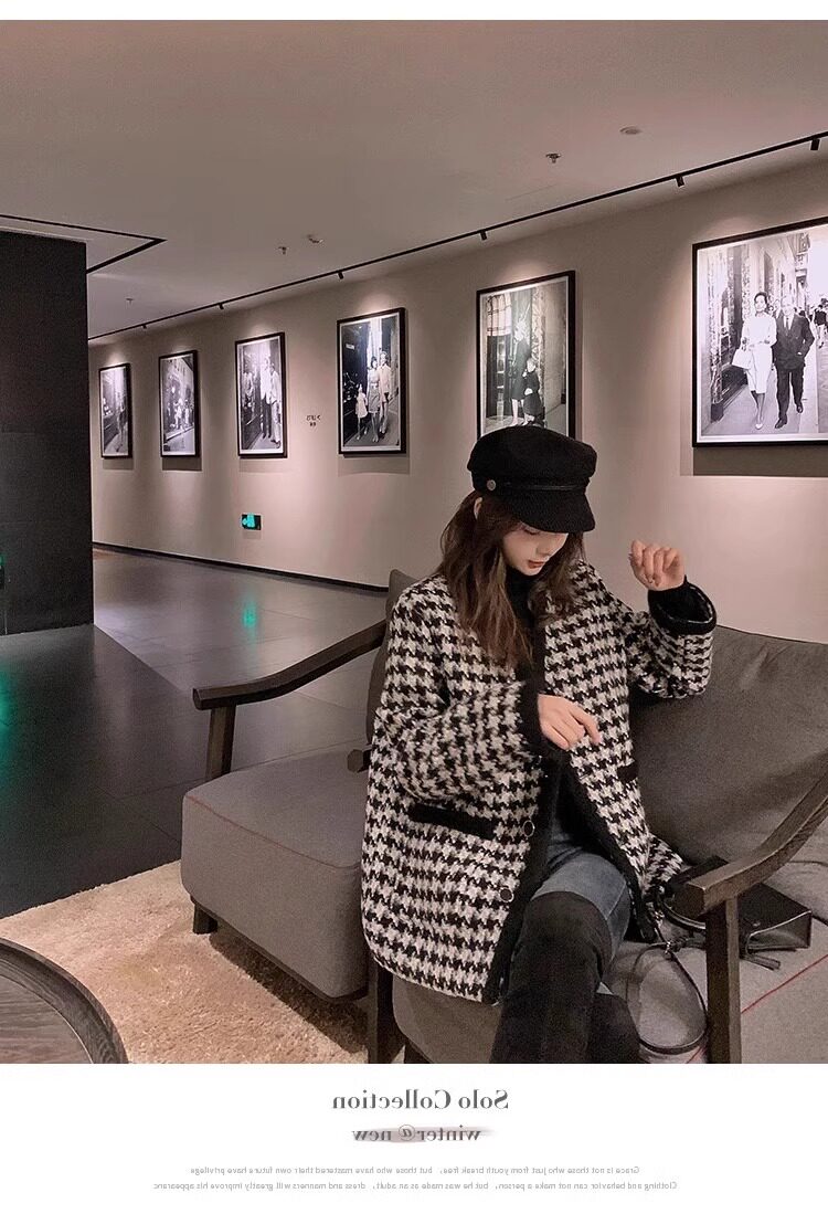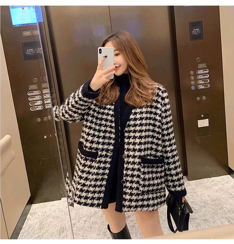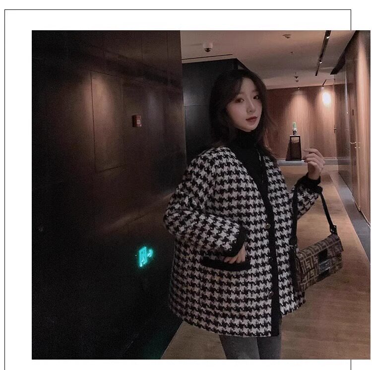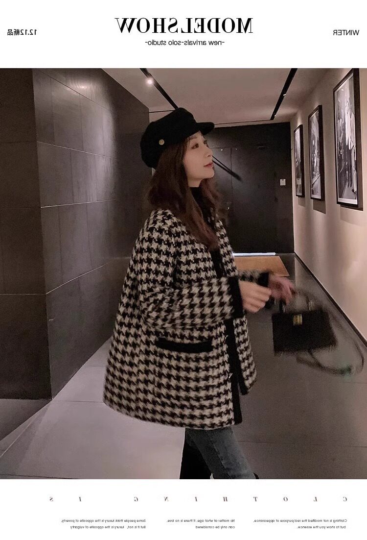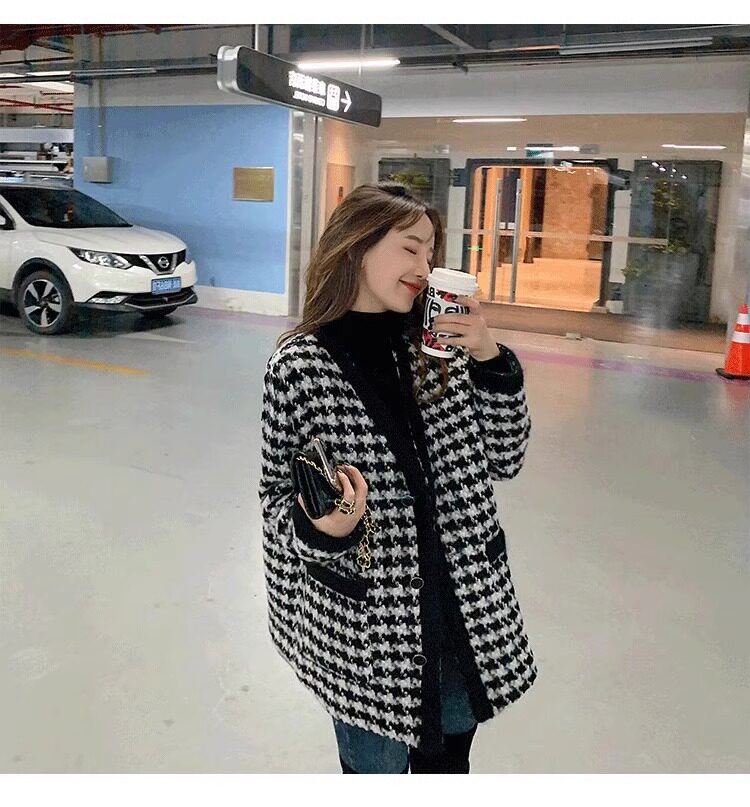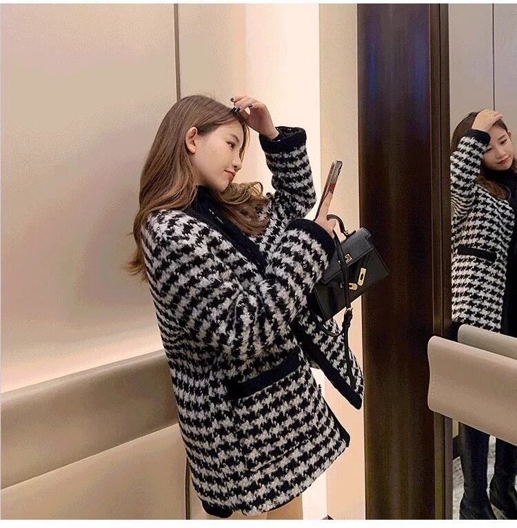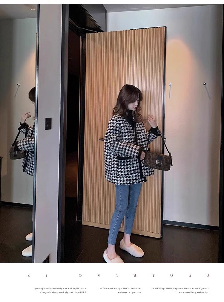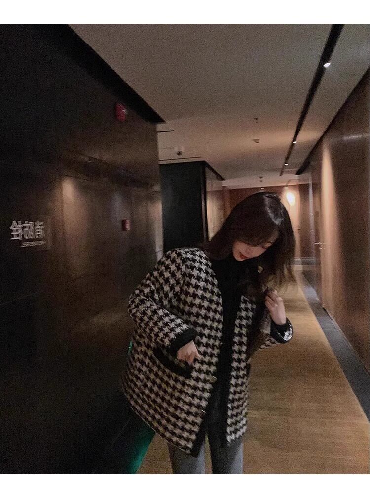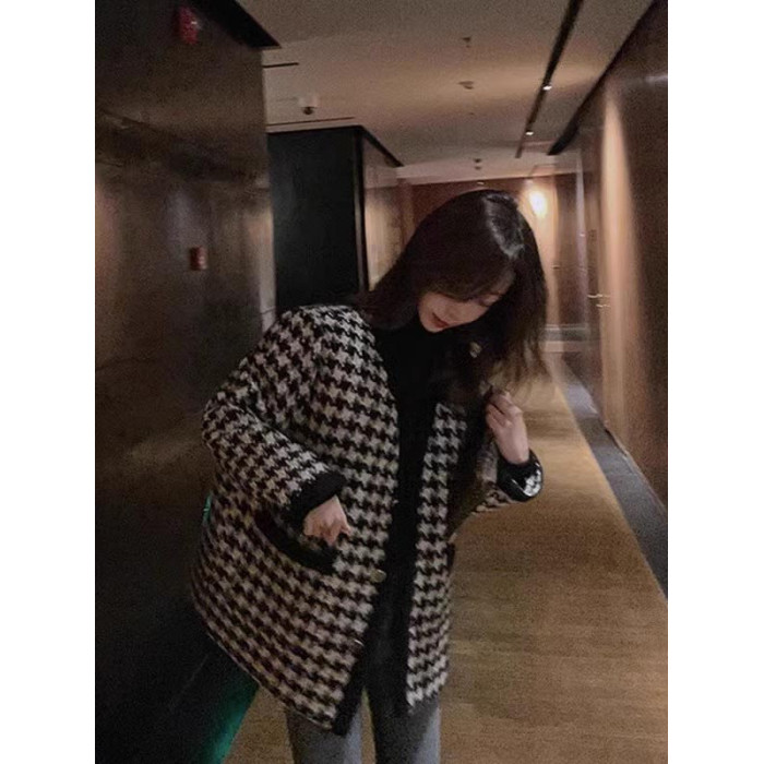 氣質女裝2025年新款冬季時尚法式高級感小香風休閒寬鬆千鳥格外套