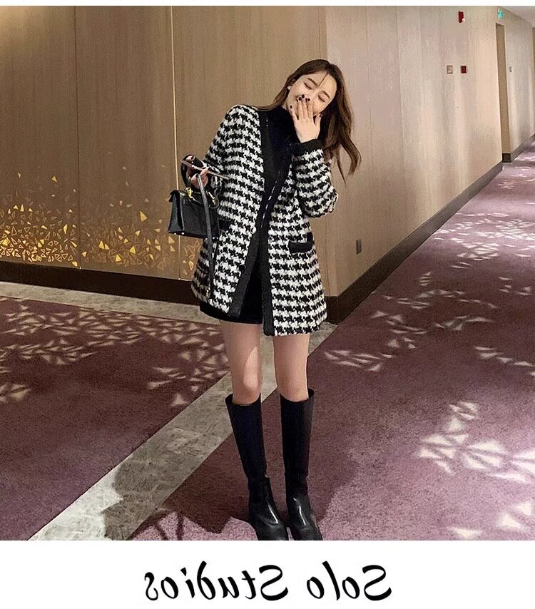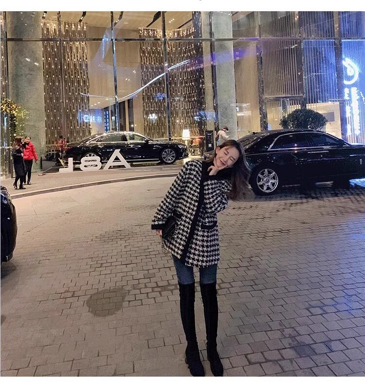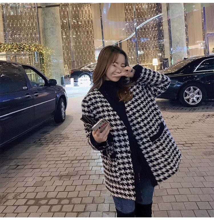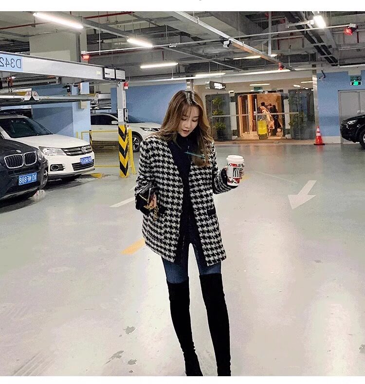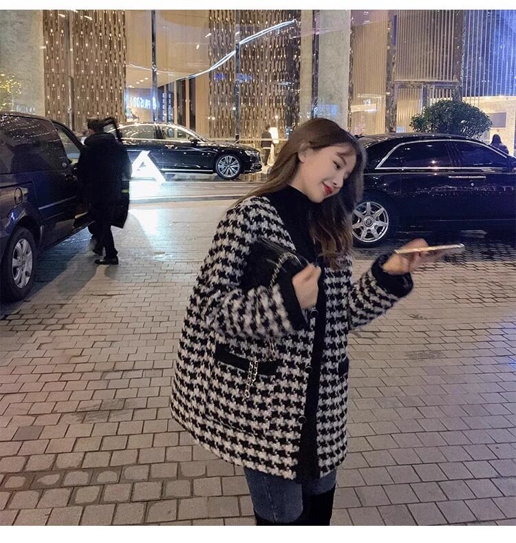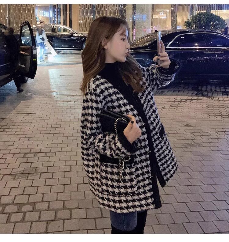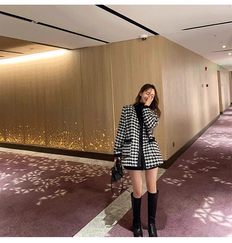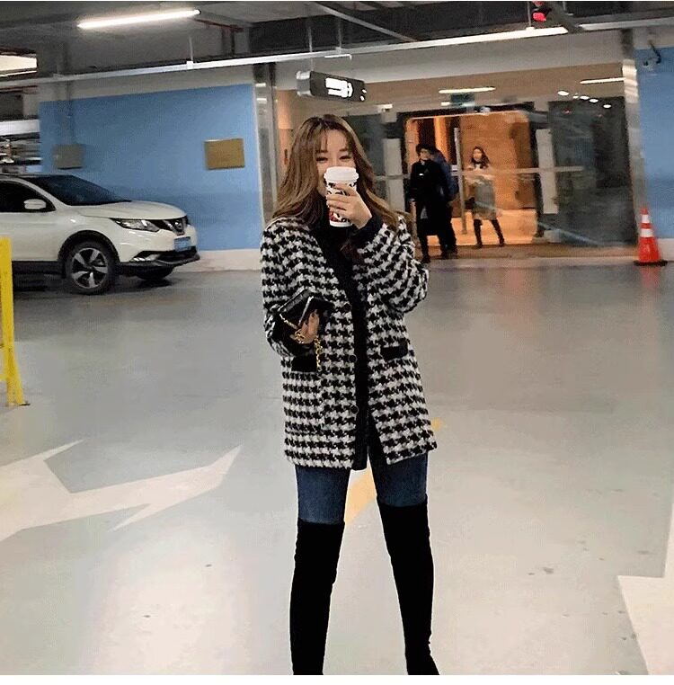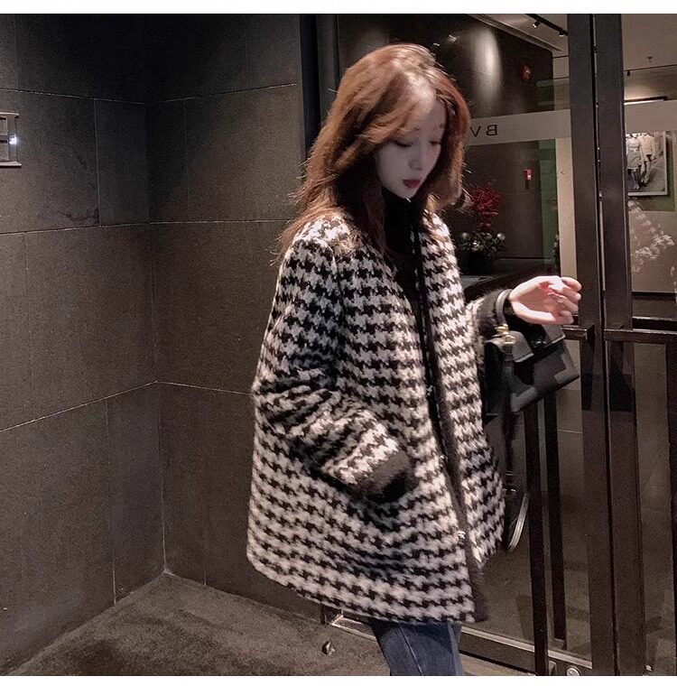 氣質女裝2025年新款冬季時尚法式高級感小香風休閒寬鬆千鳥格外套