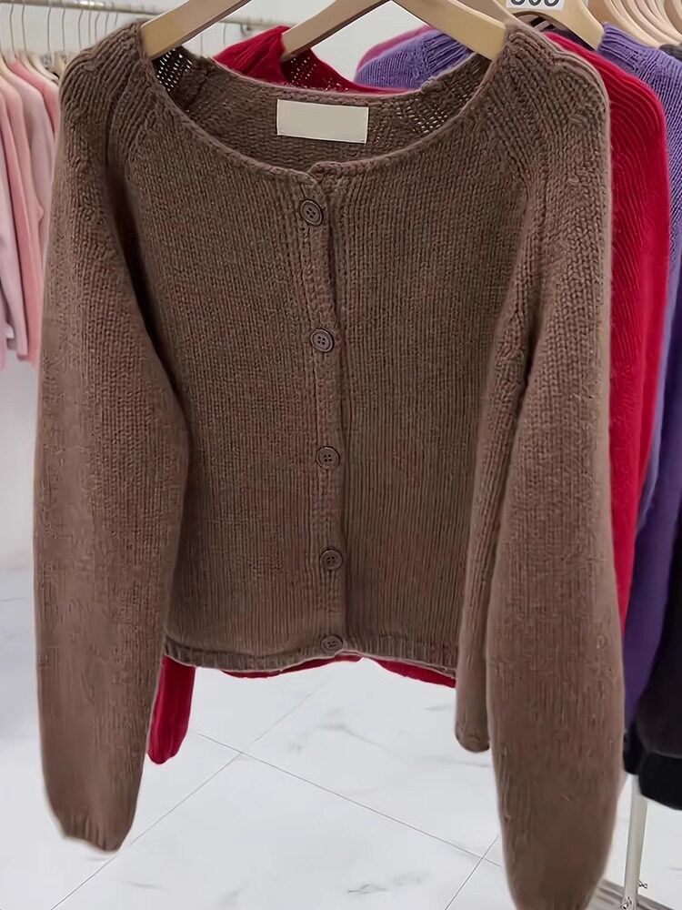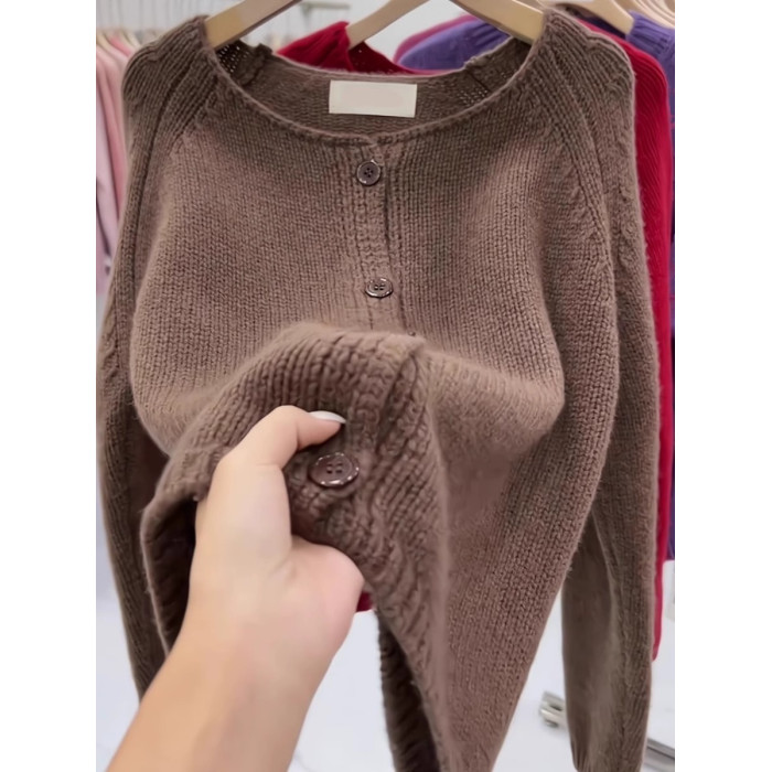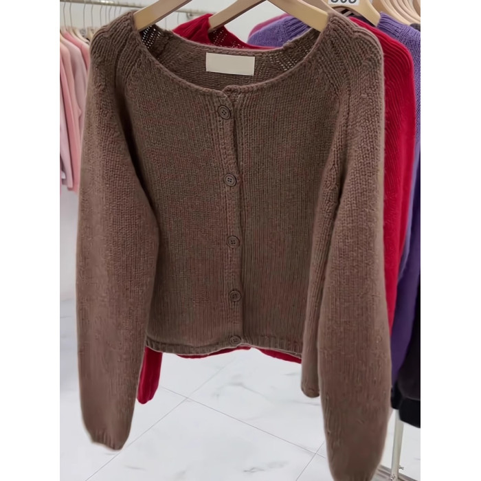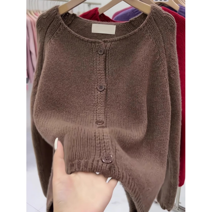 韓系高級感咖啡色針織開衫女秋冬季浙江桐鄕濮院毛衣外套長袖上衣