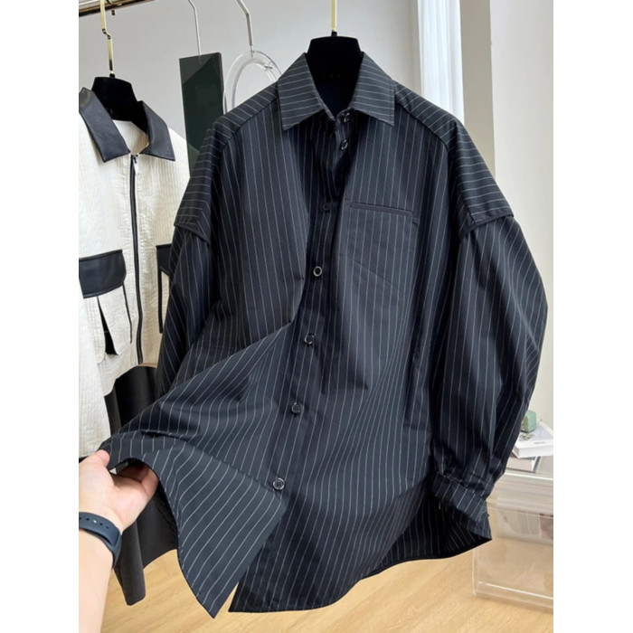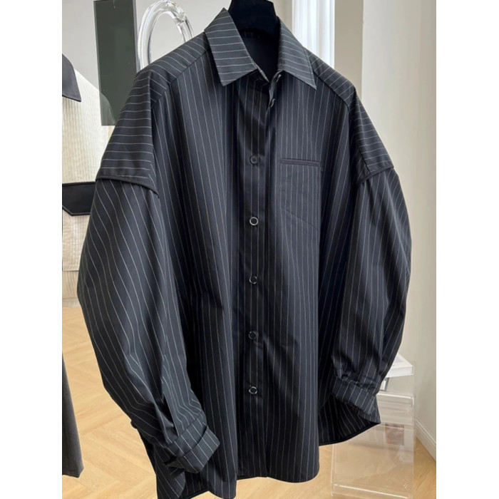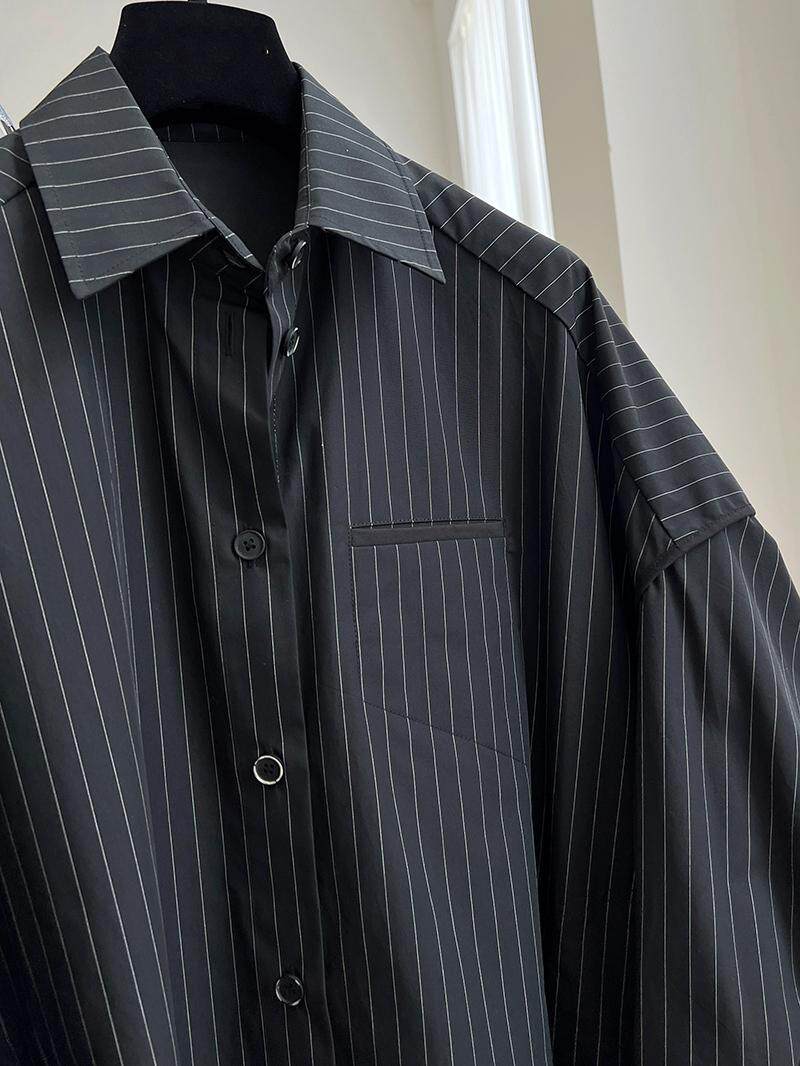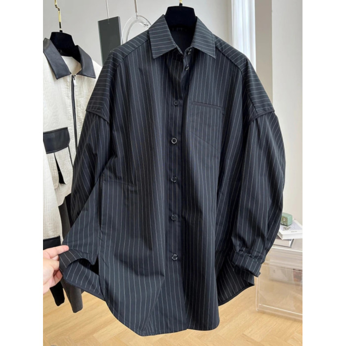 長袖襯衫女2026春秋新款胖妹妹設計感小衆獨特別致條紋上衣高級感
