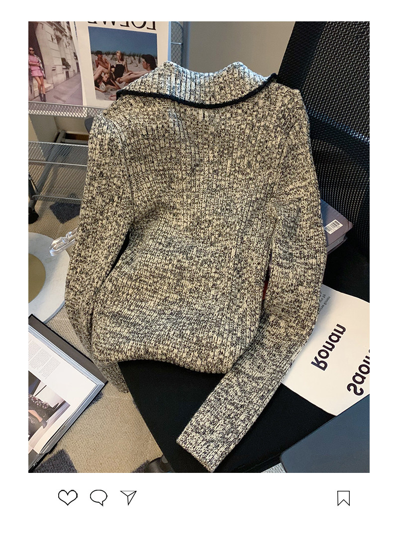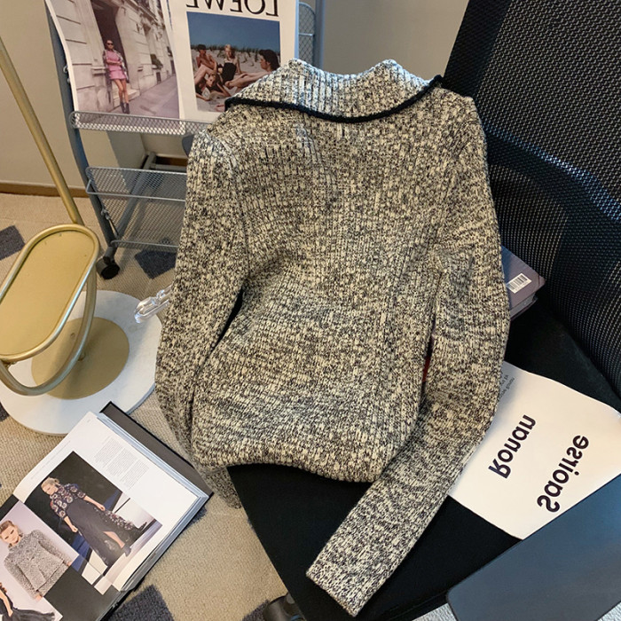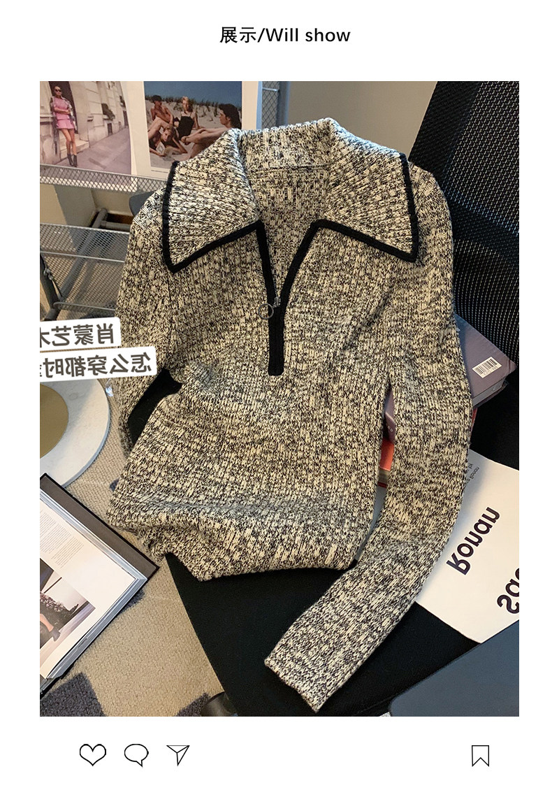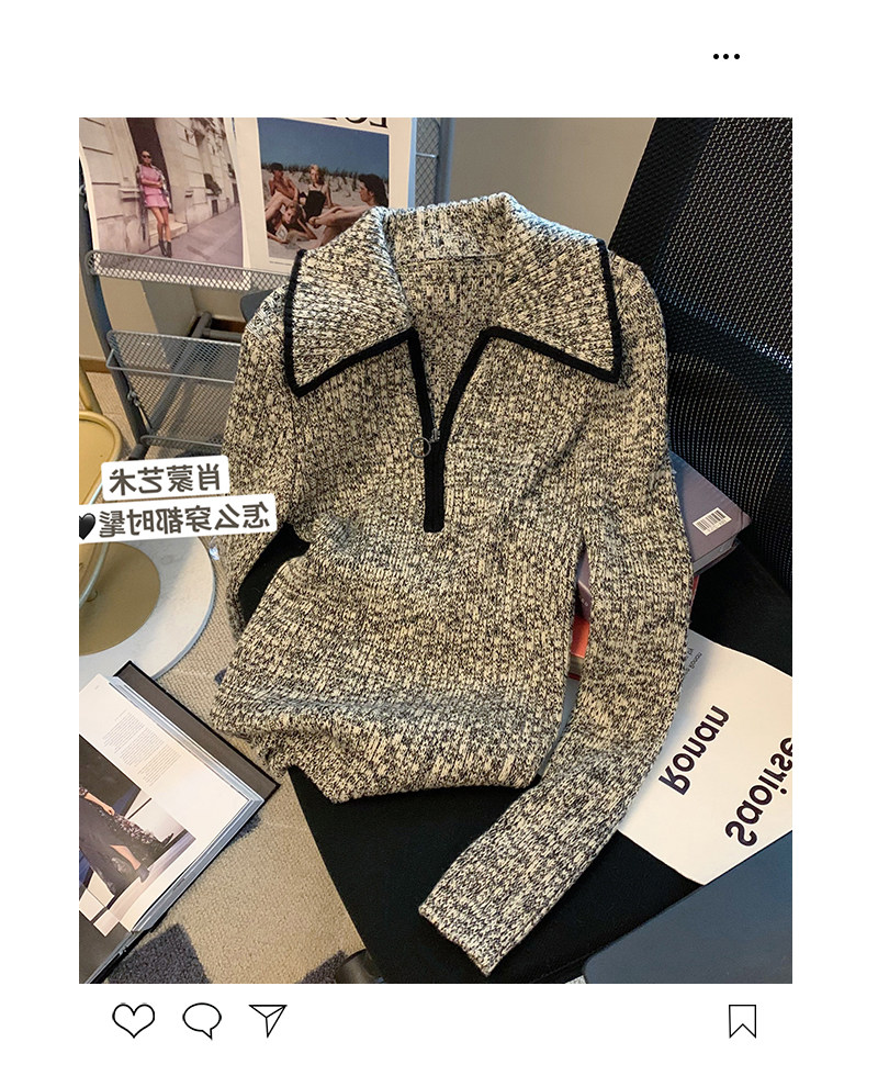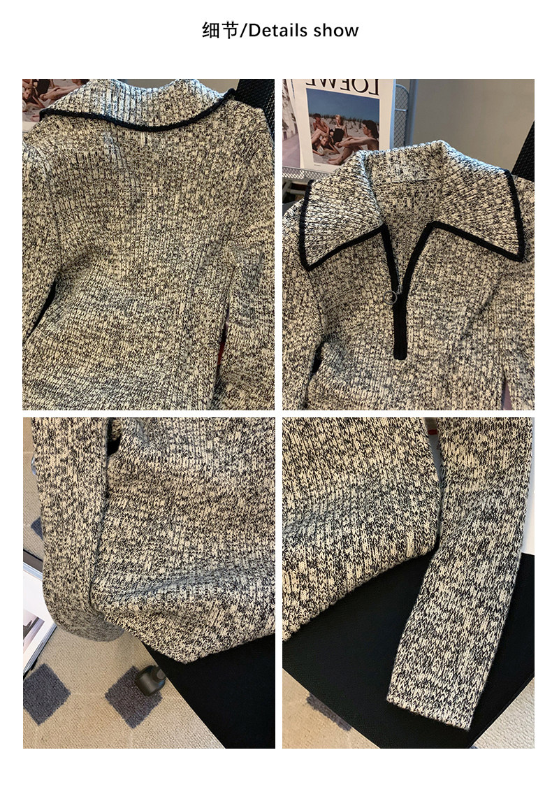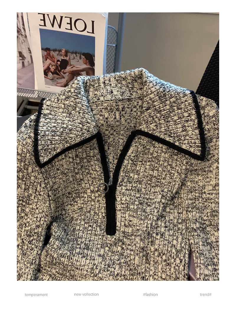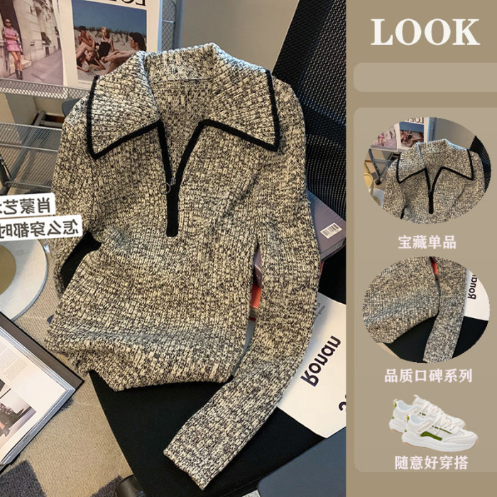 2025廣州十三行爆款女裝拉鍊繙領針織衫女氣質修身顯瘦長袖打底衫