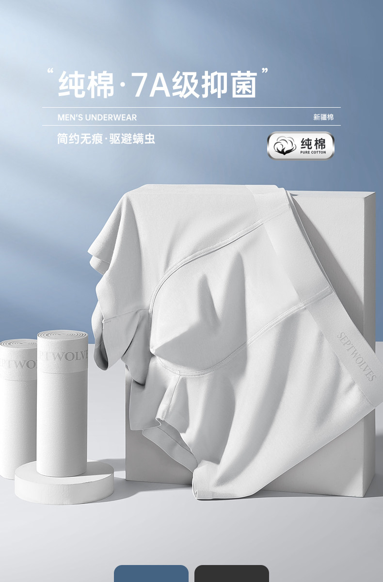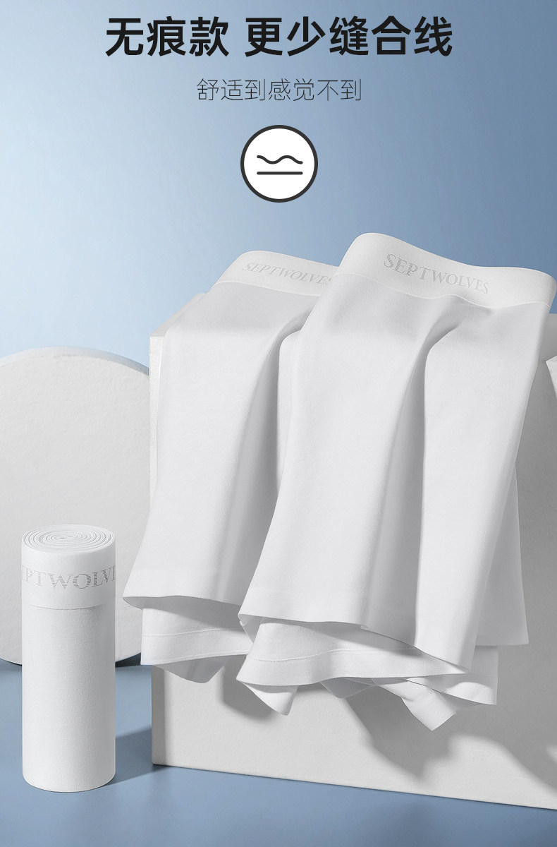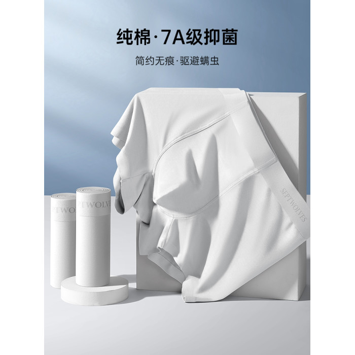 七匹狼男士內褲男生純棉四角褲男式平角褲頭男款全棉白色無痕短褲