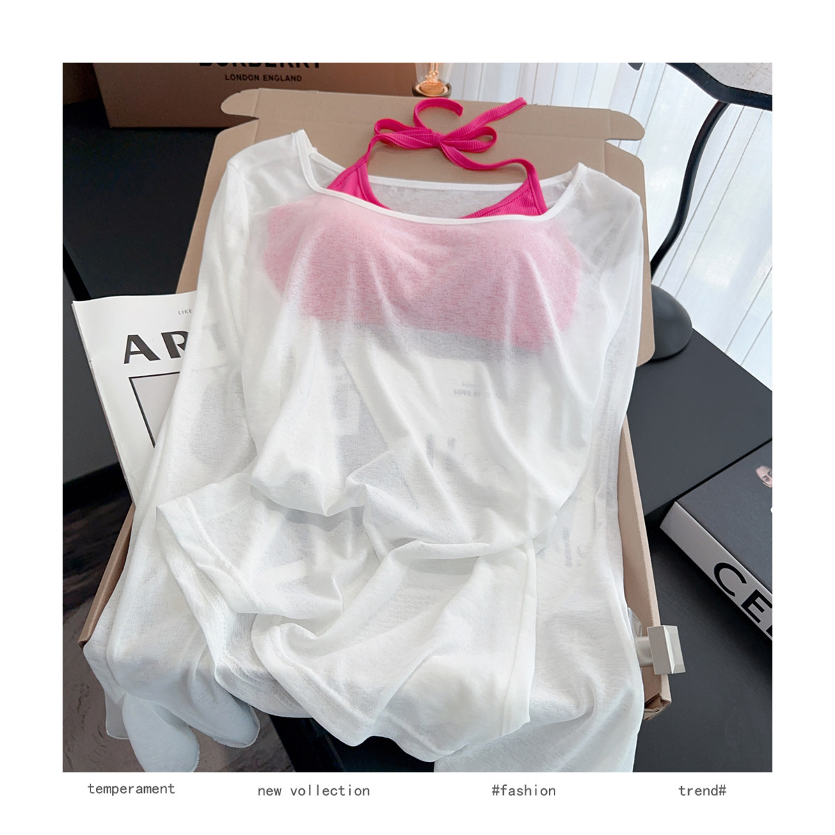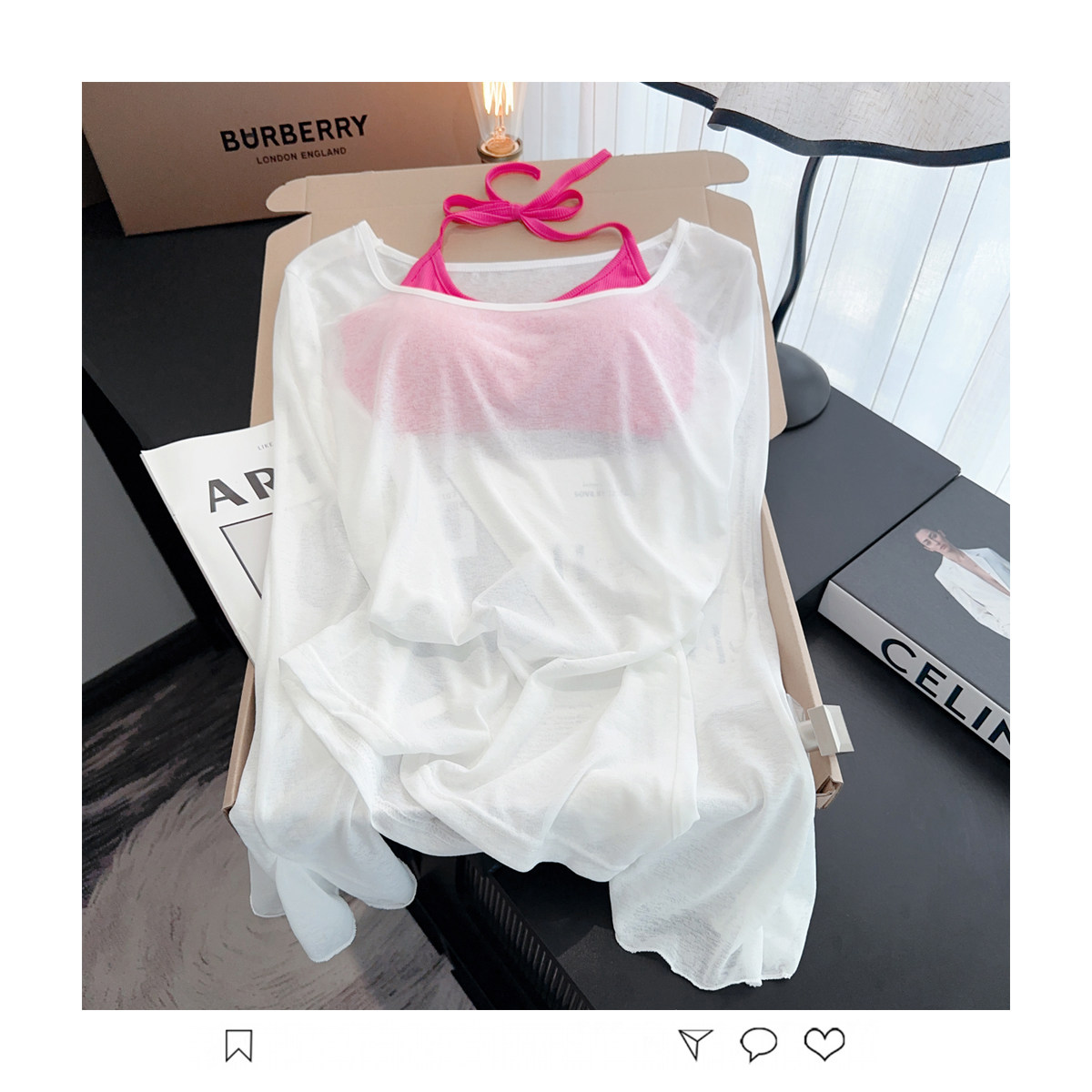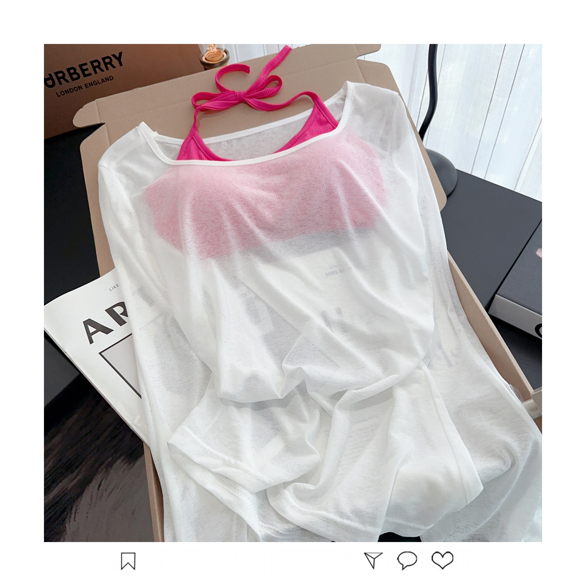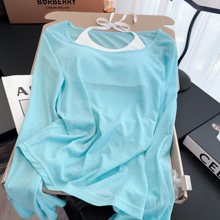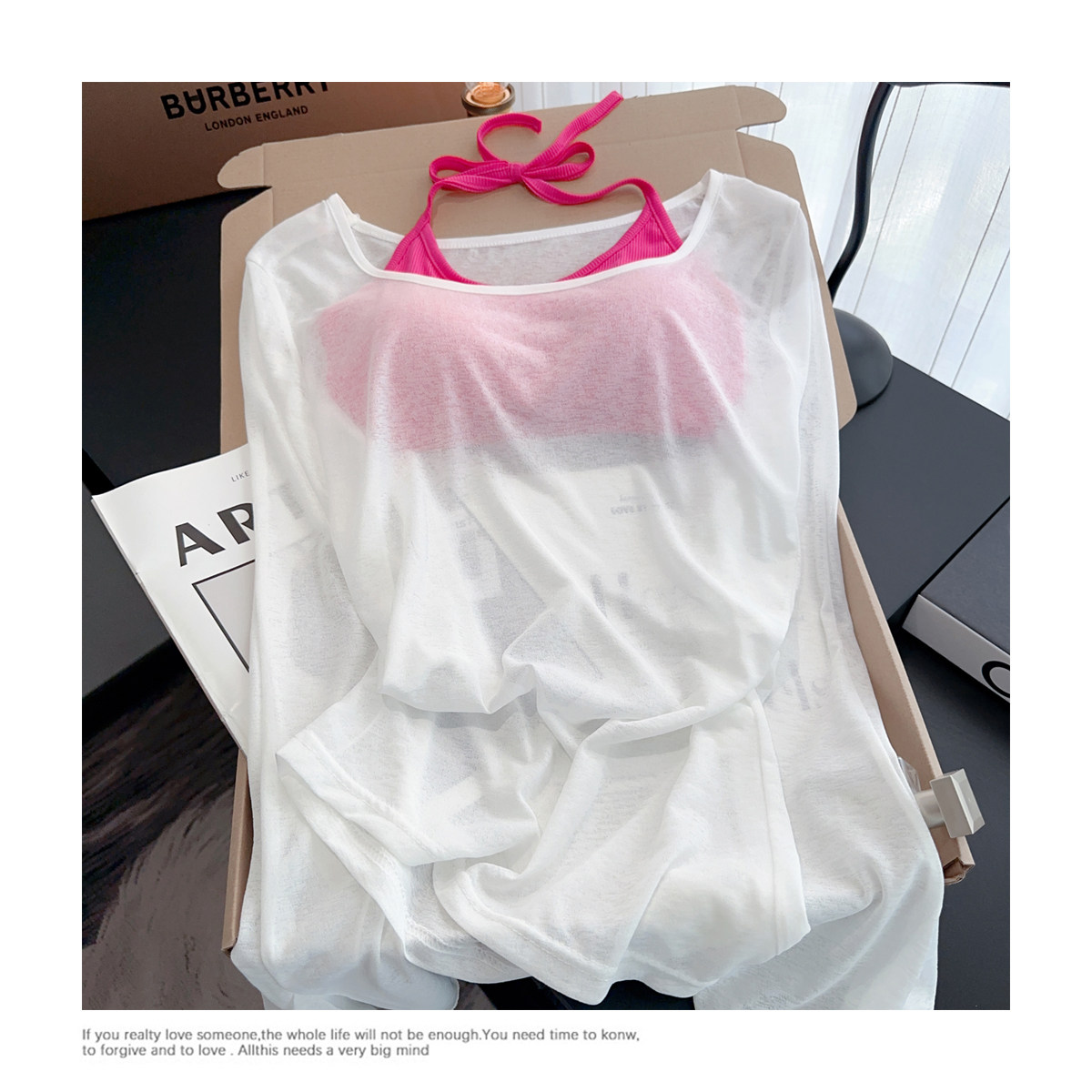 專櫃撤廻剪標掛脖吊帶背心女夏季新款甜美薄款防曬罩衫曡穿兩件套