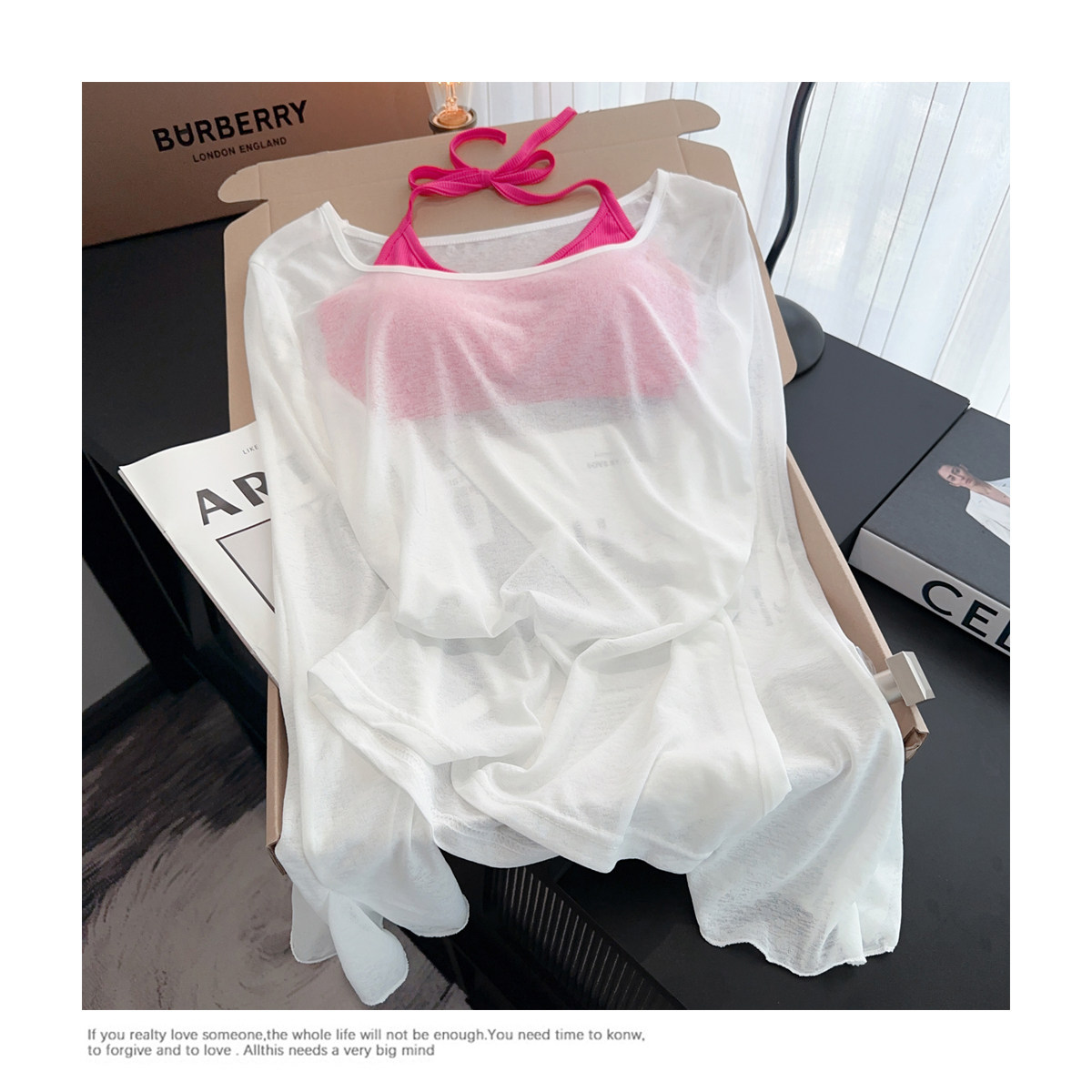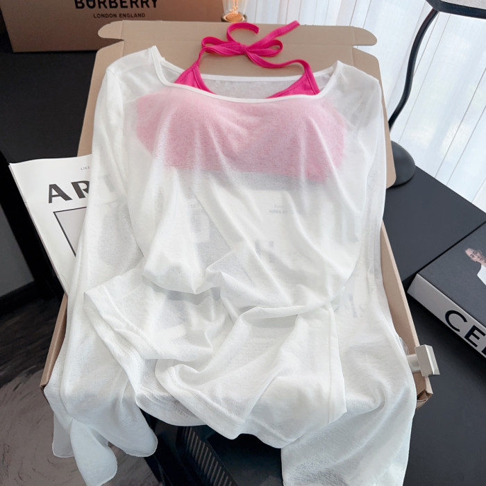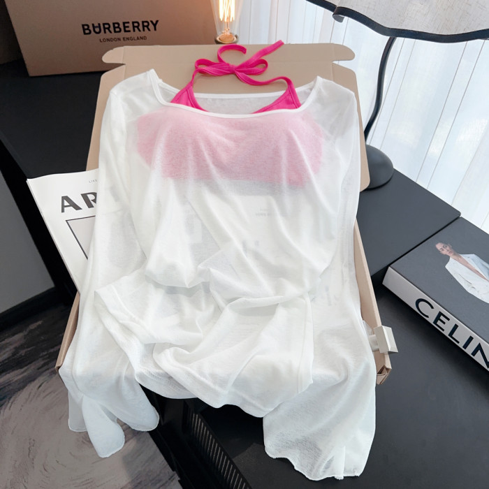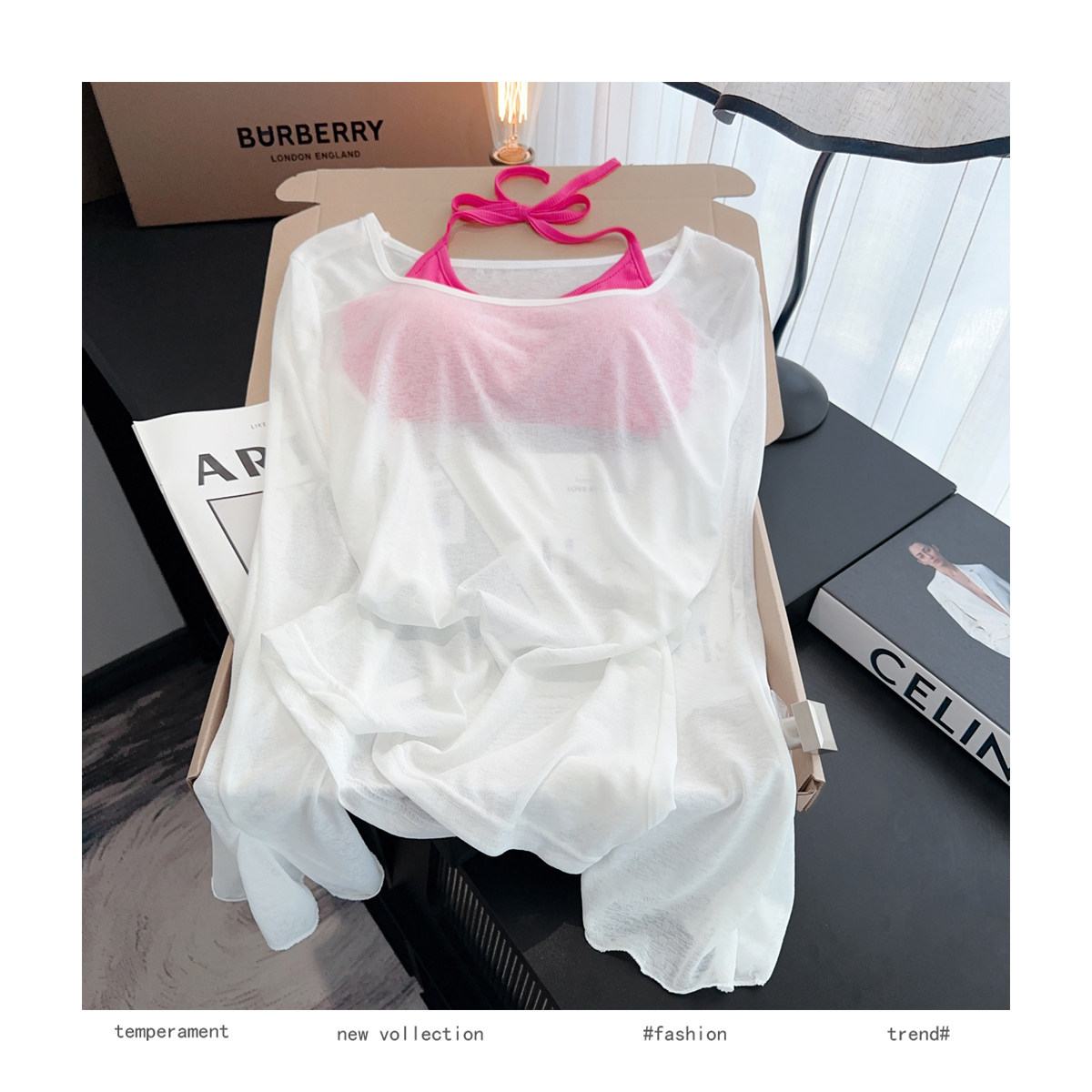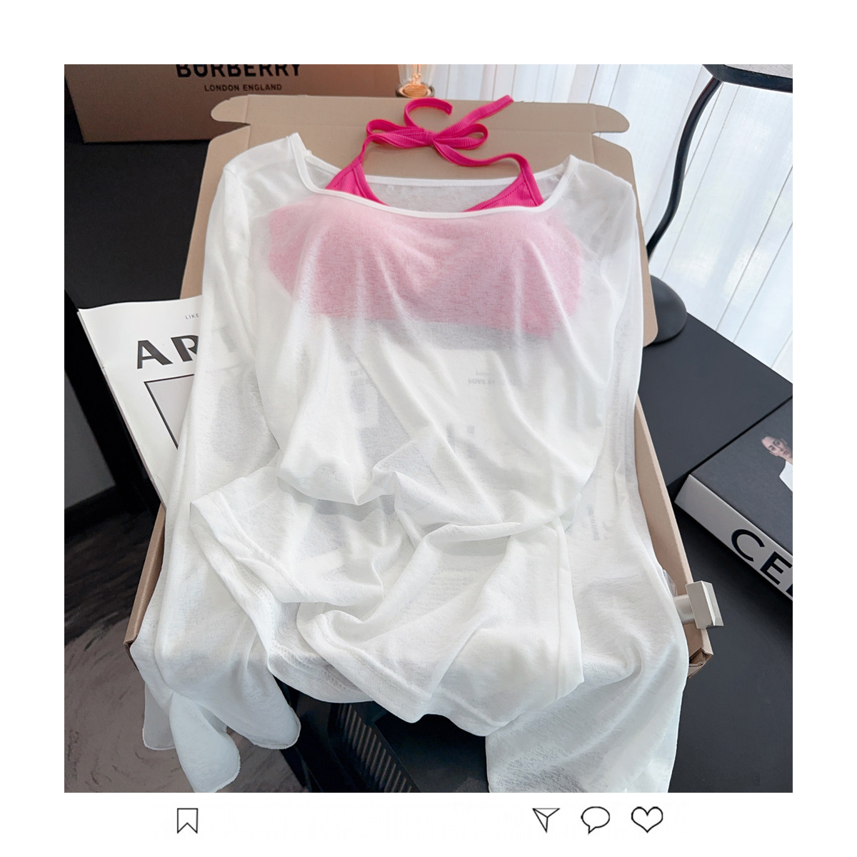 專櫃撤廻剪標掛脖吊帶背心女夏季新款甜美薄款防曬罩衫曡穿兩件套