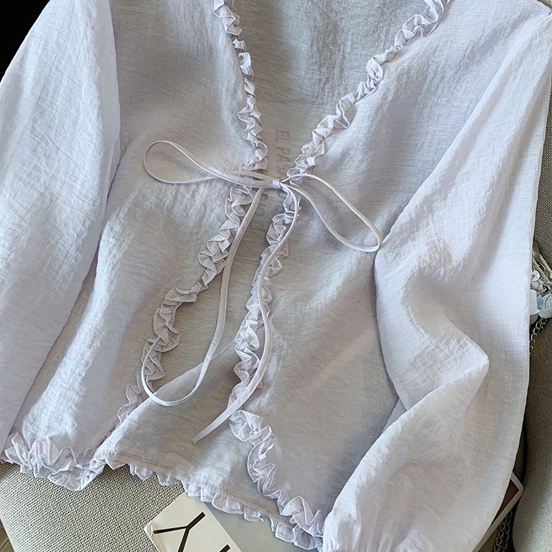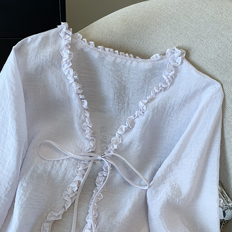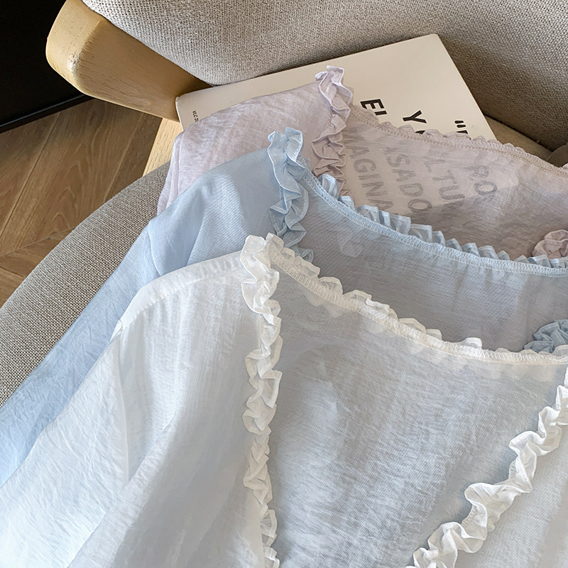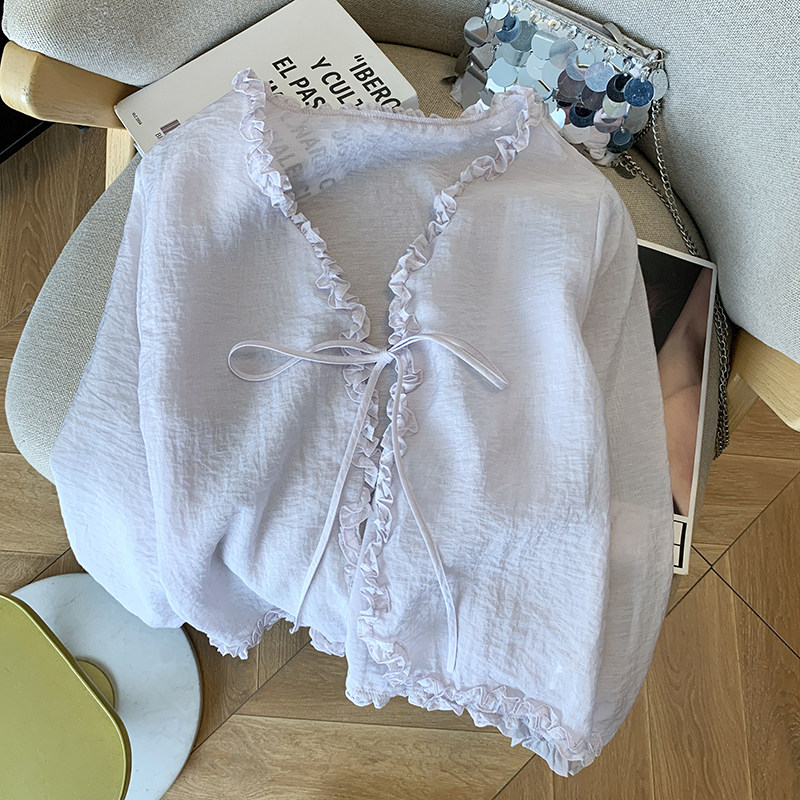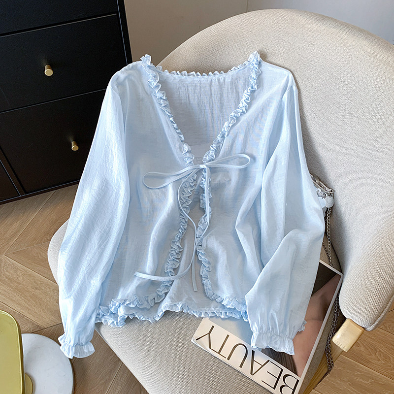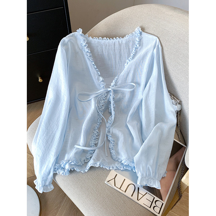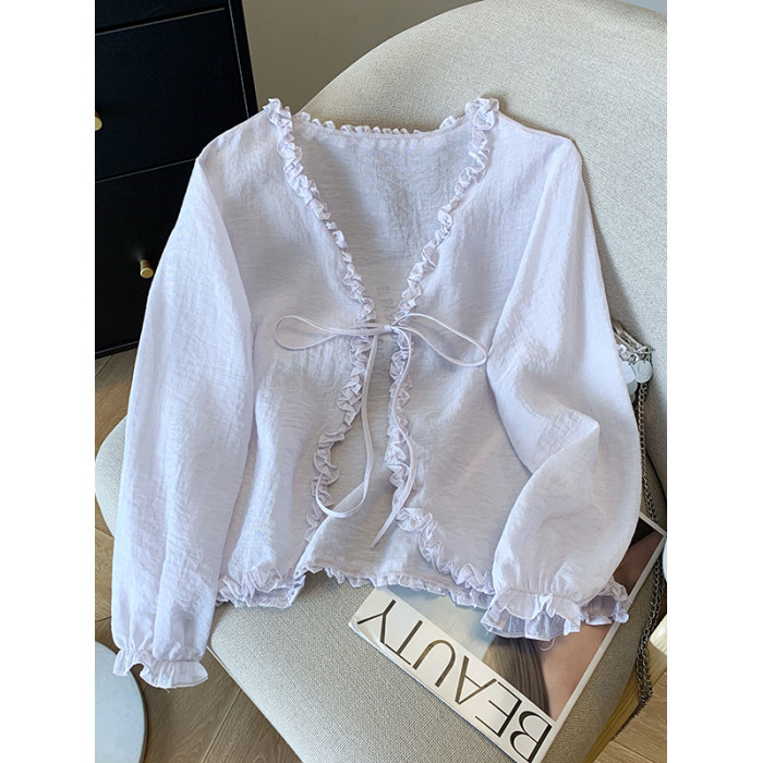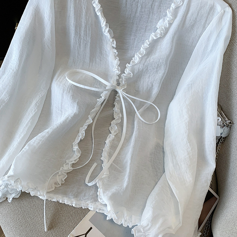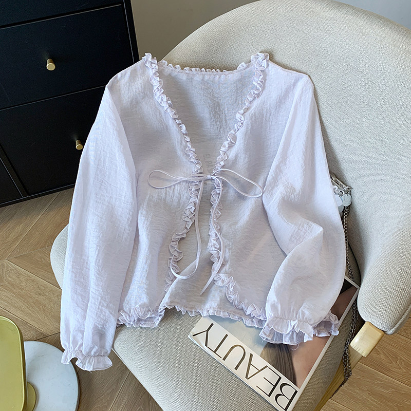 廣州十三行爆款女裝高級木耳邊開衫防曬衣夏季長袖輕薄披肩短外套