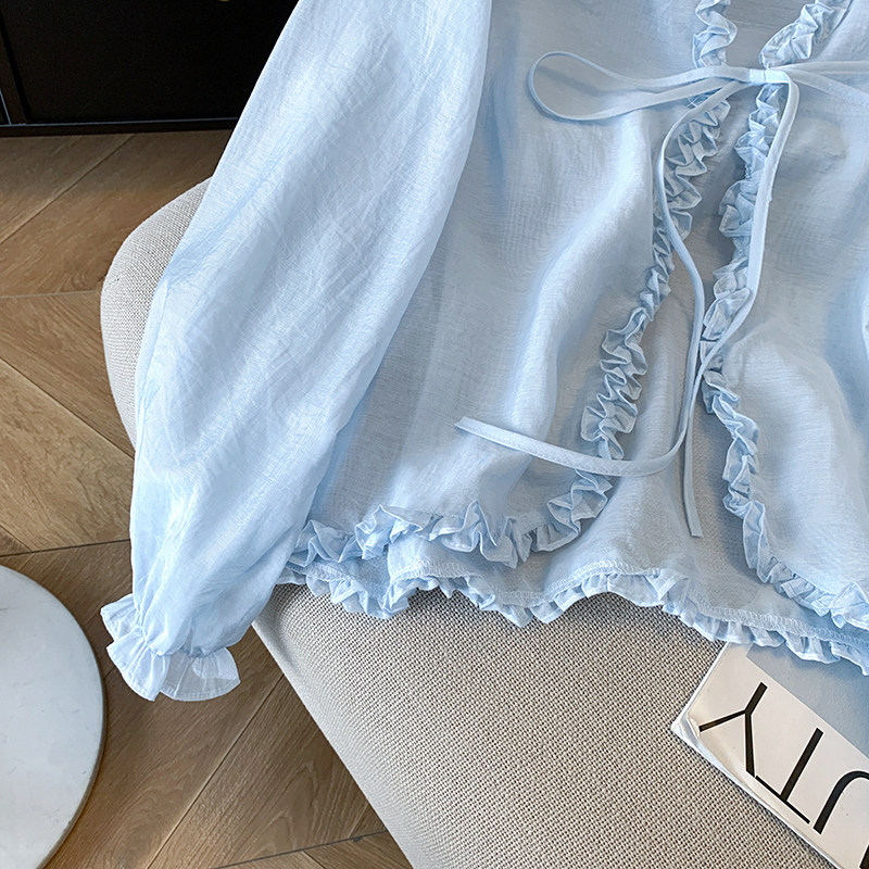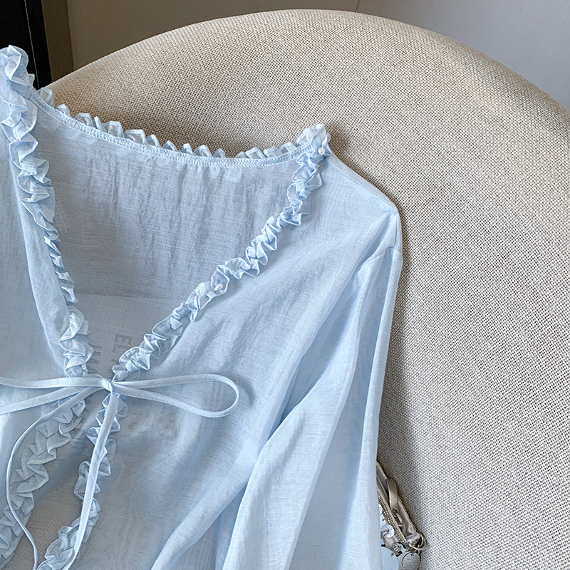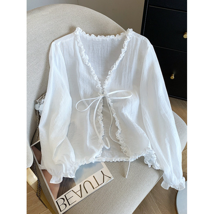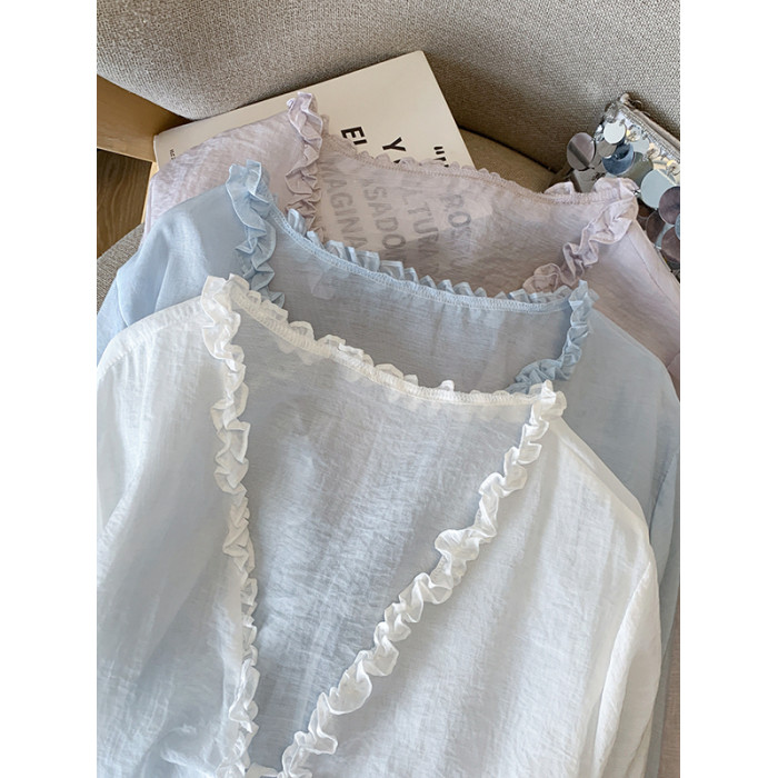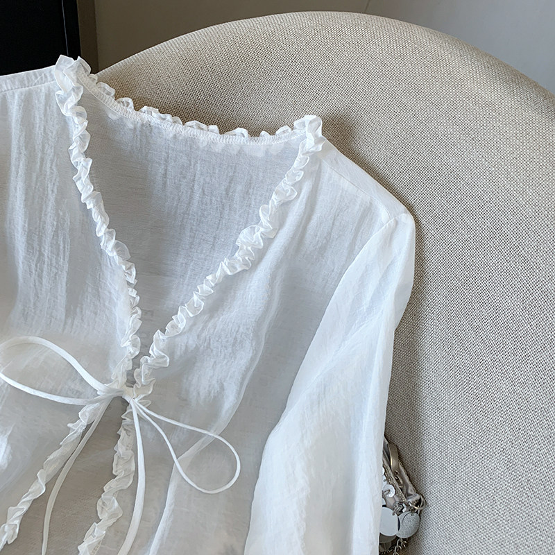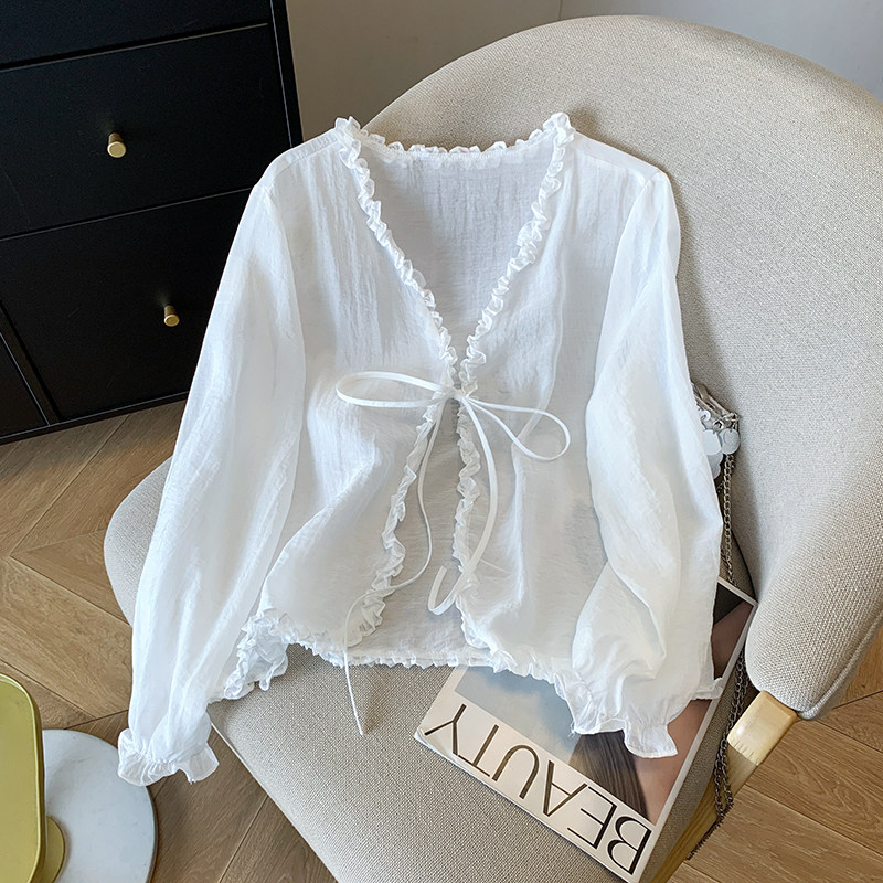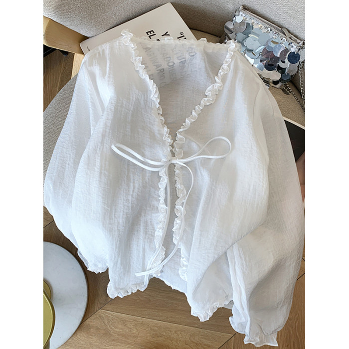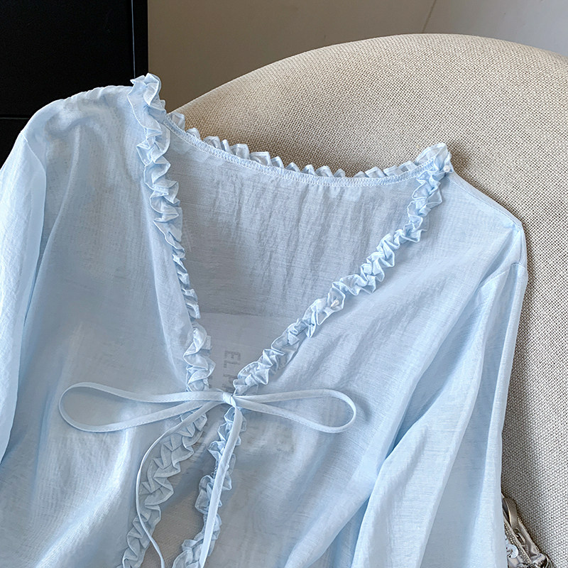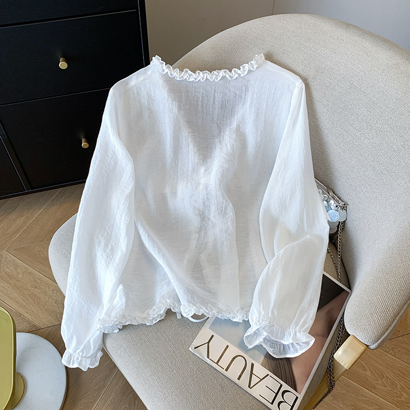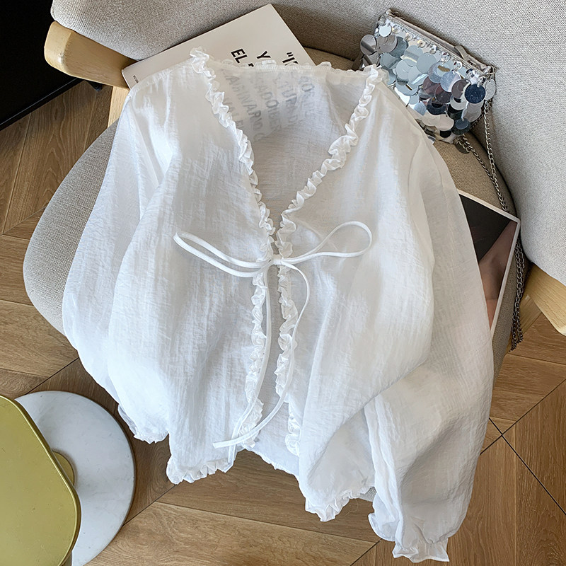 廣州十三行爆款女裝高級木耳邊開衫防曬衣夏季長袖輕薄披肩短外套