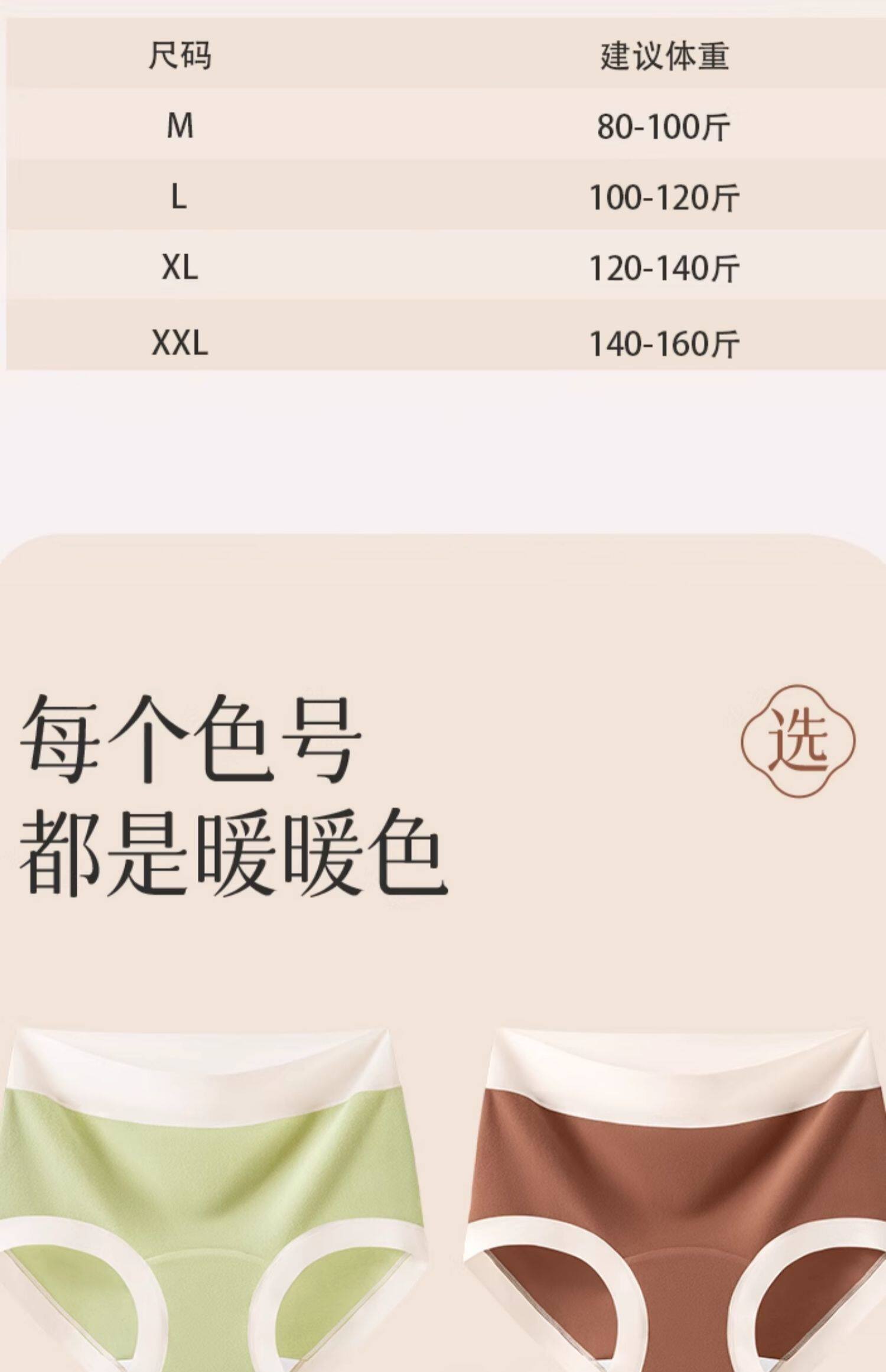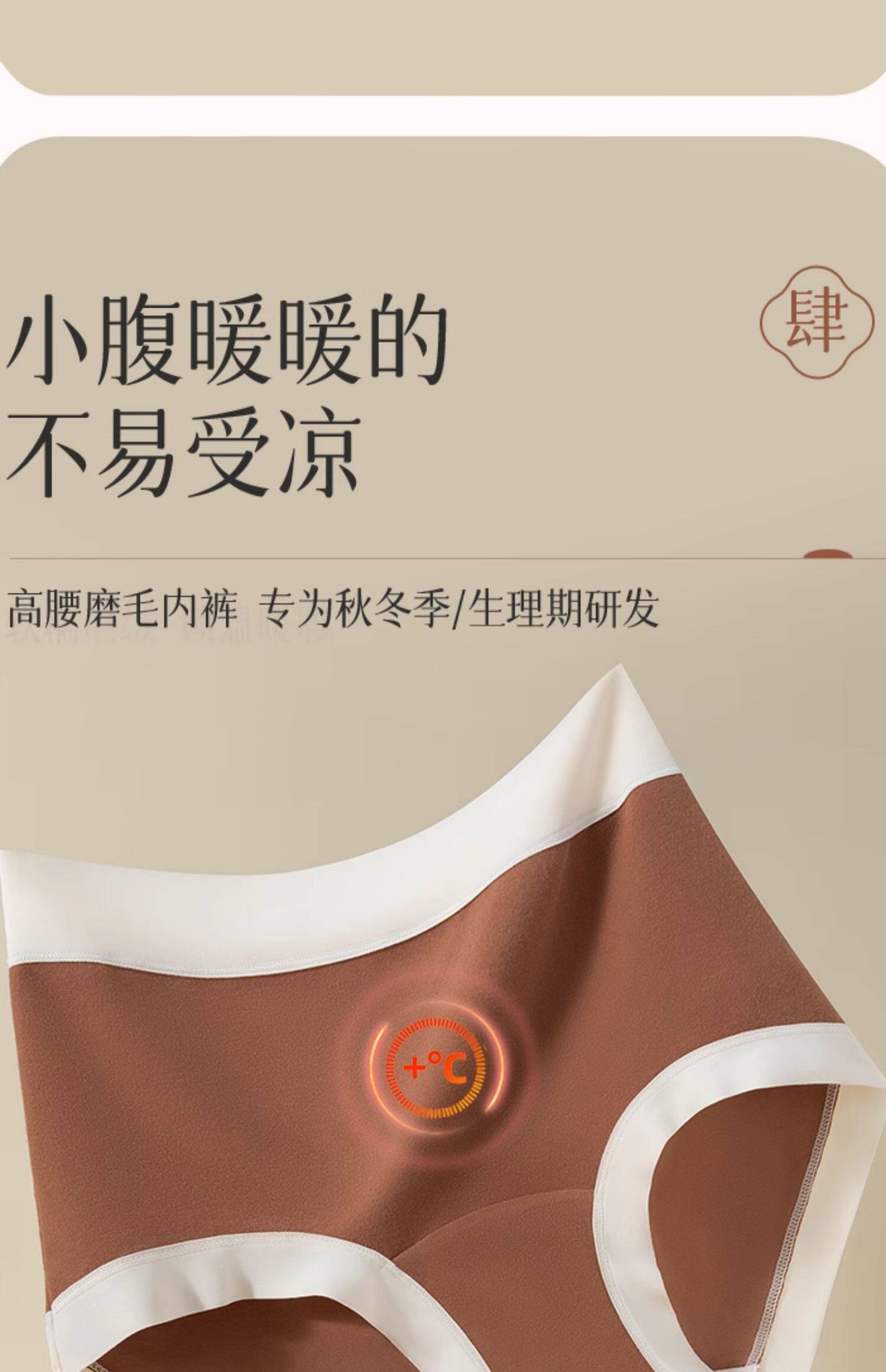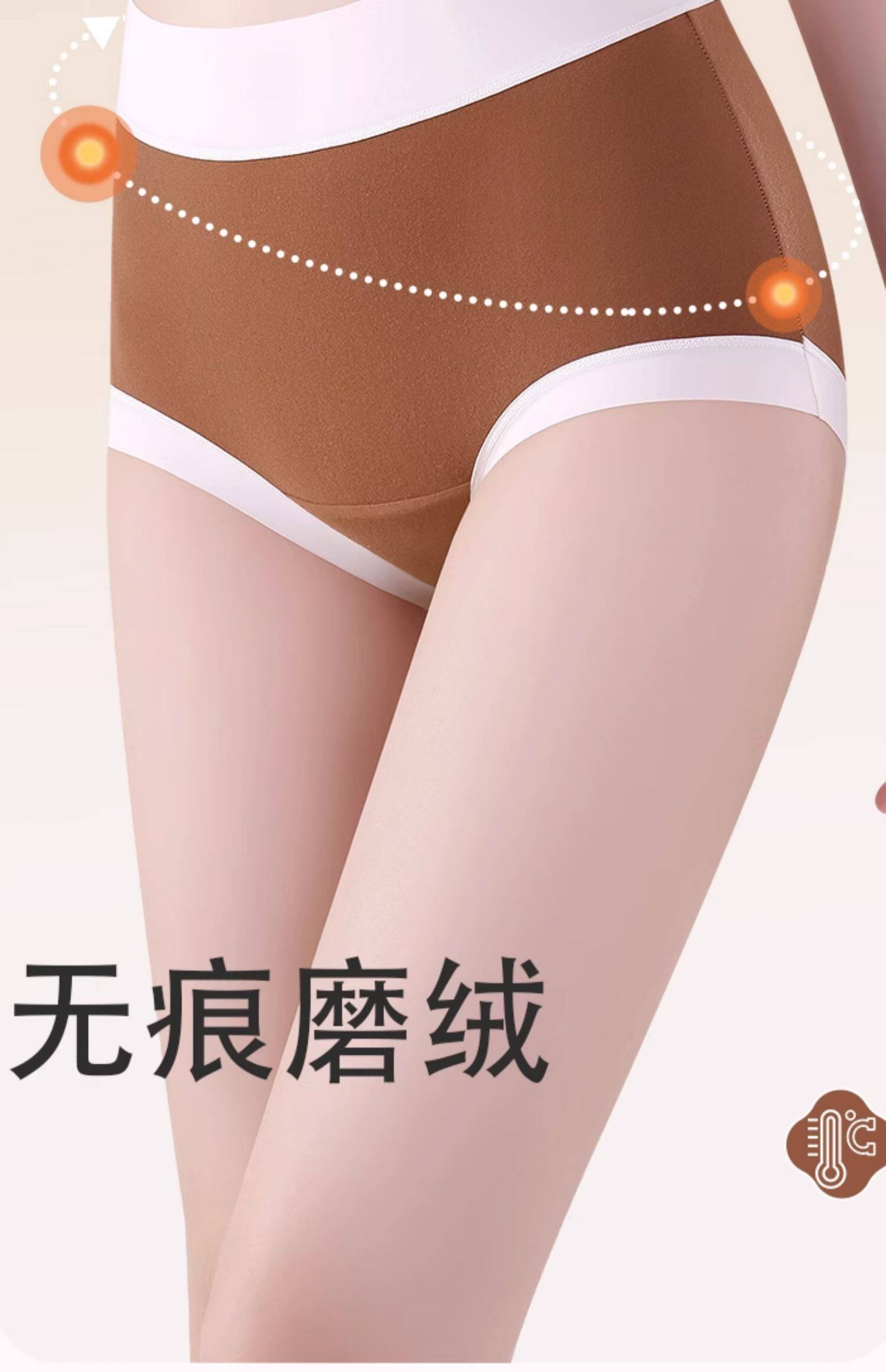 德絨發熱保暖內褲女士純棉抗菌加長襠高腰加絨冬季磨毛暖宮三角褲