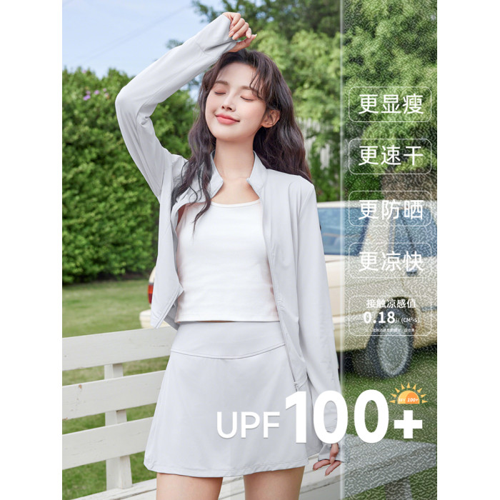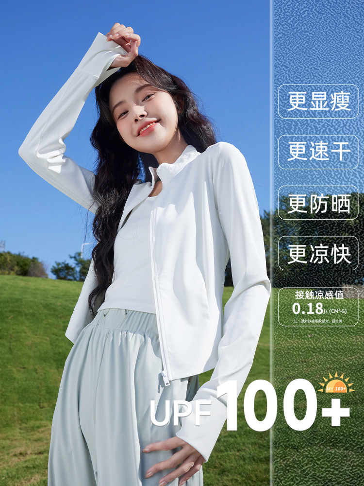 班尼路白色立領收腰防曬衣女款2026新款夏季UPF100+冰絲速乾外套N