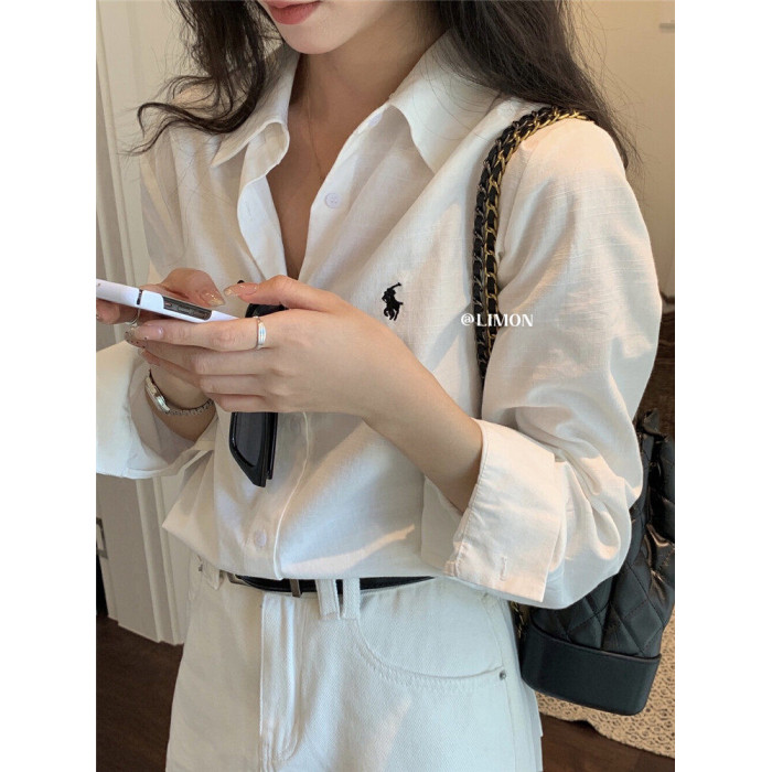 純棉麻防曬襯衫女上衣夏季天輕薄款外套亞麻開衫外搭寬鬆長袖襯衣