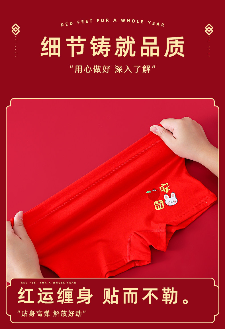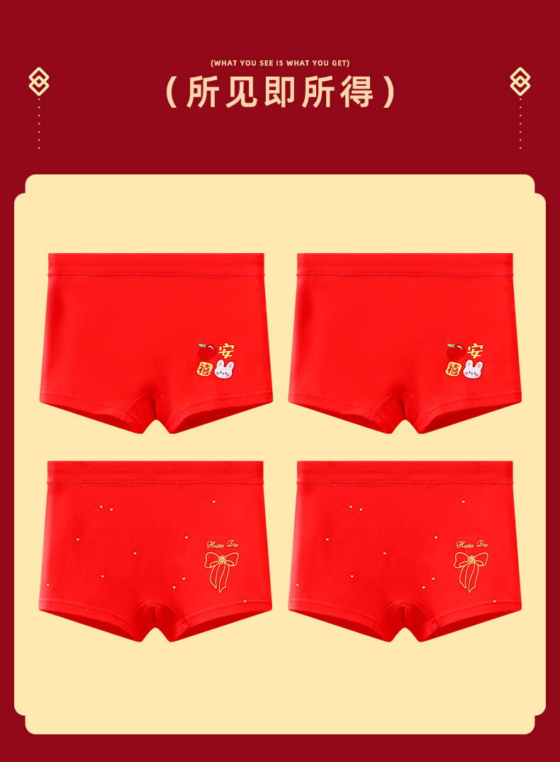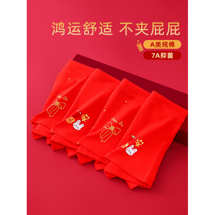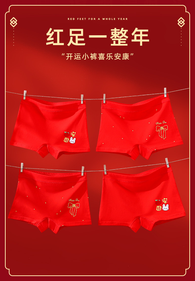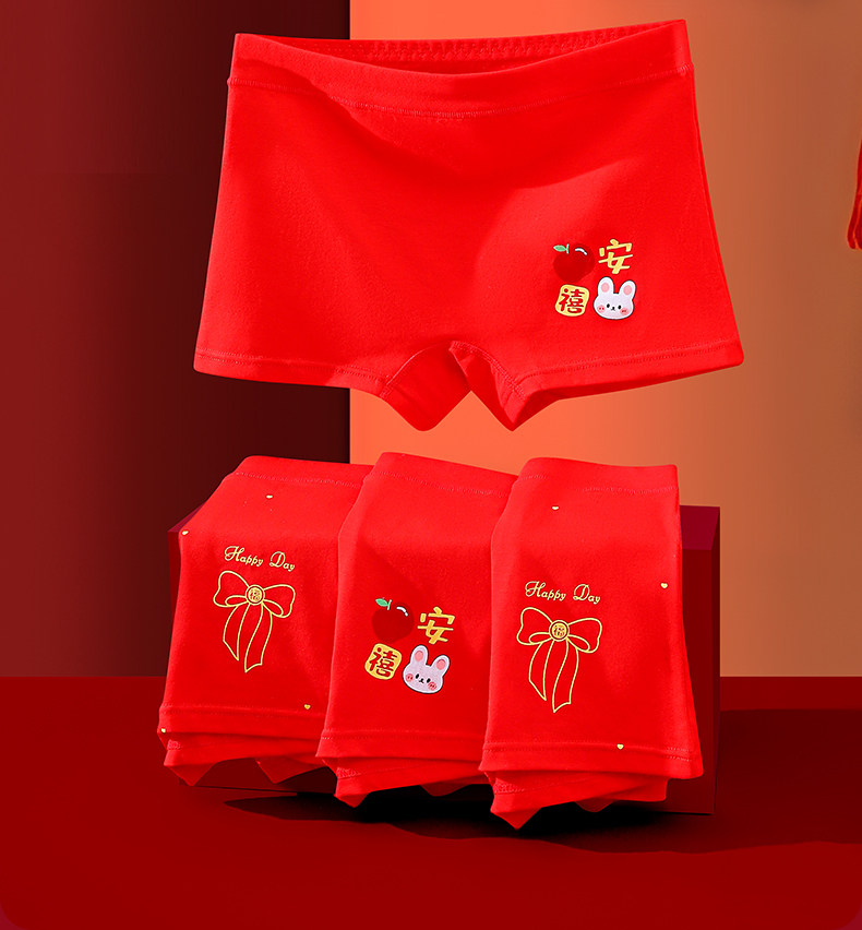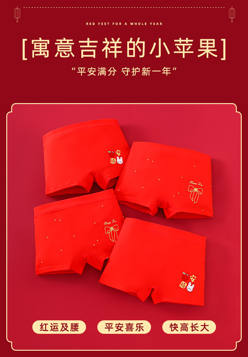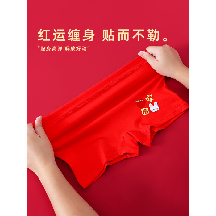 馬年女童本命年大紅色內褲兒童純棉平角中大童屬馬四角短褲12嵗13