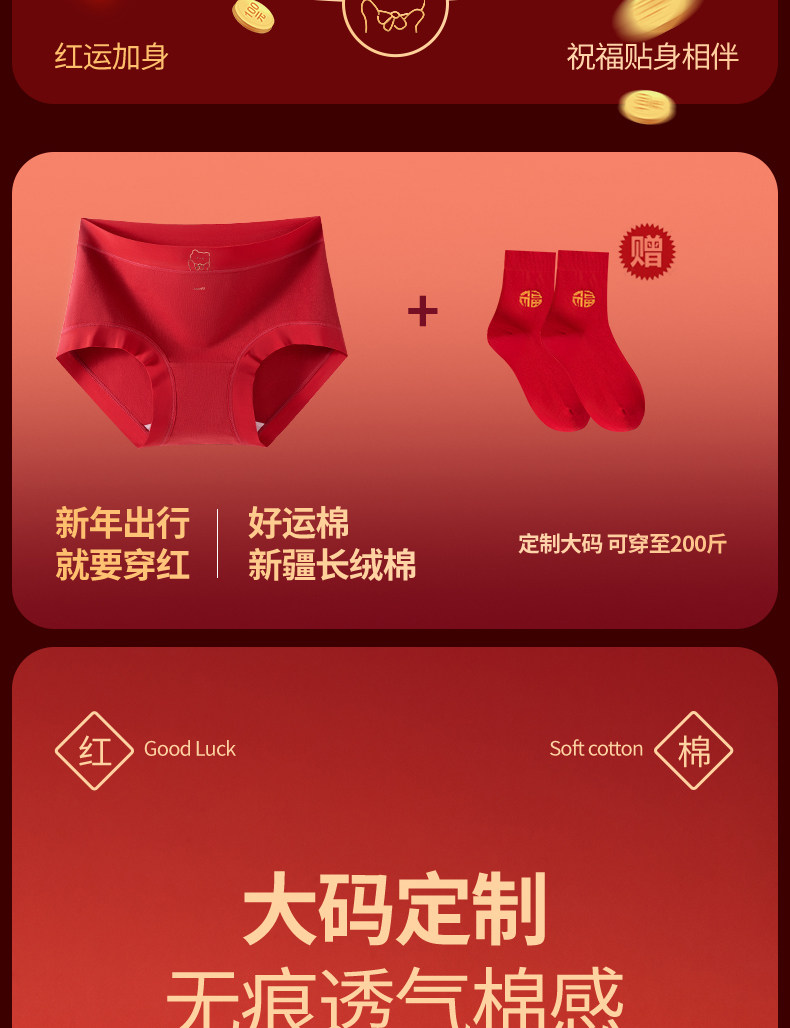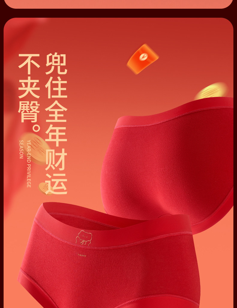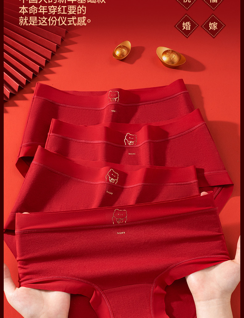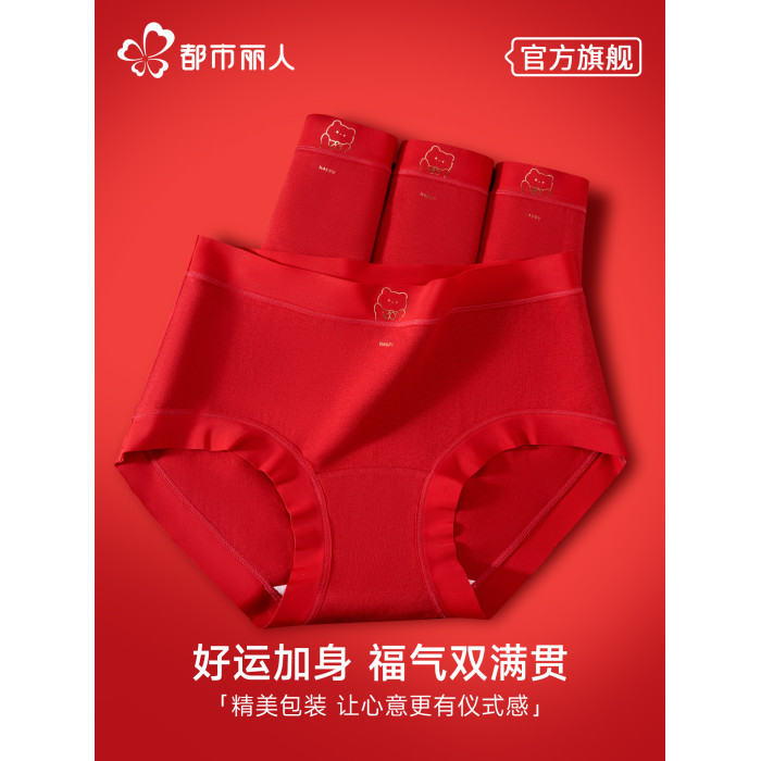 都市麗人純棉內褲女大碼純棉抗菌2026馬年本命年大紅色三角褲結婚