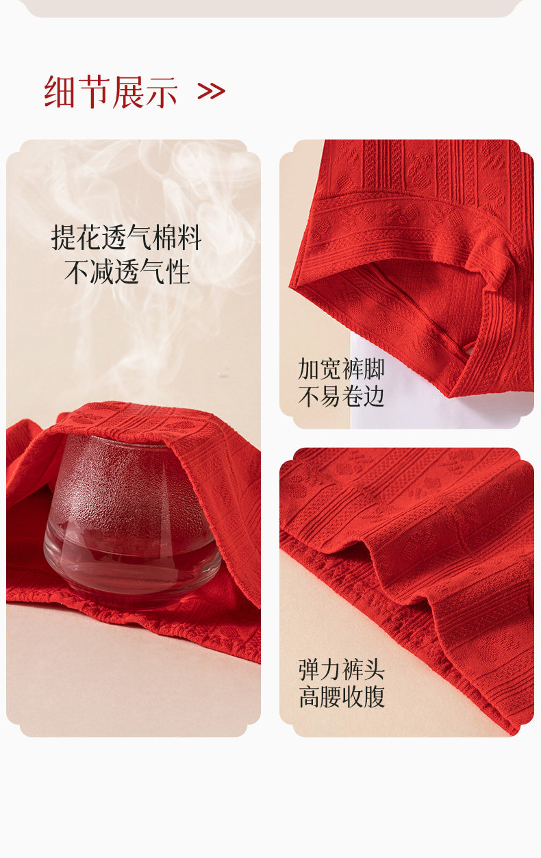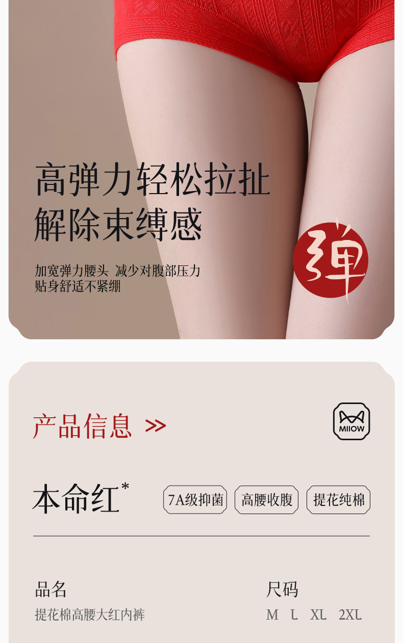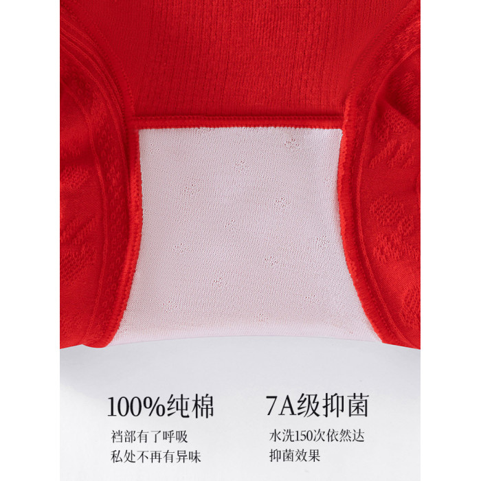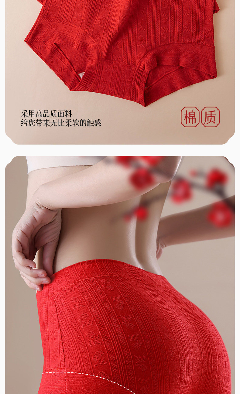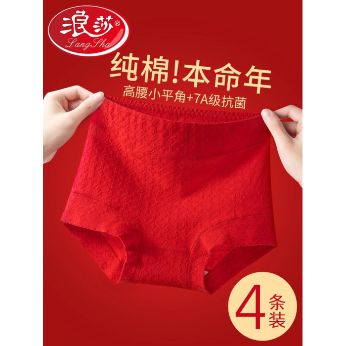 浪莎紅色內褲女士本命年高腰收腹平角7a級抗菌純棉全棉襠四角褲頭