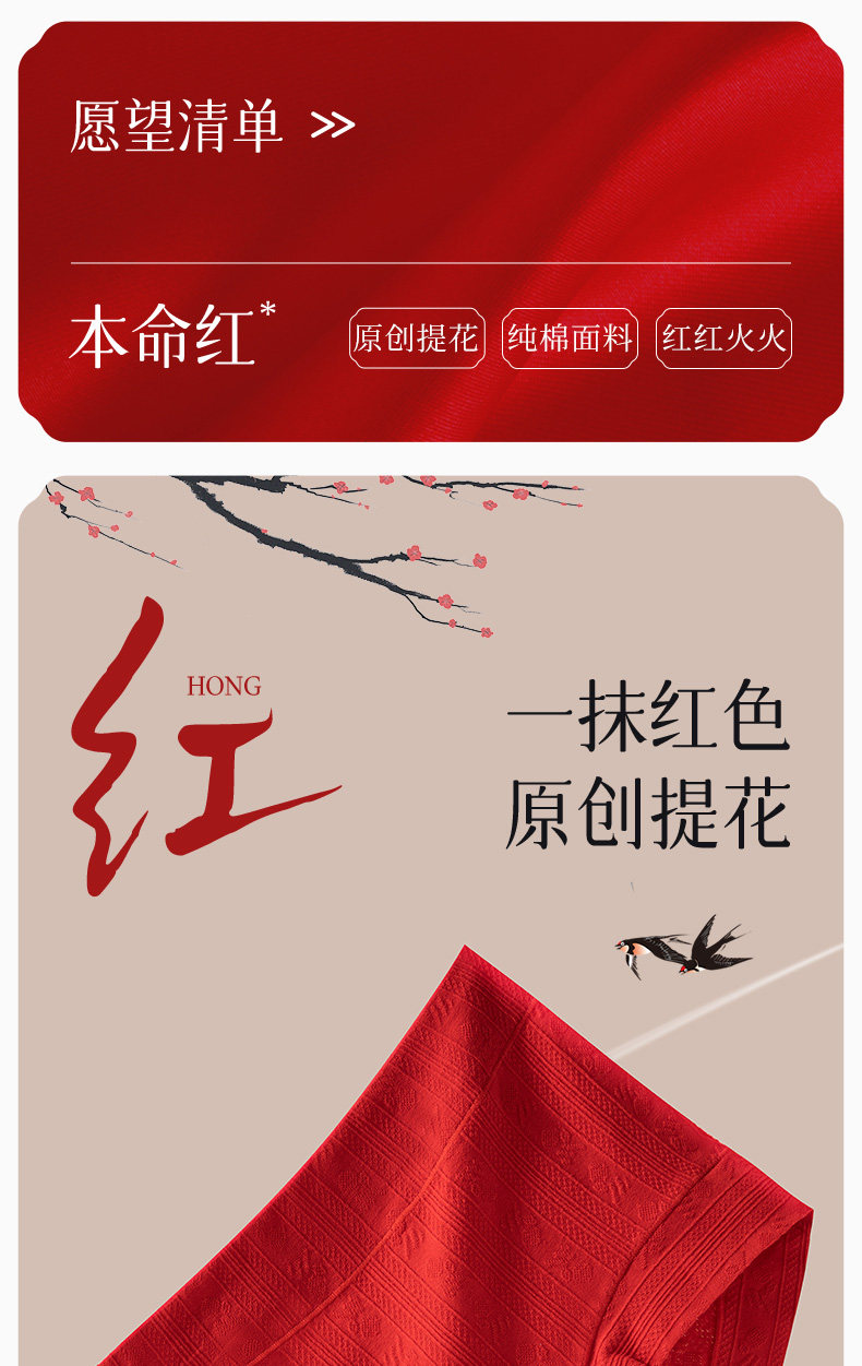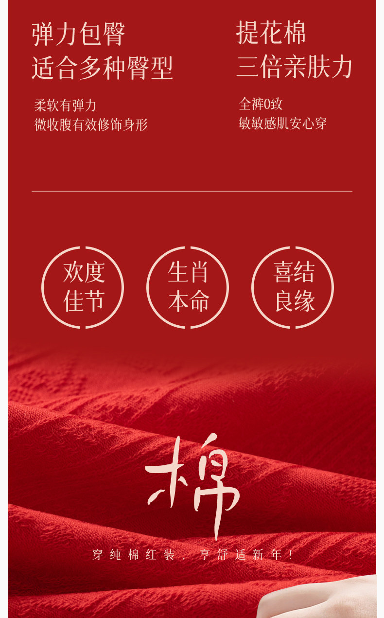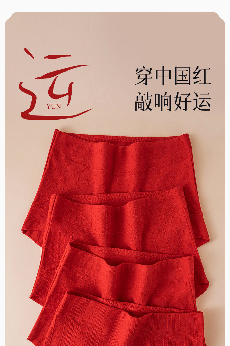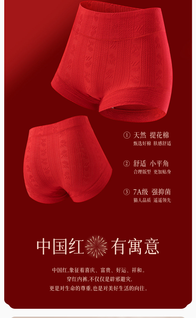 浪莎紅色內褲女士本命年高腰收腹平角7a級抗菌純棉全棉襠四角褲頭