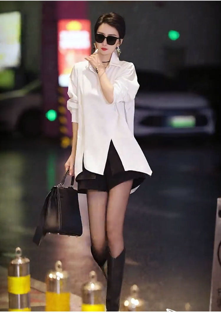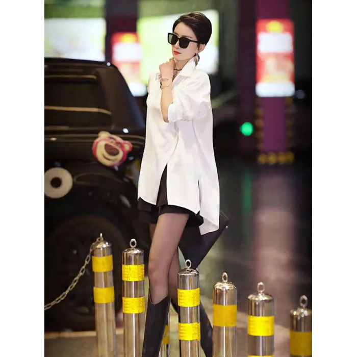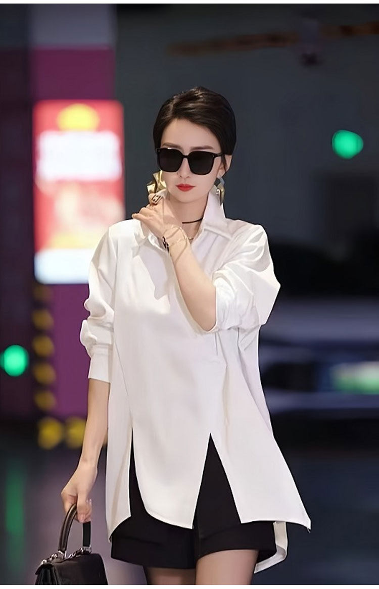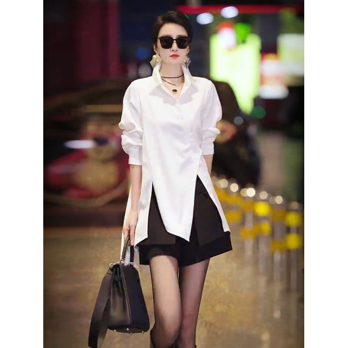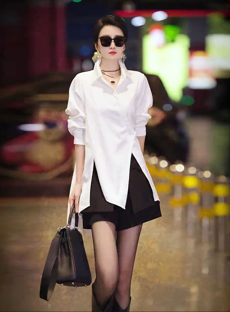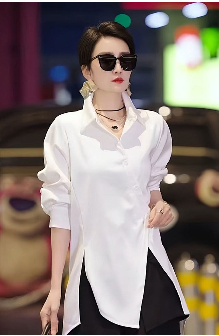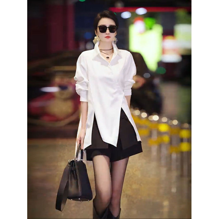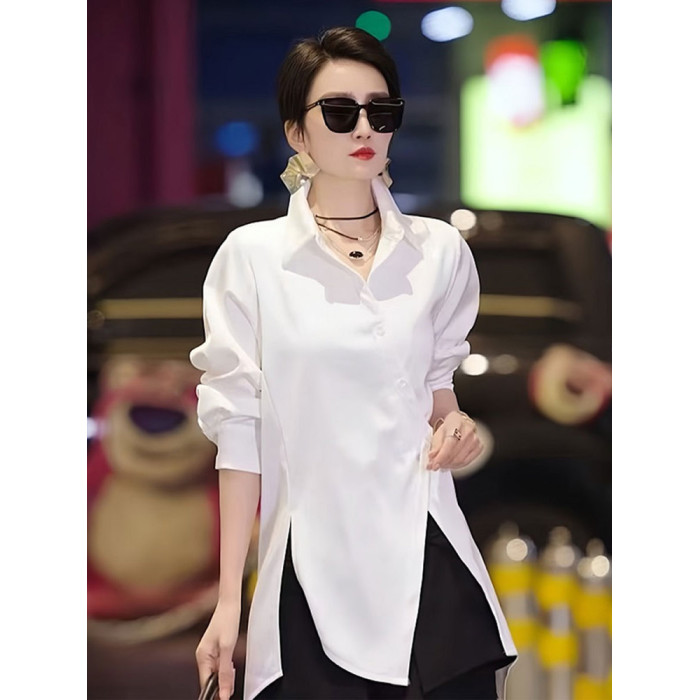 高級不規則開叉斜釦洋氣別致襯衫2025春季新款白色時尚氣質女上衣