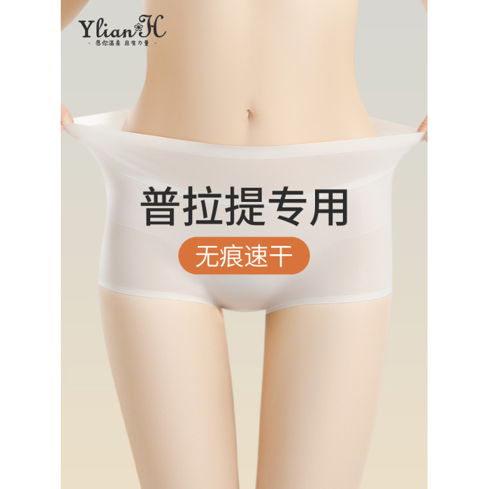 普拉提專用無痕內褲女冰絲夏超薄中腰速乾抑菌一片式平角褲四角褲