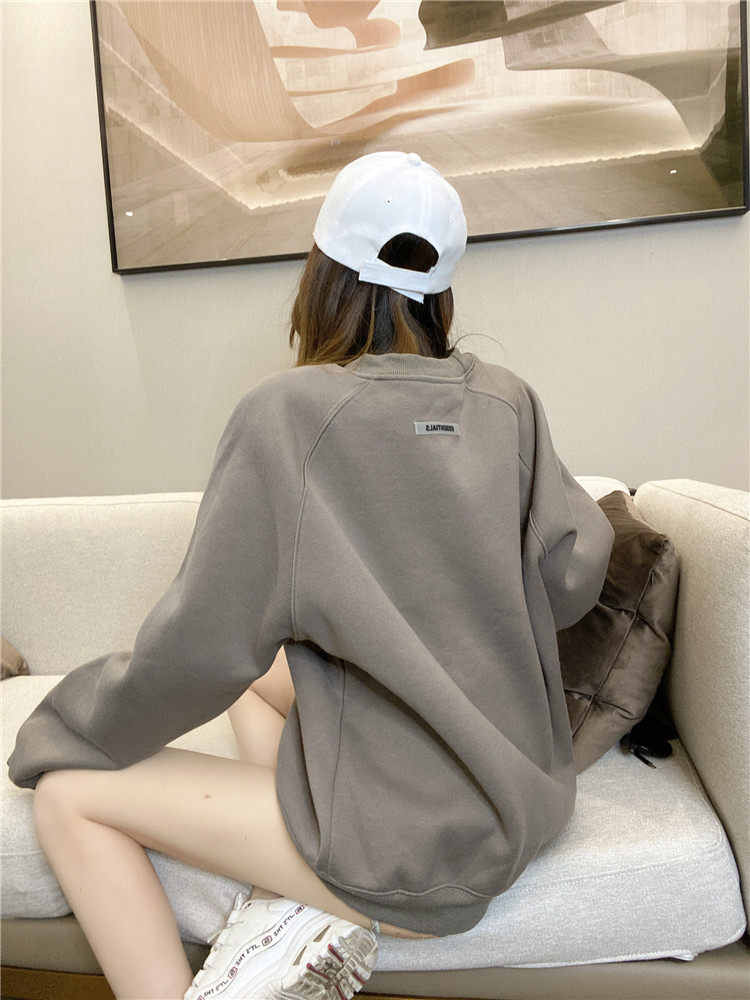 秋冬加絨加厚潮牌灰色衛衣女寬鬆遮屁股上衣寬鬆中長款復古慵懶風