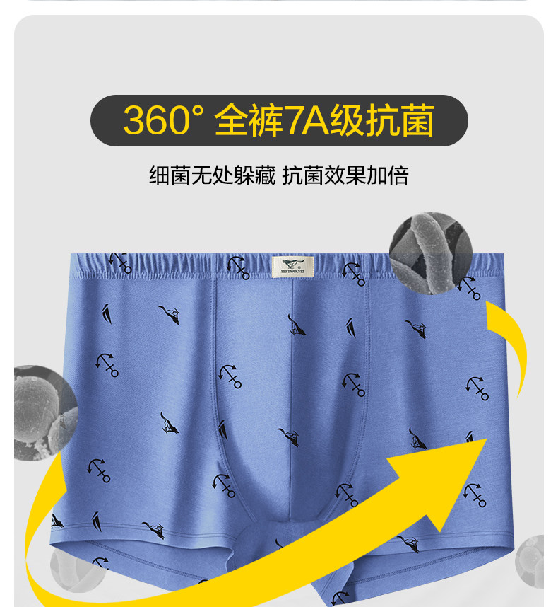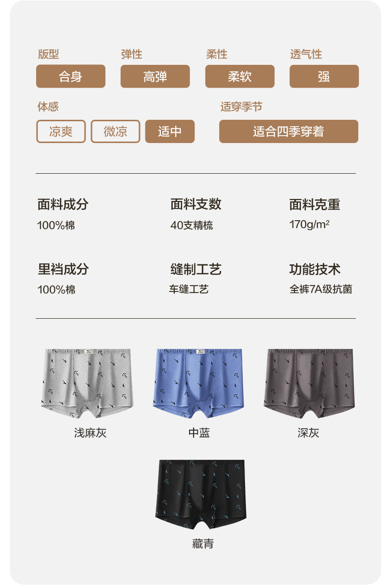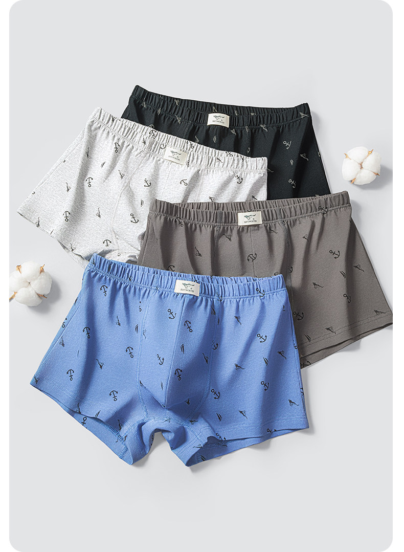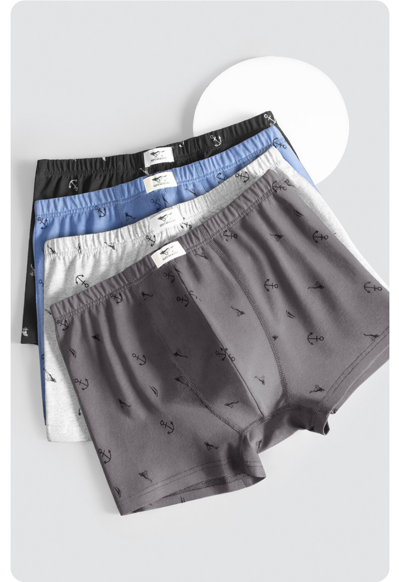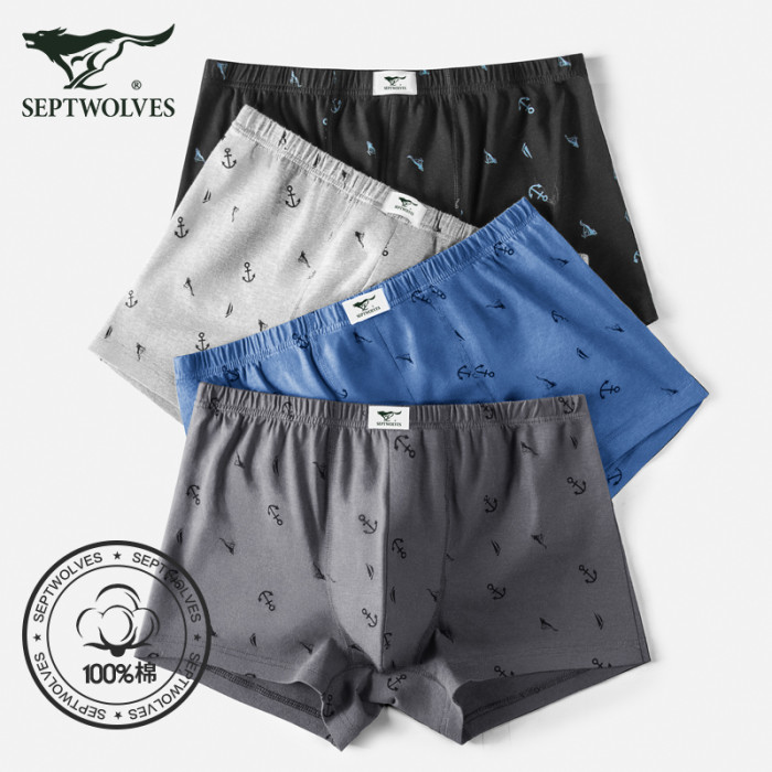 七匹狼男士內褲男平角褲純棉男生100全棉透氣底褲四角褲短褲頭男