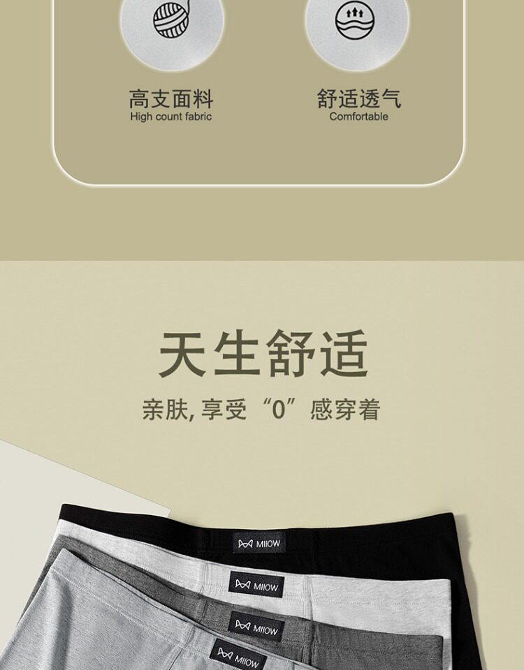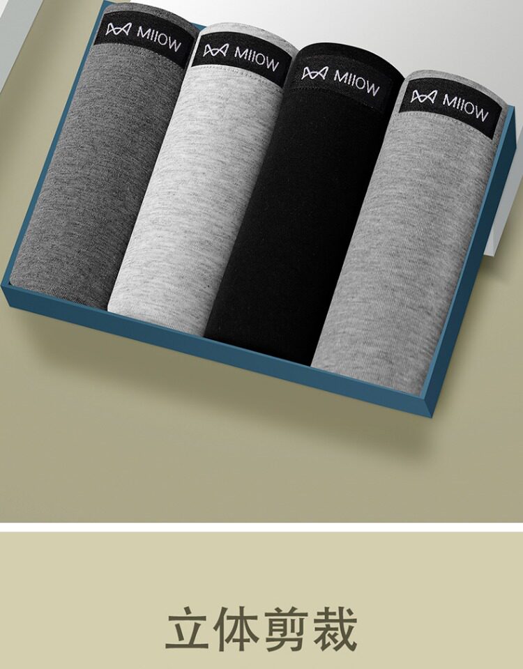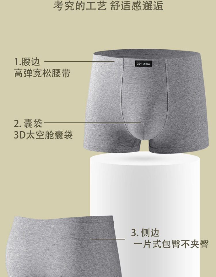 貓人男士內褲純棉抑菌四角褲男款爸爸中年大碼平角褲中腰短褲衩頭