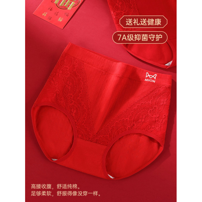貓人媽媽內褲女士純棉2025新款本命年紅色蛇年高腰收腹大碼三角褲