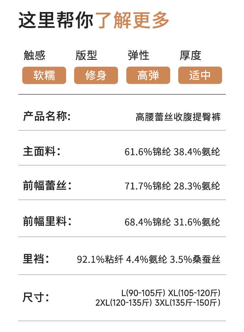 | 襠部材質成分 | 粘膠纖維(粘纖)92.1% 聚氨酯彈性纖維(氨綸)4.4% 桑蠶絲3.5% |
