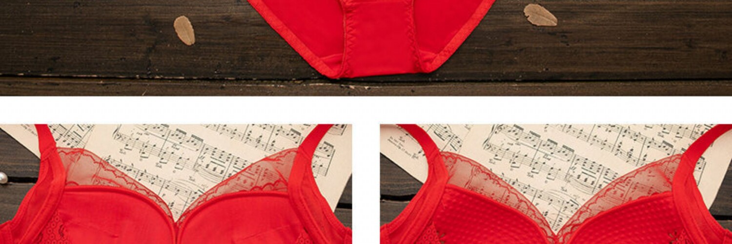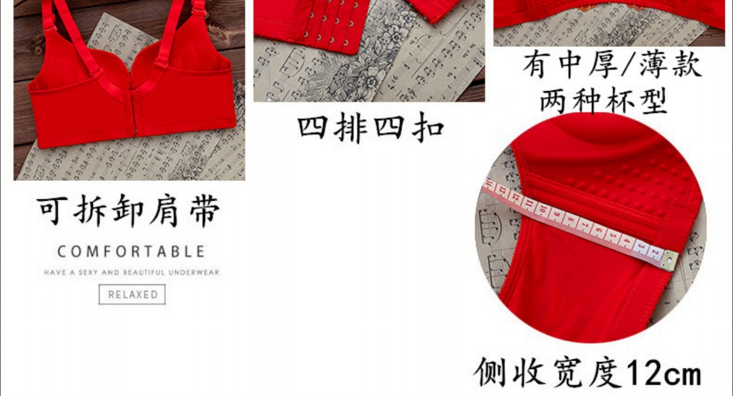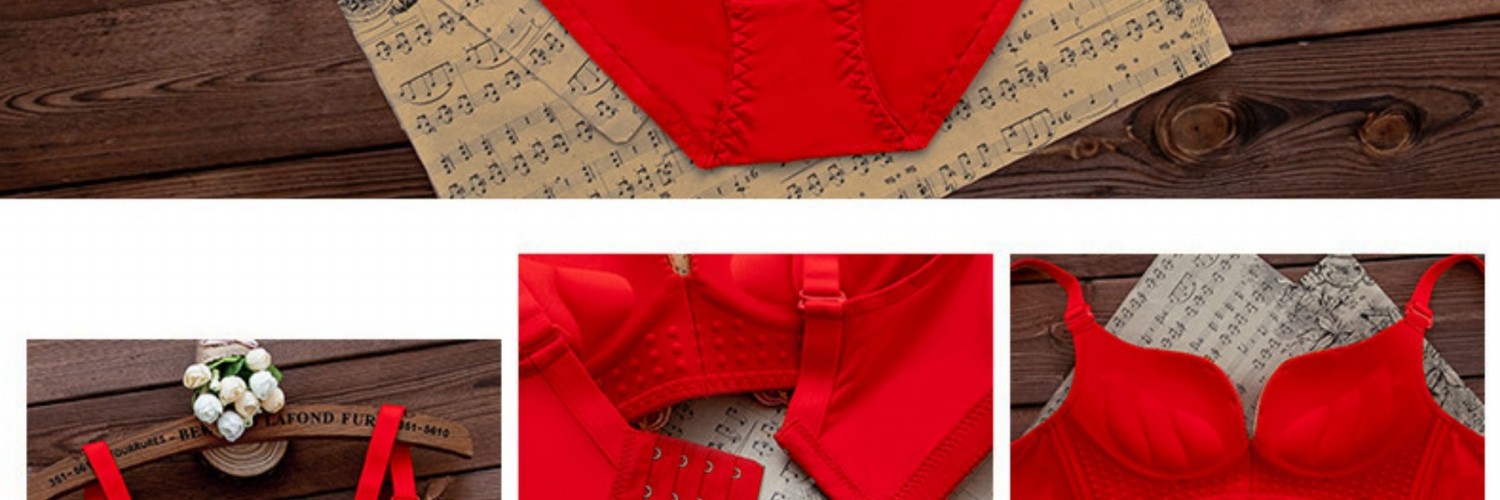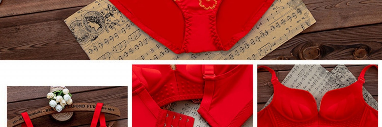 全棉純棉本命年紅色內衣內褲套裝女結婚新娘小胸罩聚攏無鋼圈文胸