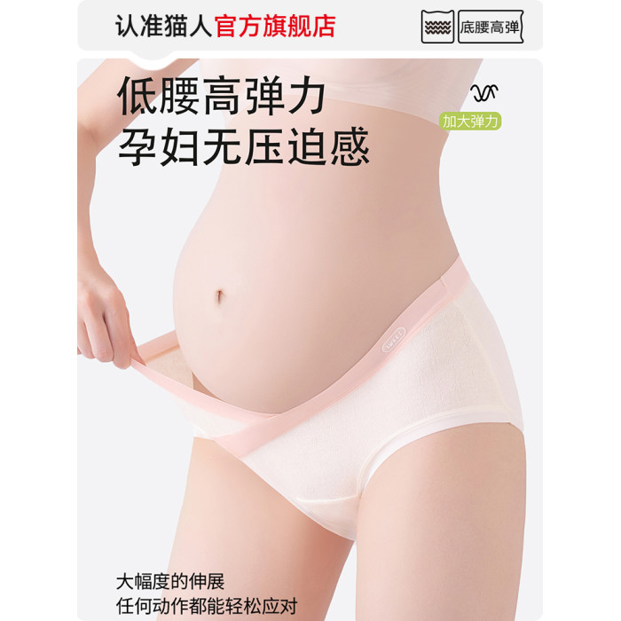 貓人孕婦內褲女純棉抗菌全棉襠懷孕早中晚期産後專用低腰托腹短褲
