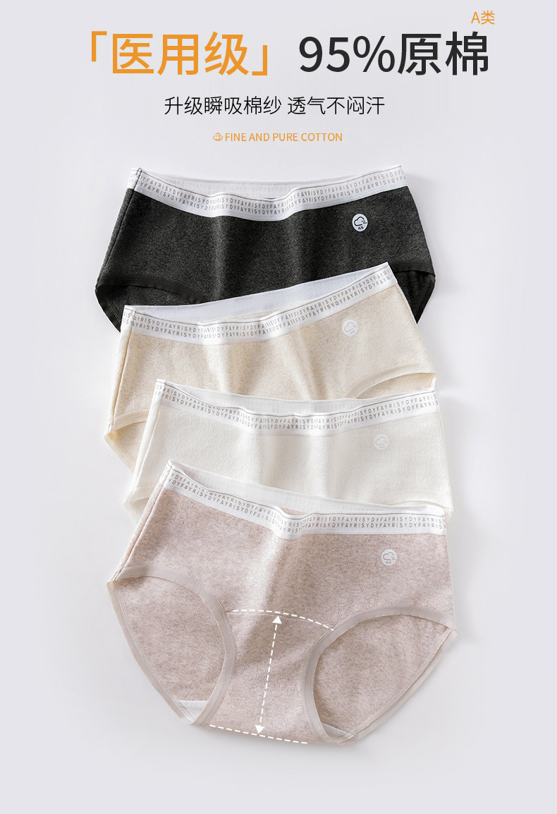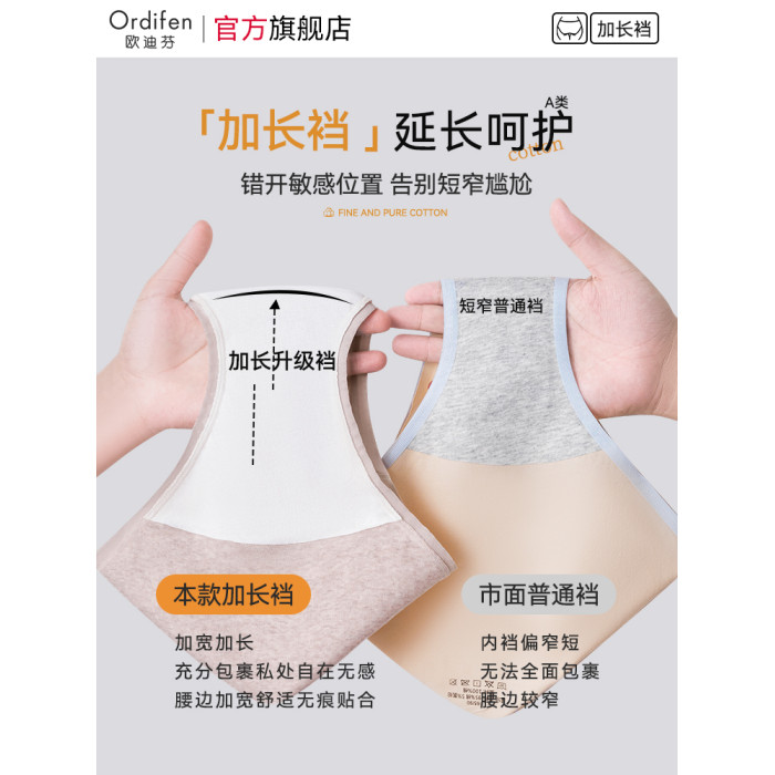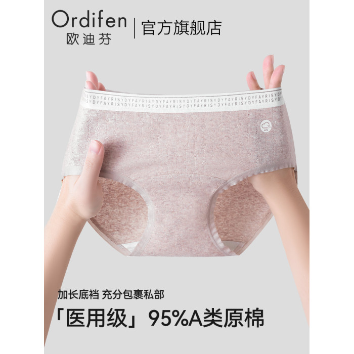 歐迪芬醫用級A類純棉內褲女中腰2026新款10A抑菌加長襠女士三角褲