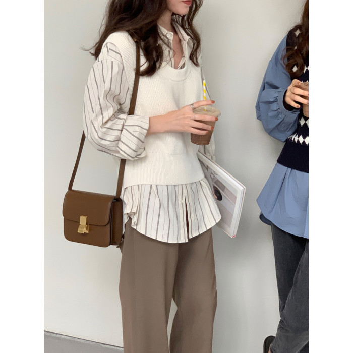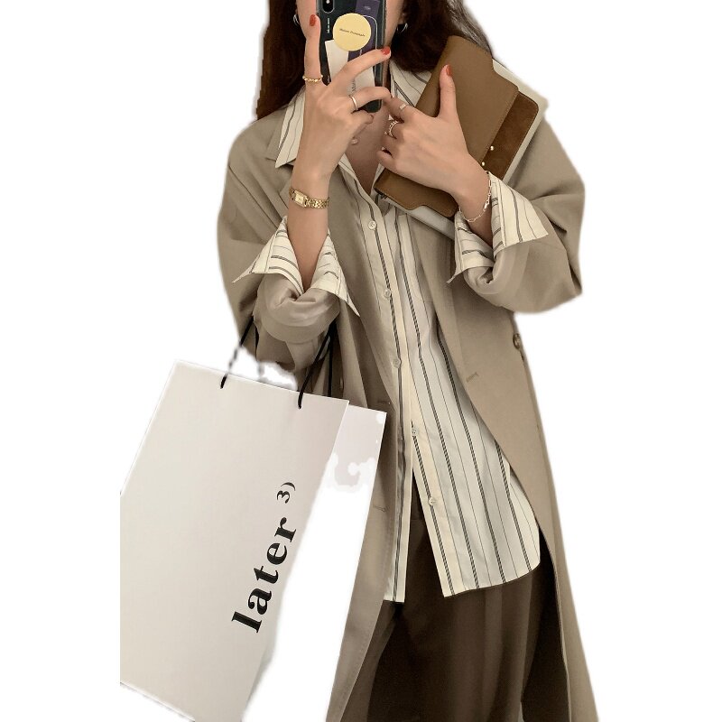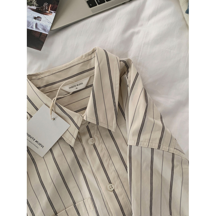 竪條紋長袖襯衣女秋冬2025新款大碼胖mm時尚寬鬆顯瘦港風襯衫上衣